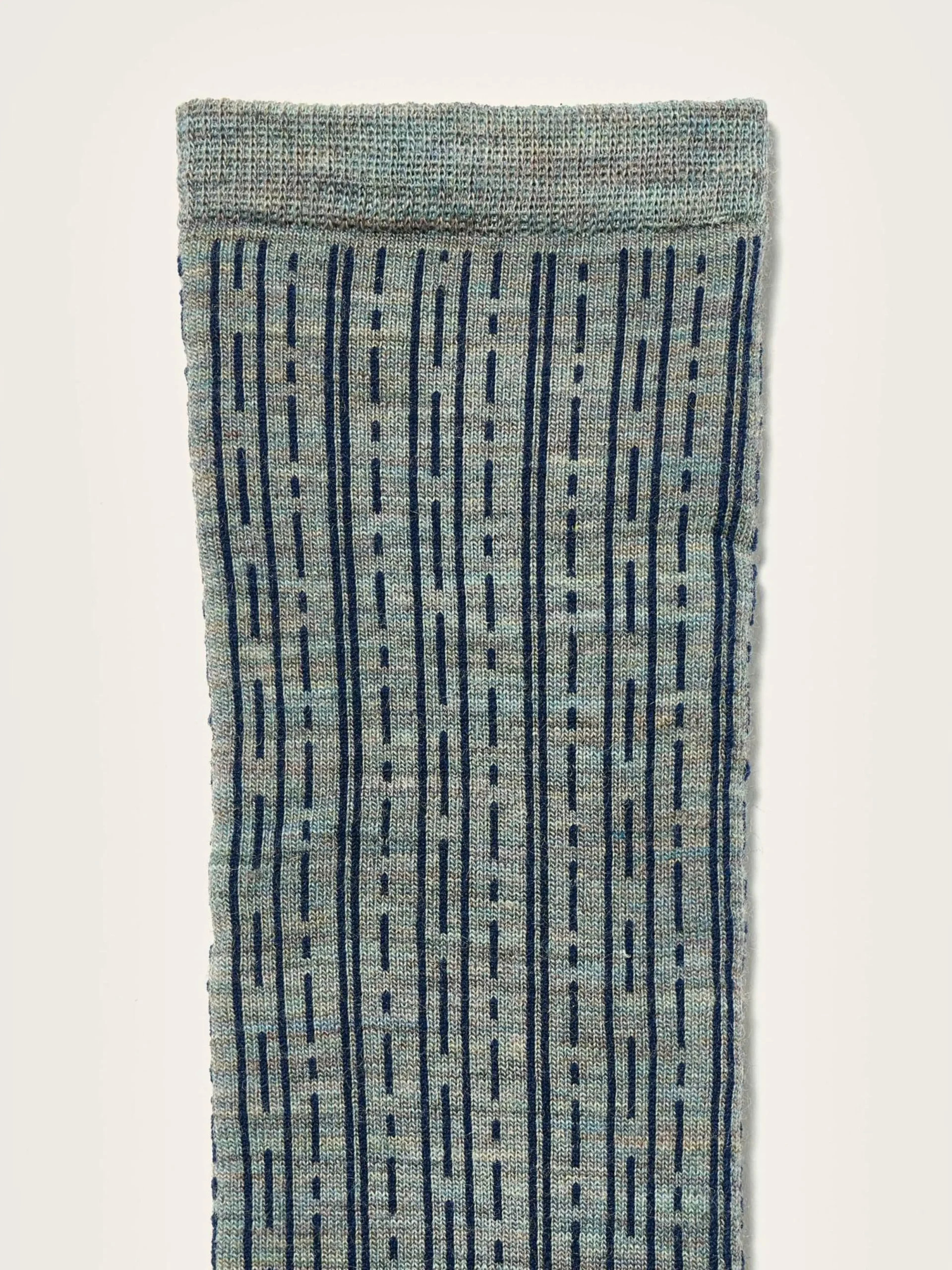Chaussettes classiques avec des côtes irrégulières en deux tons de bleu.