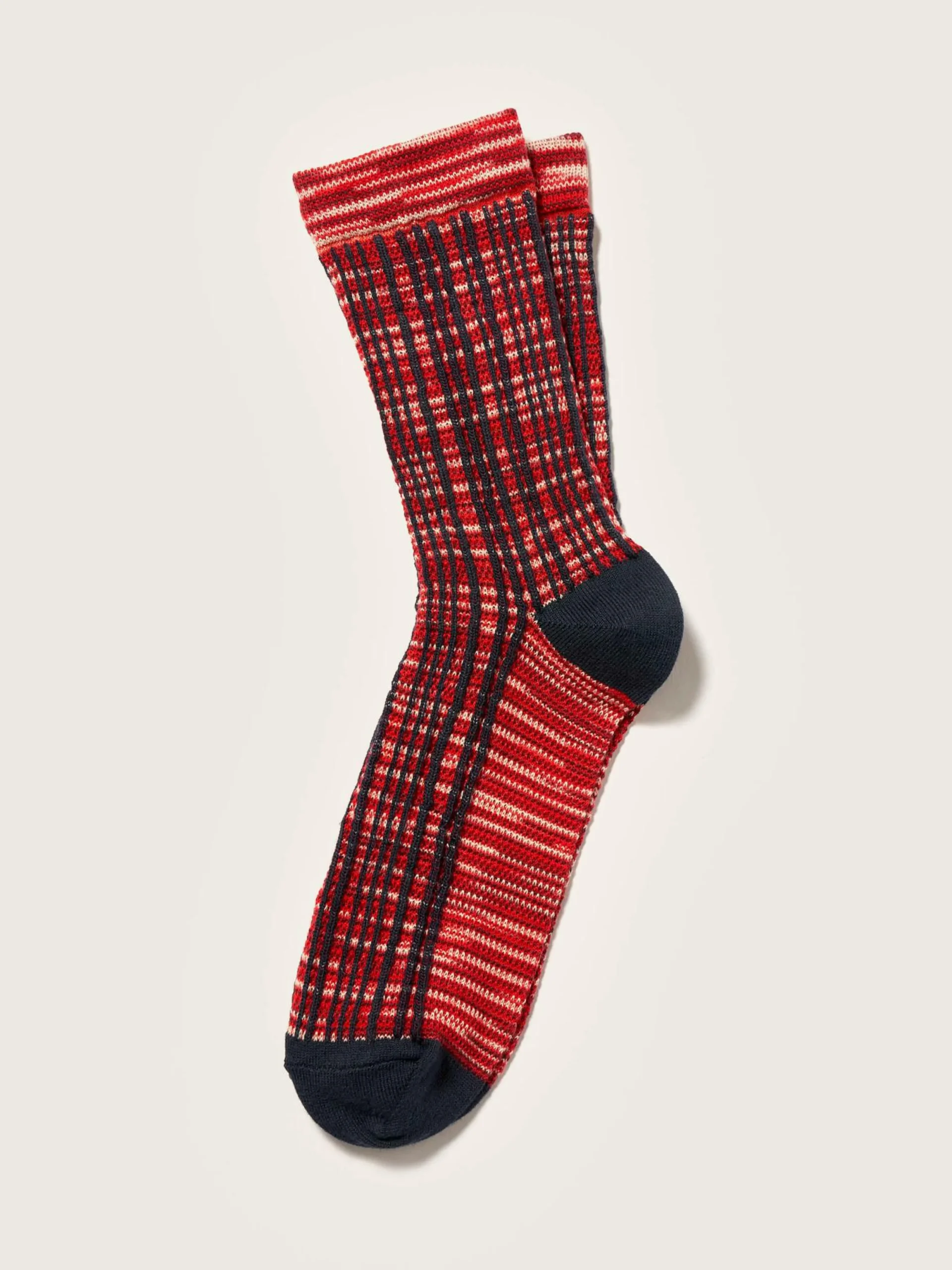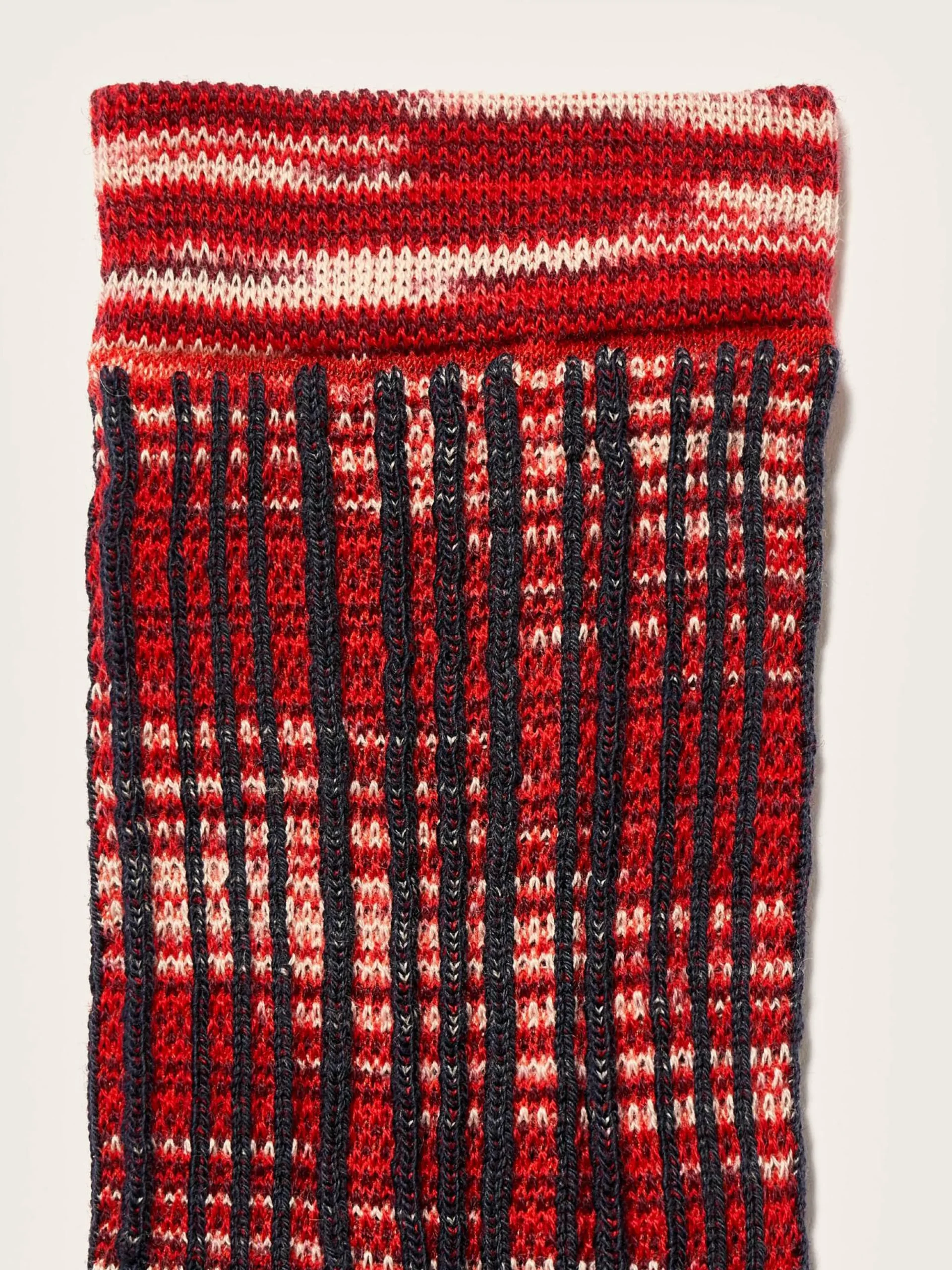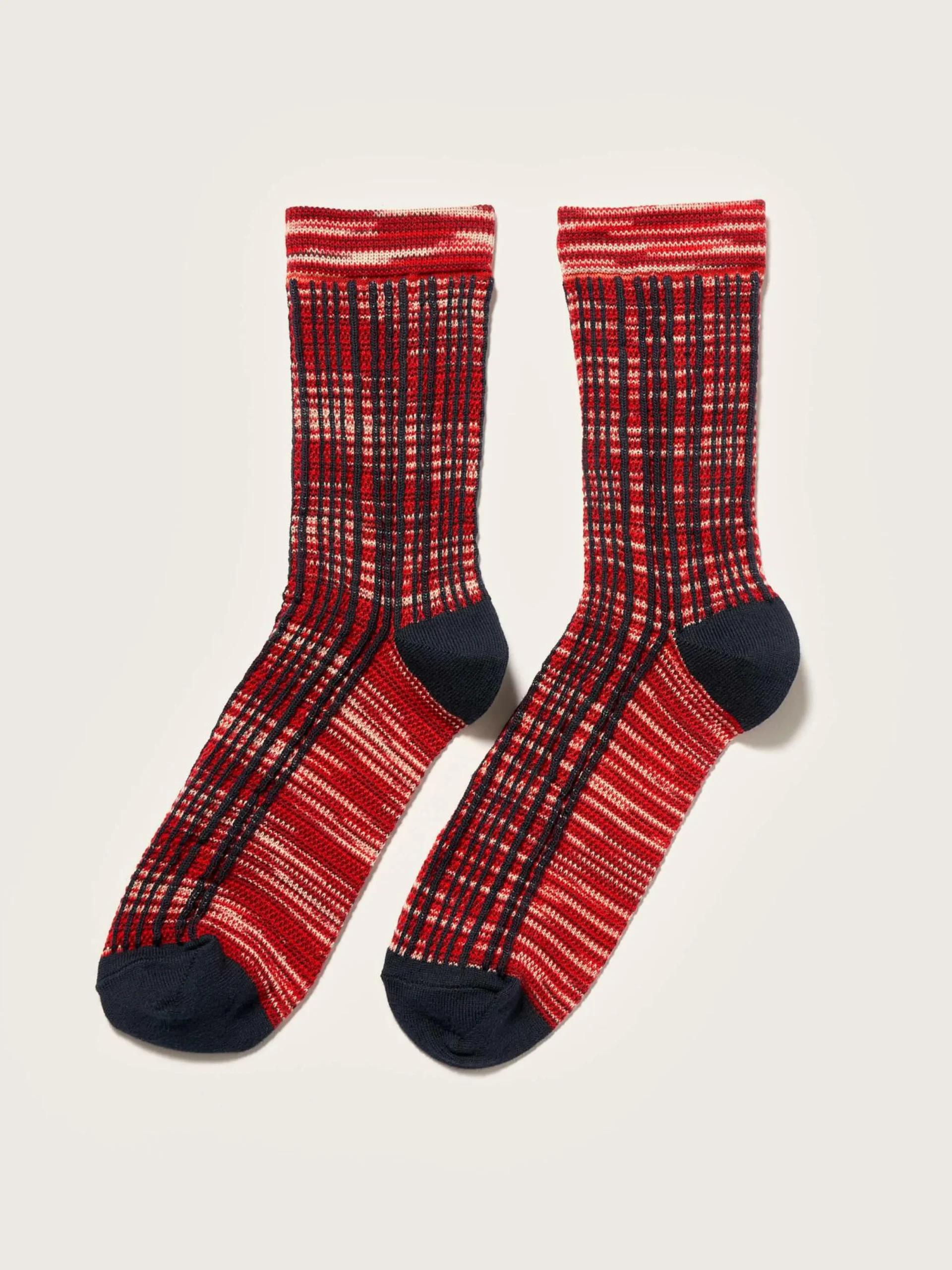 Chaussettes classiques avec des détails contrastés rouges et texturés bleu marine.