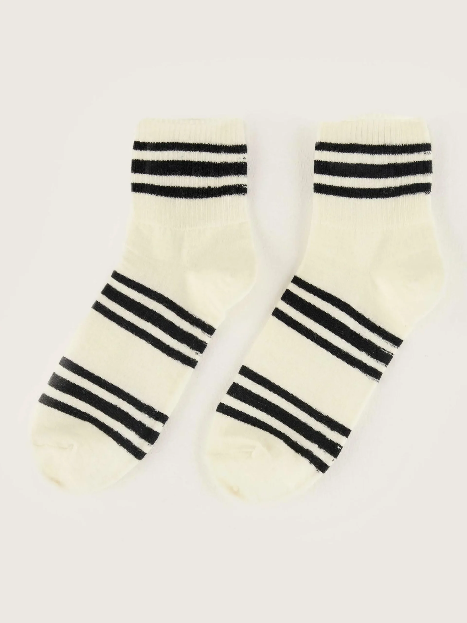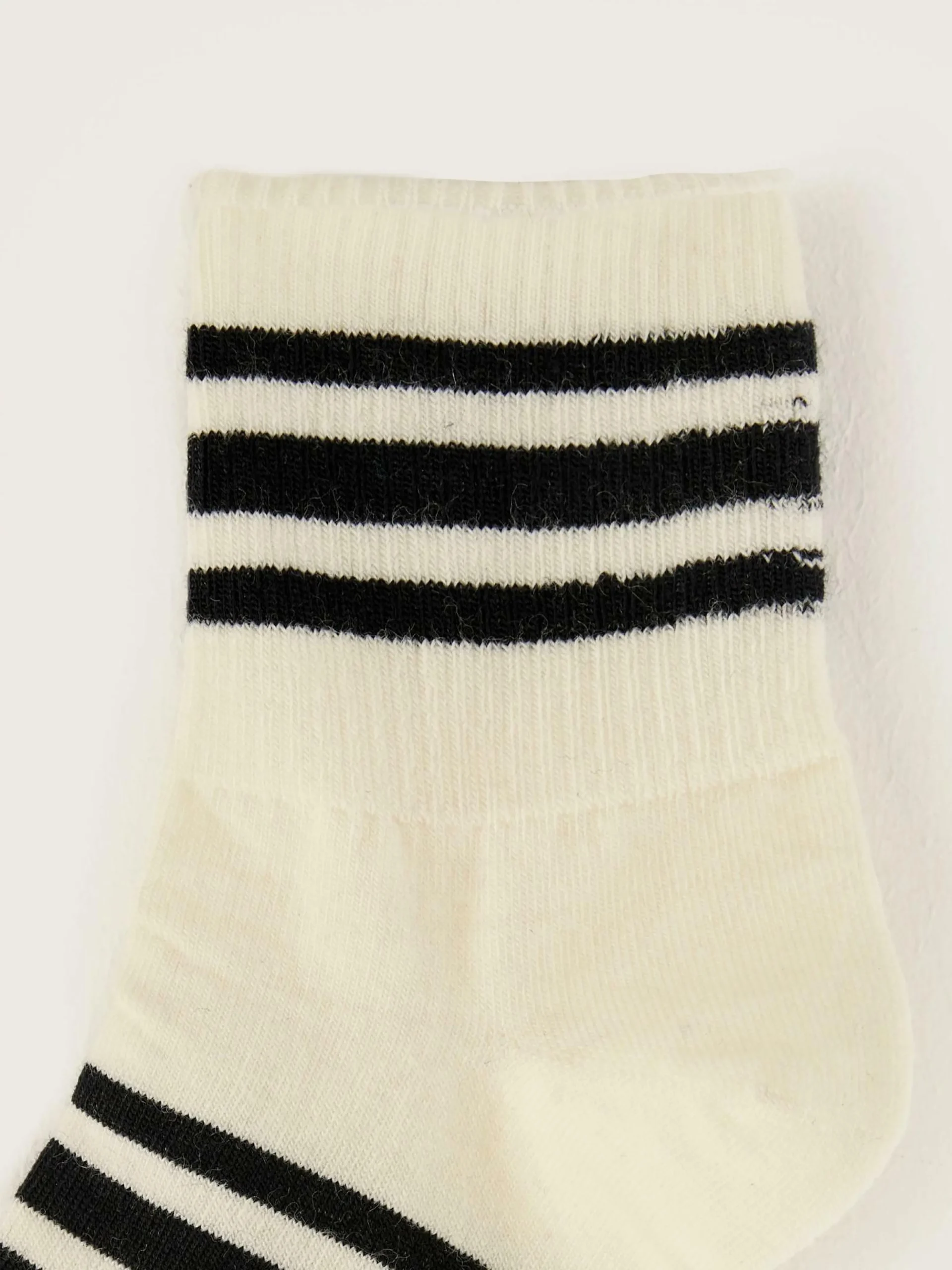 Chaussettes classiques blanches à rayures noires.