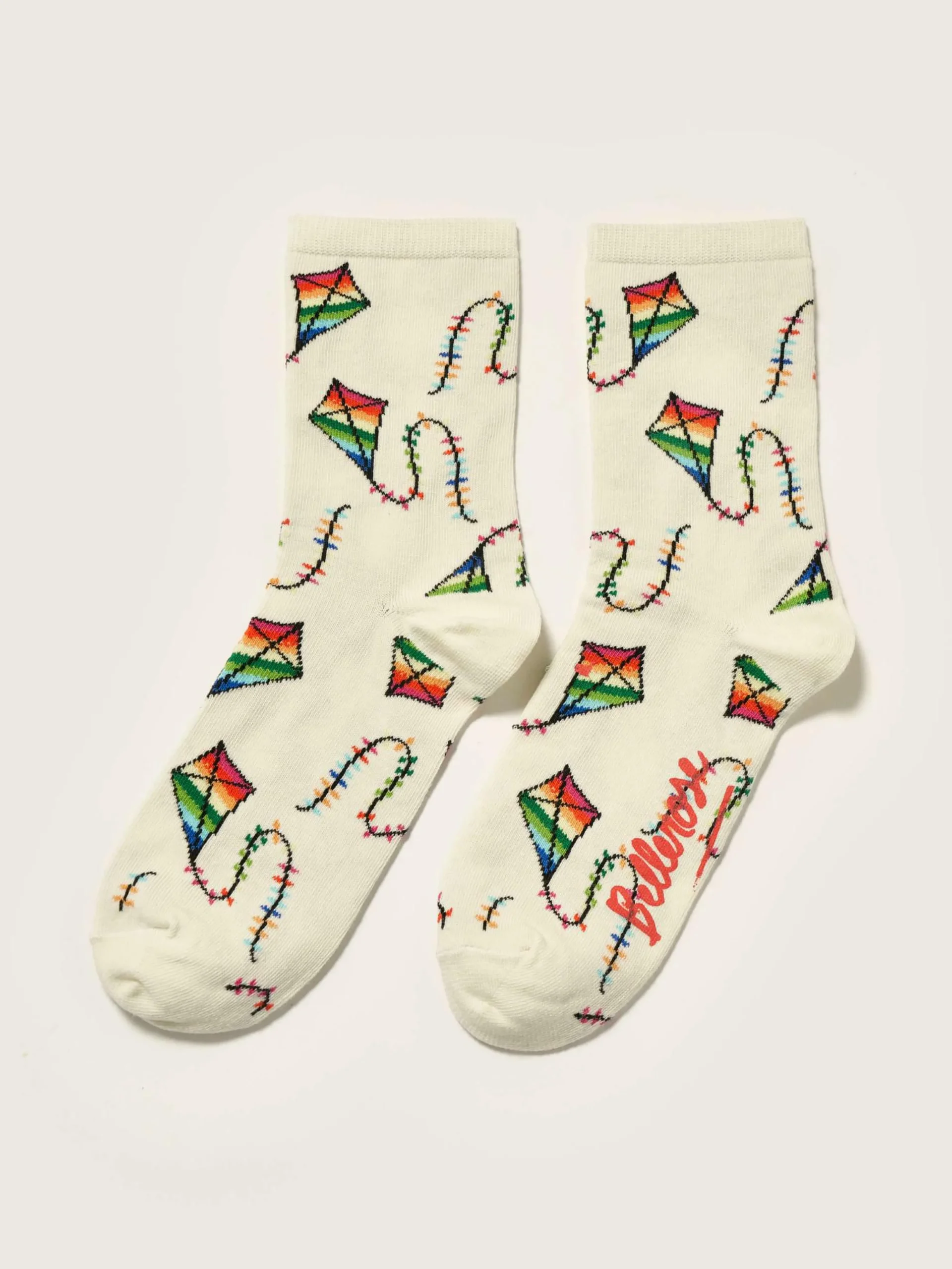Chaussettes classiques avec motif jacquard cerf-volant et impression Bellerose x The Animal Observatory sur la semelle.