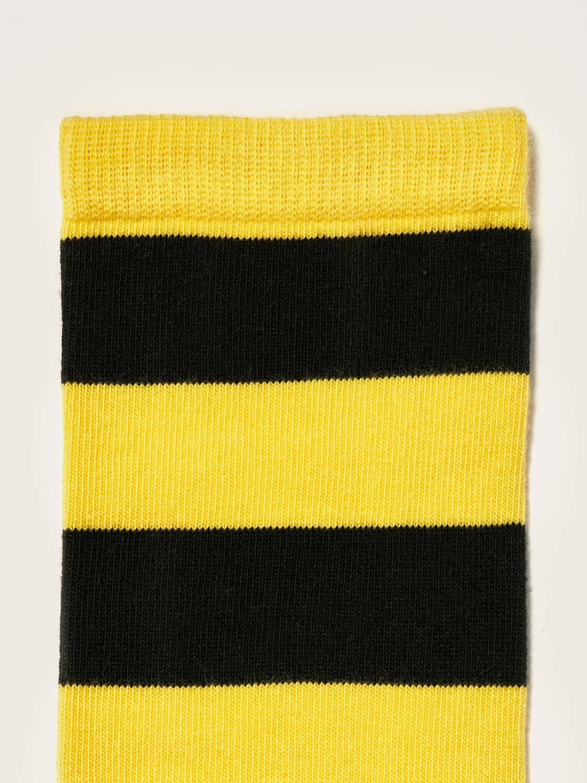 Chaussettes montantes à rayures avec impression Bellerose x The Animal Observatory sur la semelle.