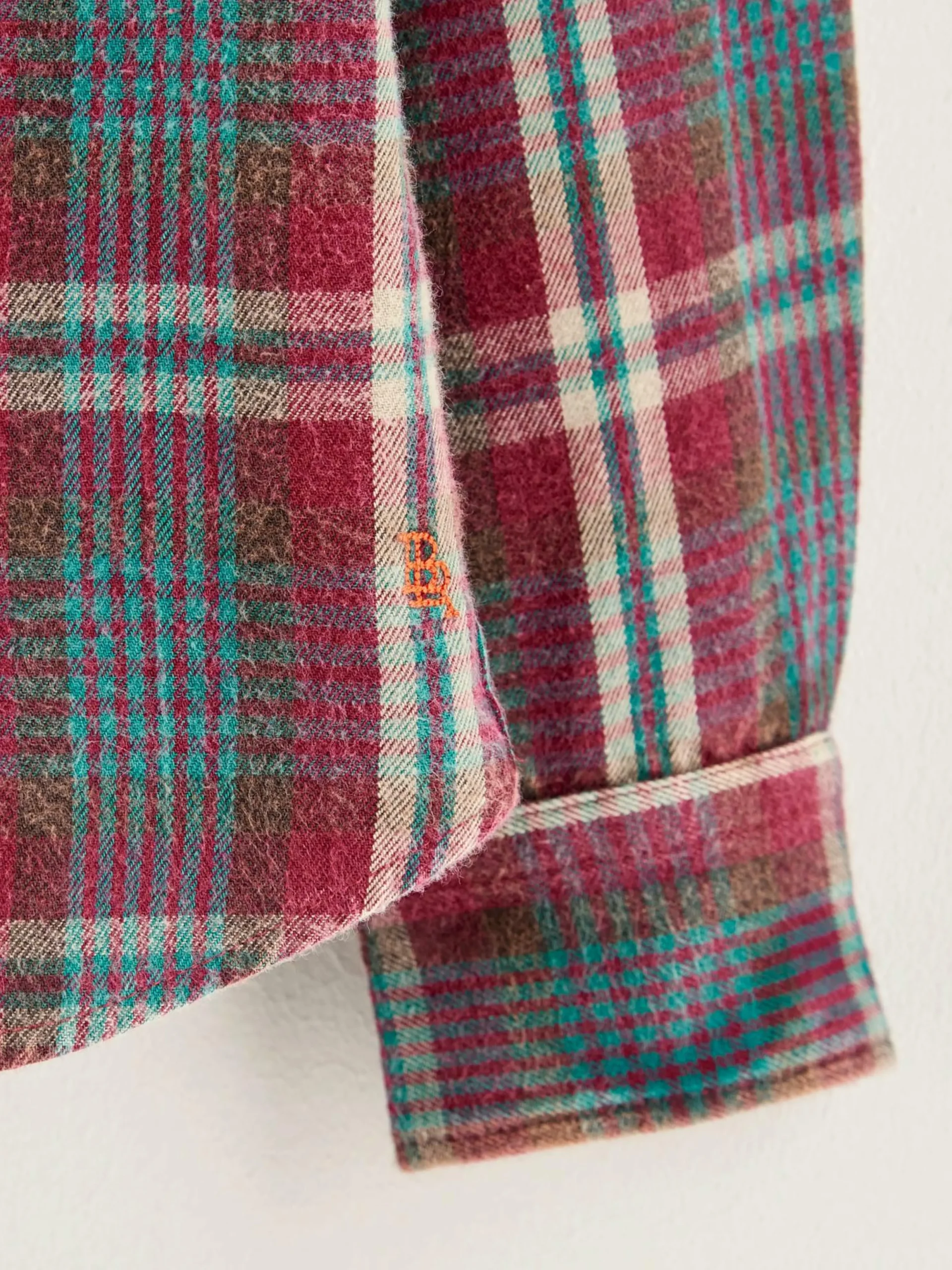 Chemise en coton à carreaux, coupe classique avec fermeture par boutons et coudières de renfort sur les manches.