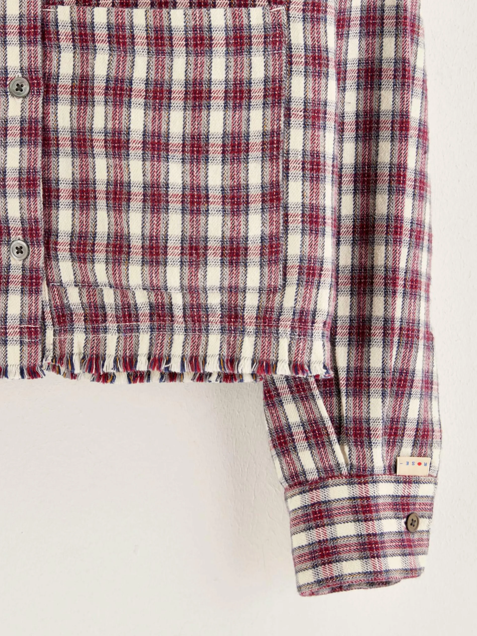 Chemise droite en coton à carreaux avec manches longues et poignets boutonnés.