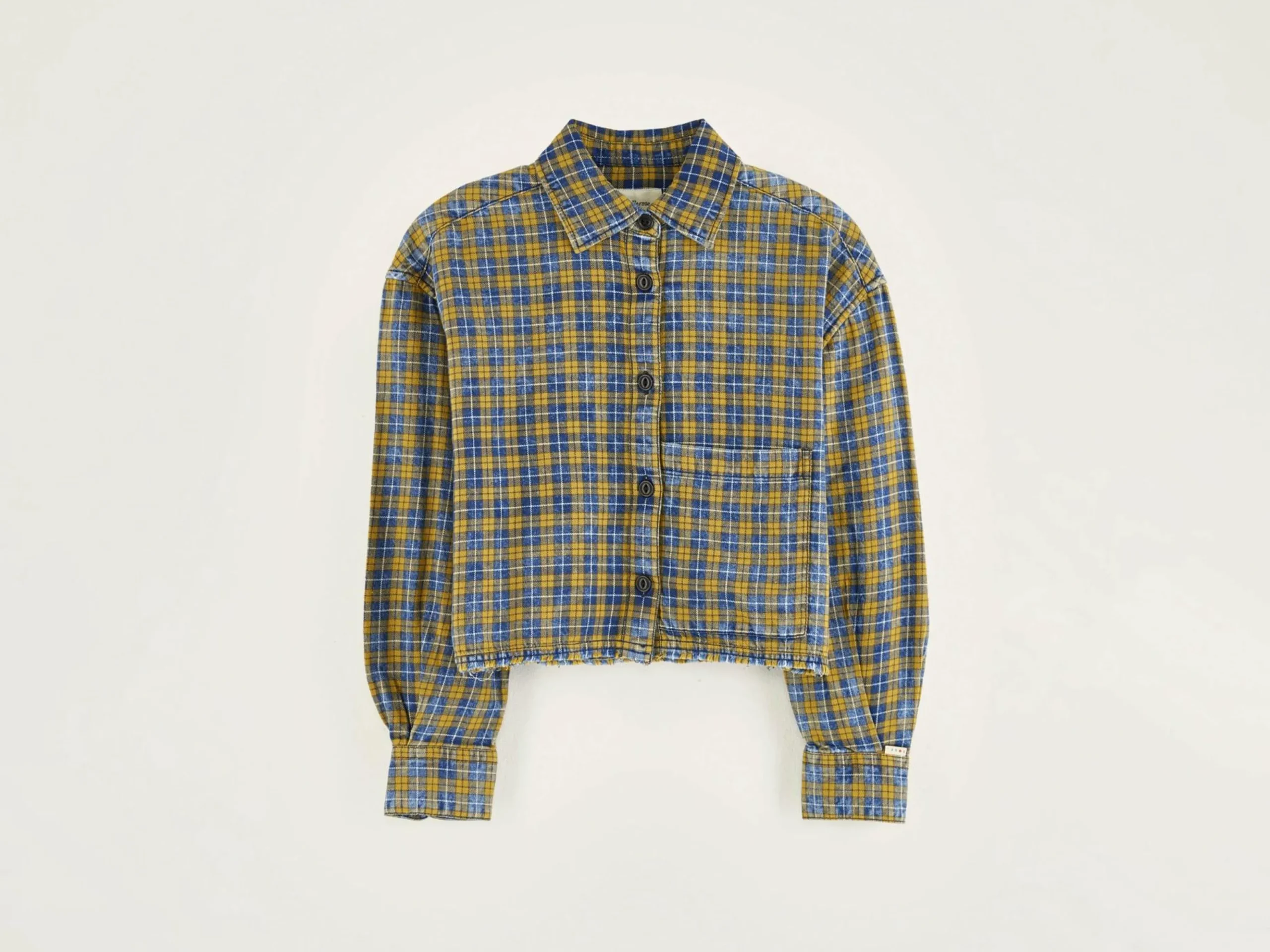 Chemise droite en coton à carreaux avec manches longues et poignets boutonnés.