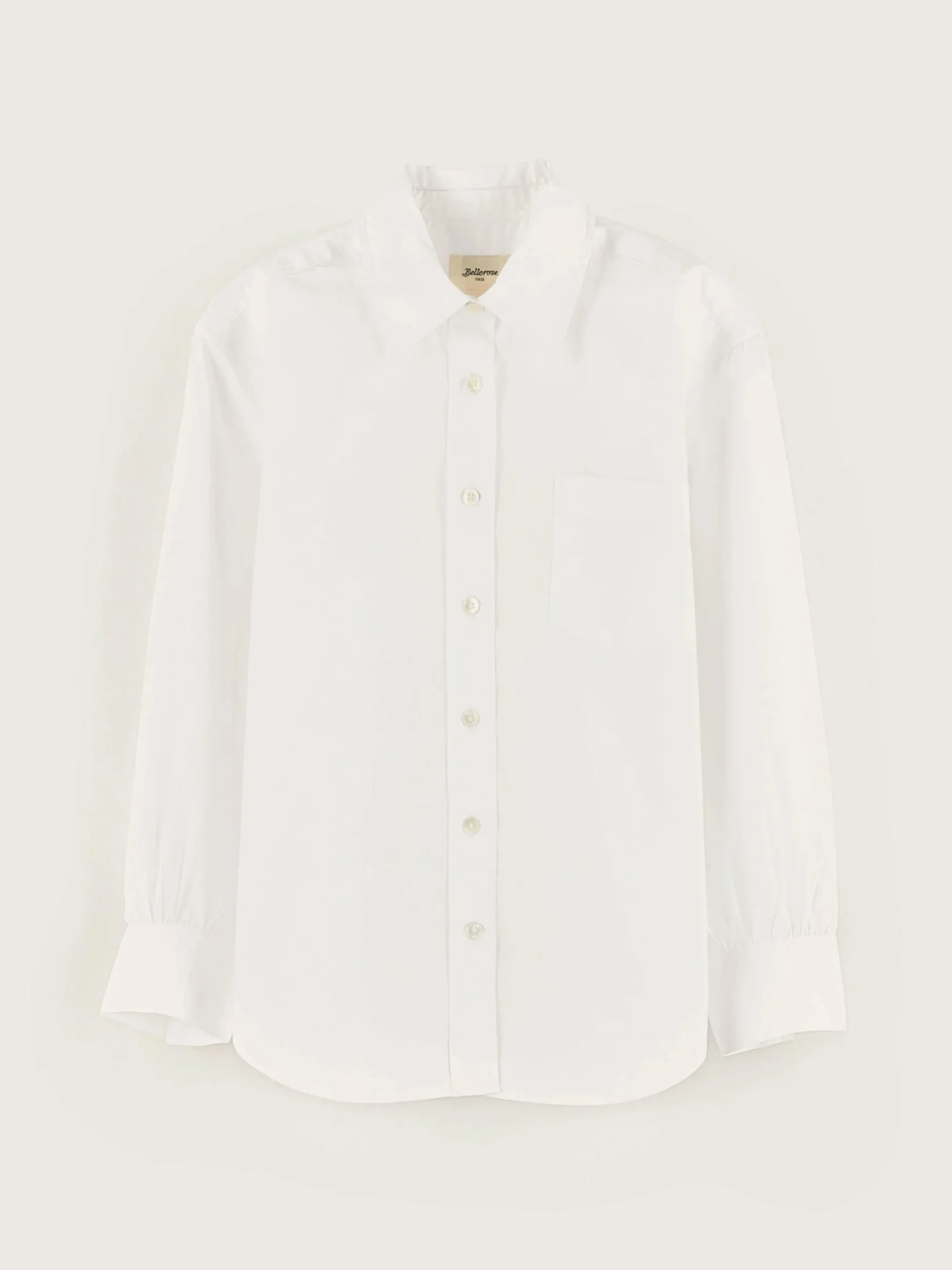 Chemise droite classique en popeline de coton blanc éclatant.