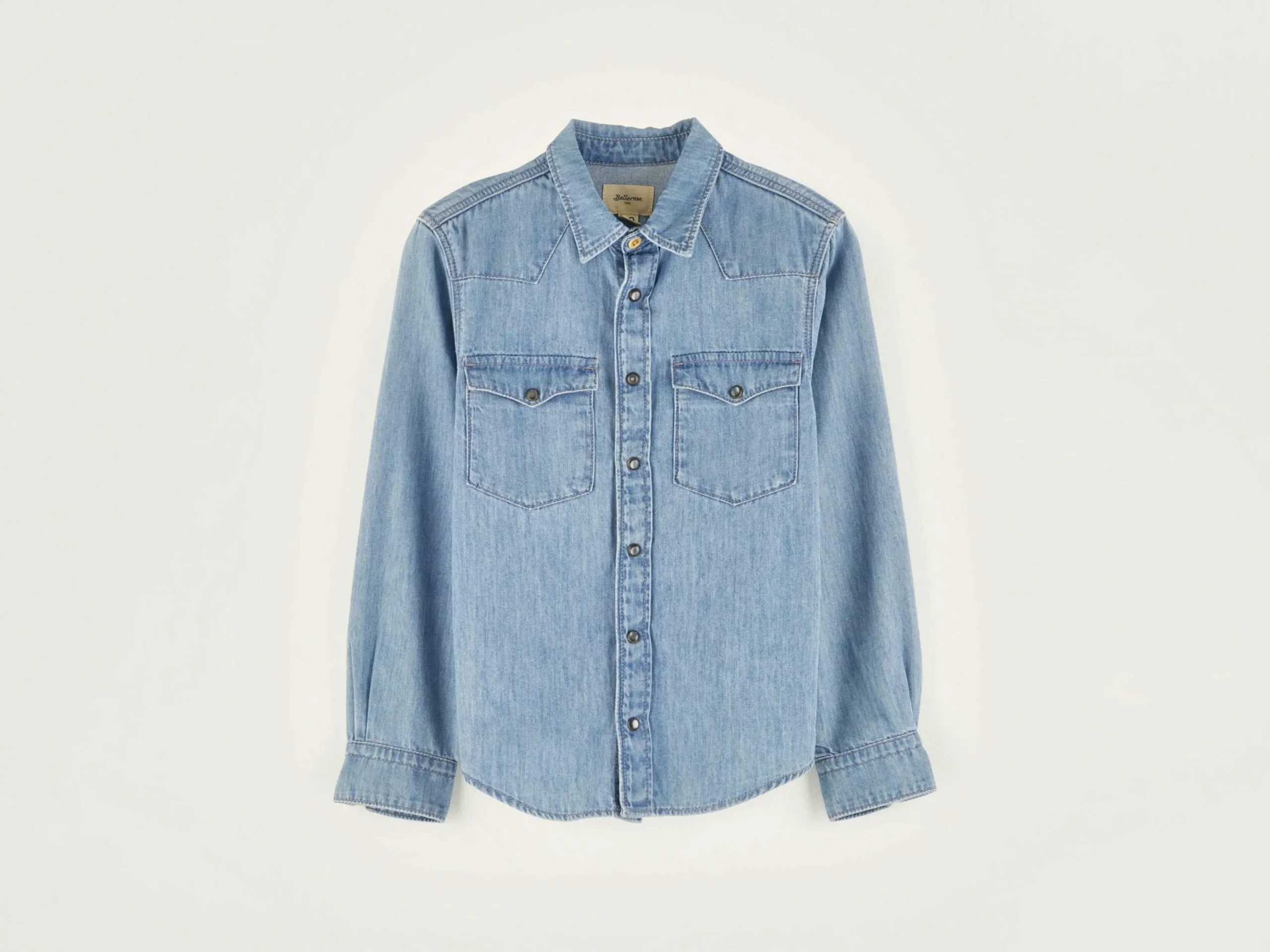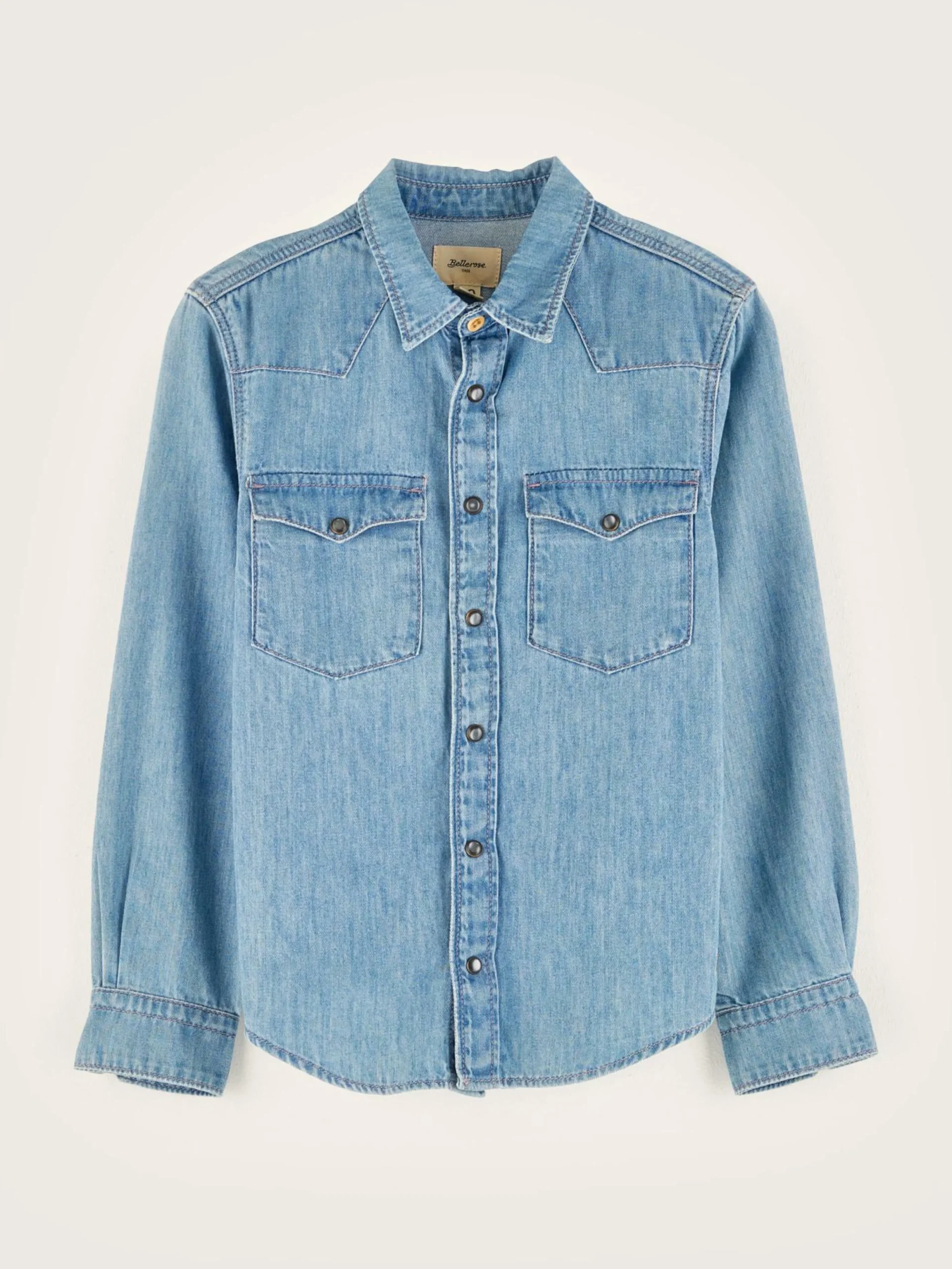 Chemise en denim de style western avec boutons-pression et poches à l’avant.