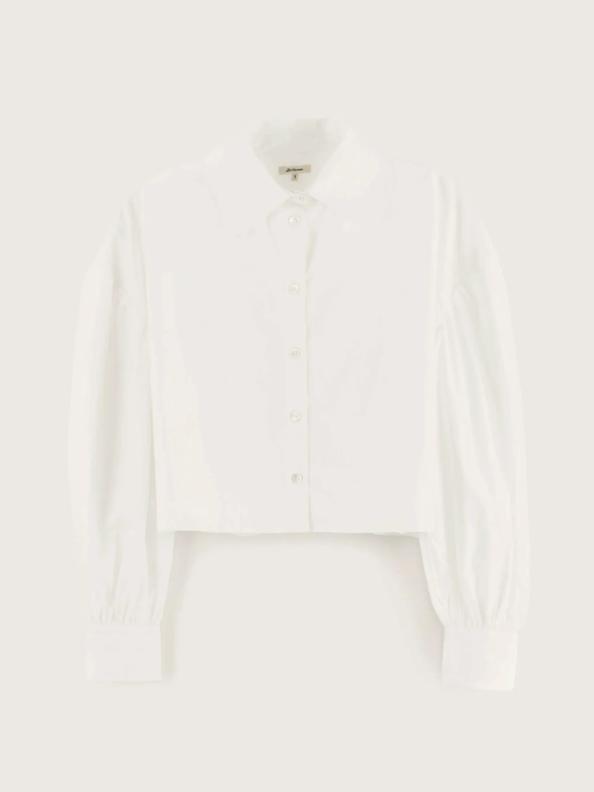 Chemise courte en popeline de coton blanc avec manches bouffantes.