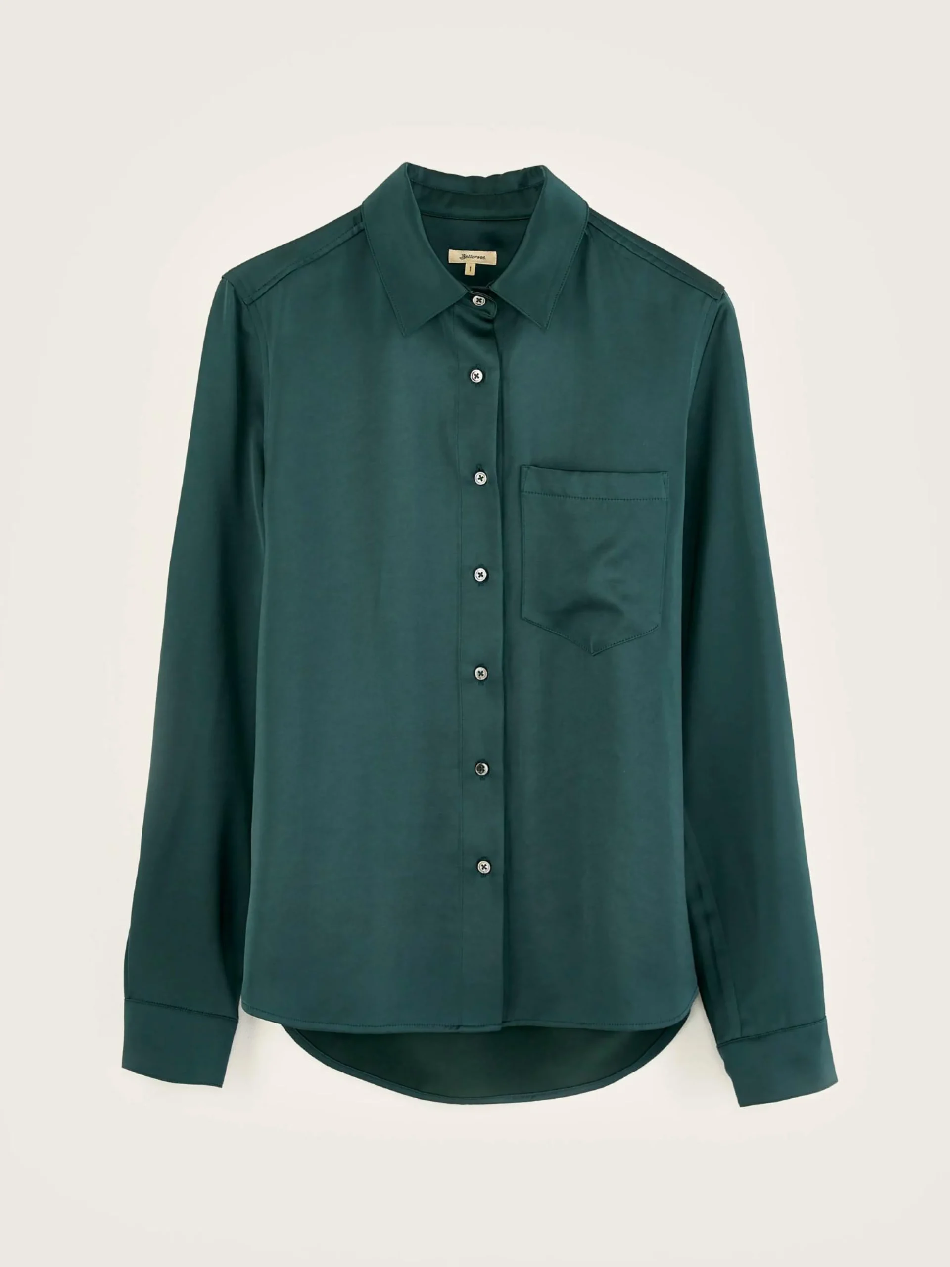 Chemise à coupe longue et droite en viscose couleur vert foncé.