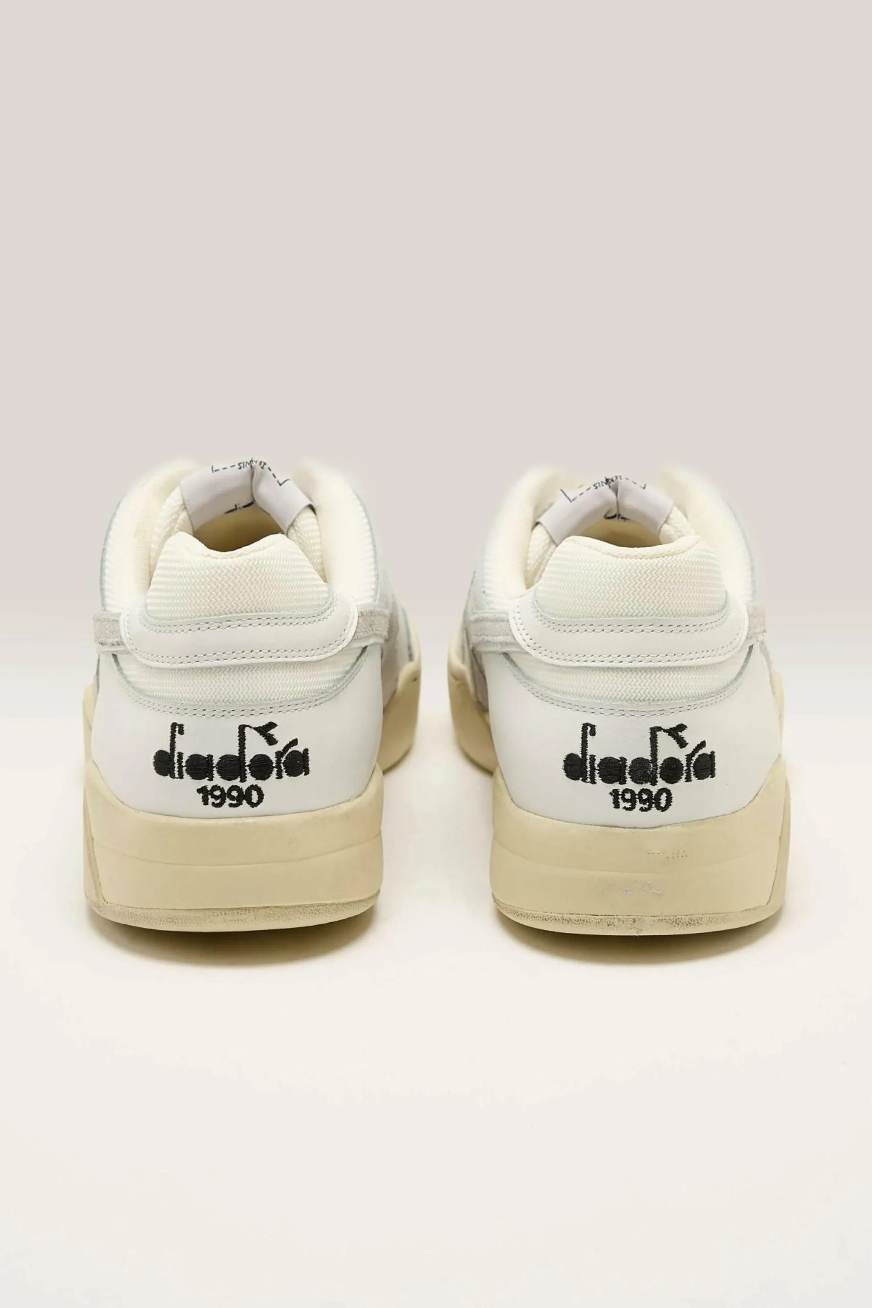 Les sneakers basses Diadora B. 560 Used dotées d’un design retro inspiré par le tennis possèdent une tige en cuir pleine fleur traité à la cire et stone wash.