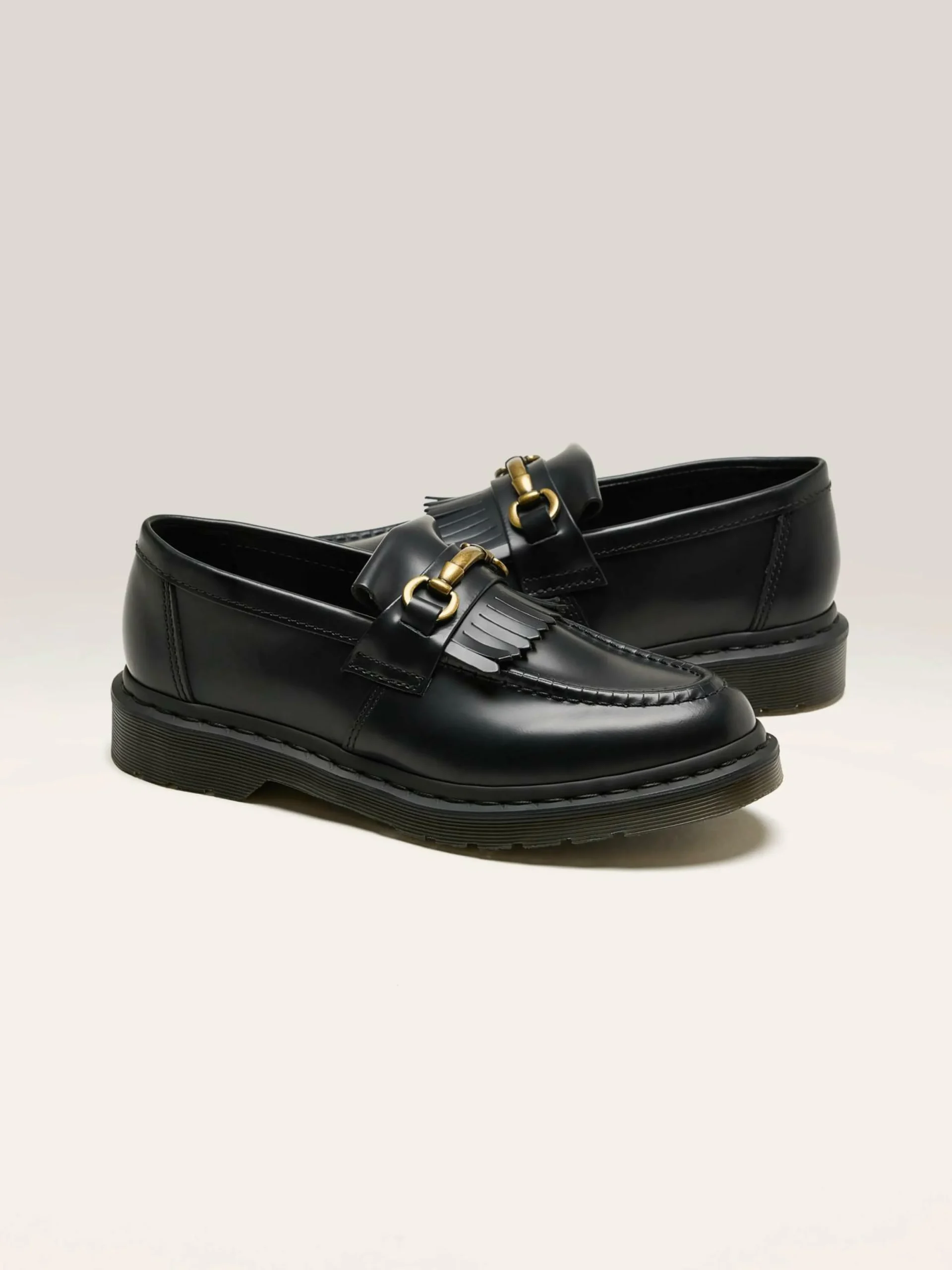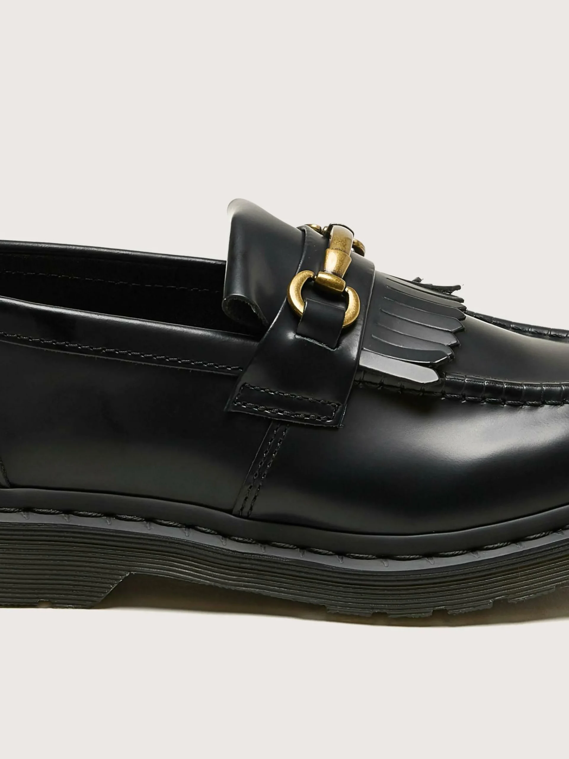 Un classique de Dr. Martens, le mocassin Adrian Snaffle Tassel à enfiler, en cuir noir lisse et poli, est doté d’une couture trépointe et d’une semelle coussinée AirWair.