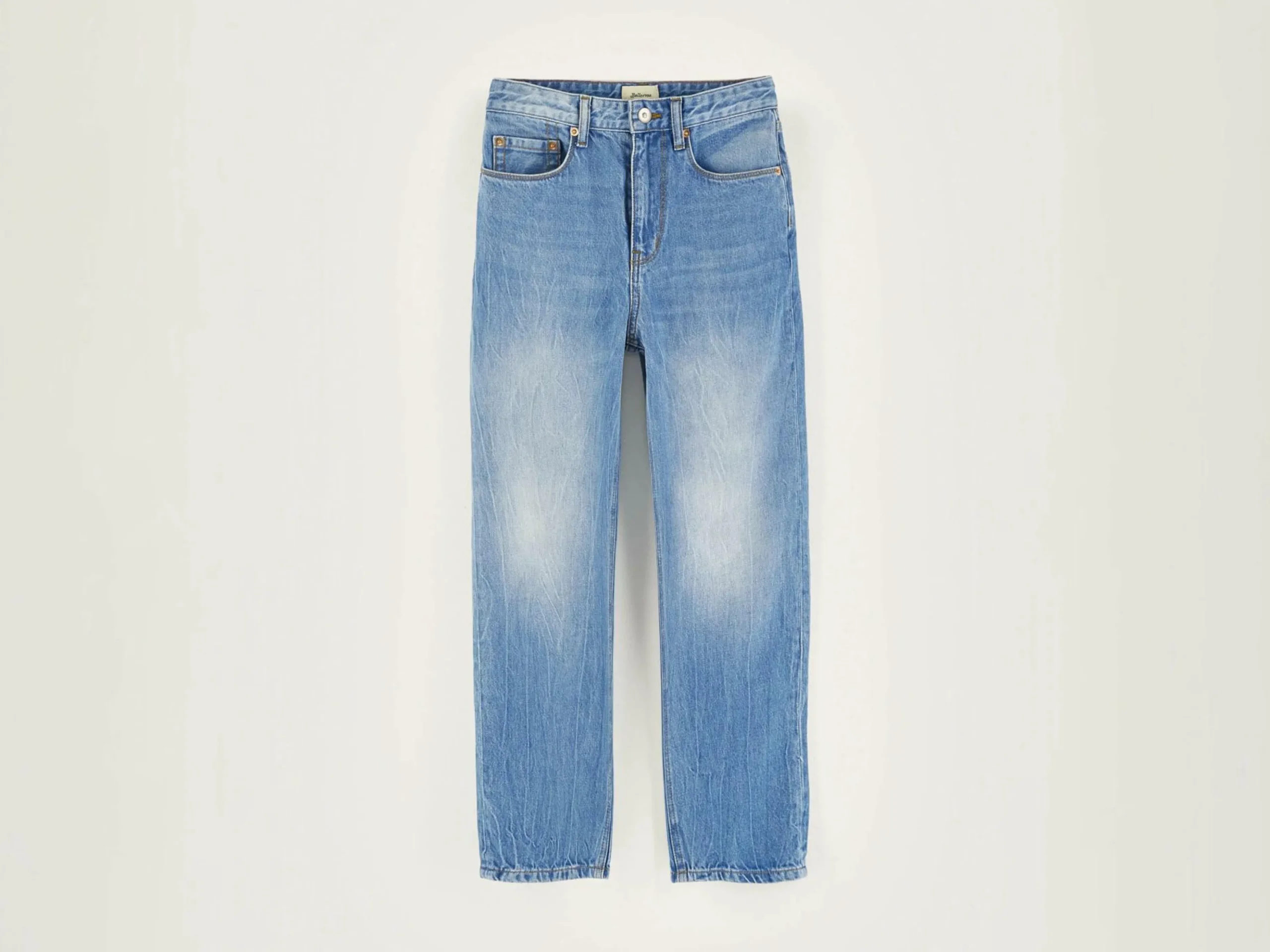 Jean décontracté à jambes larges en denim de coton vintage light blue.