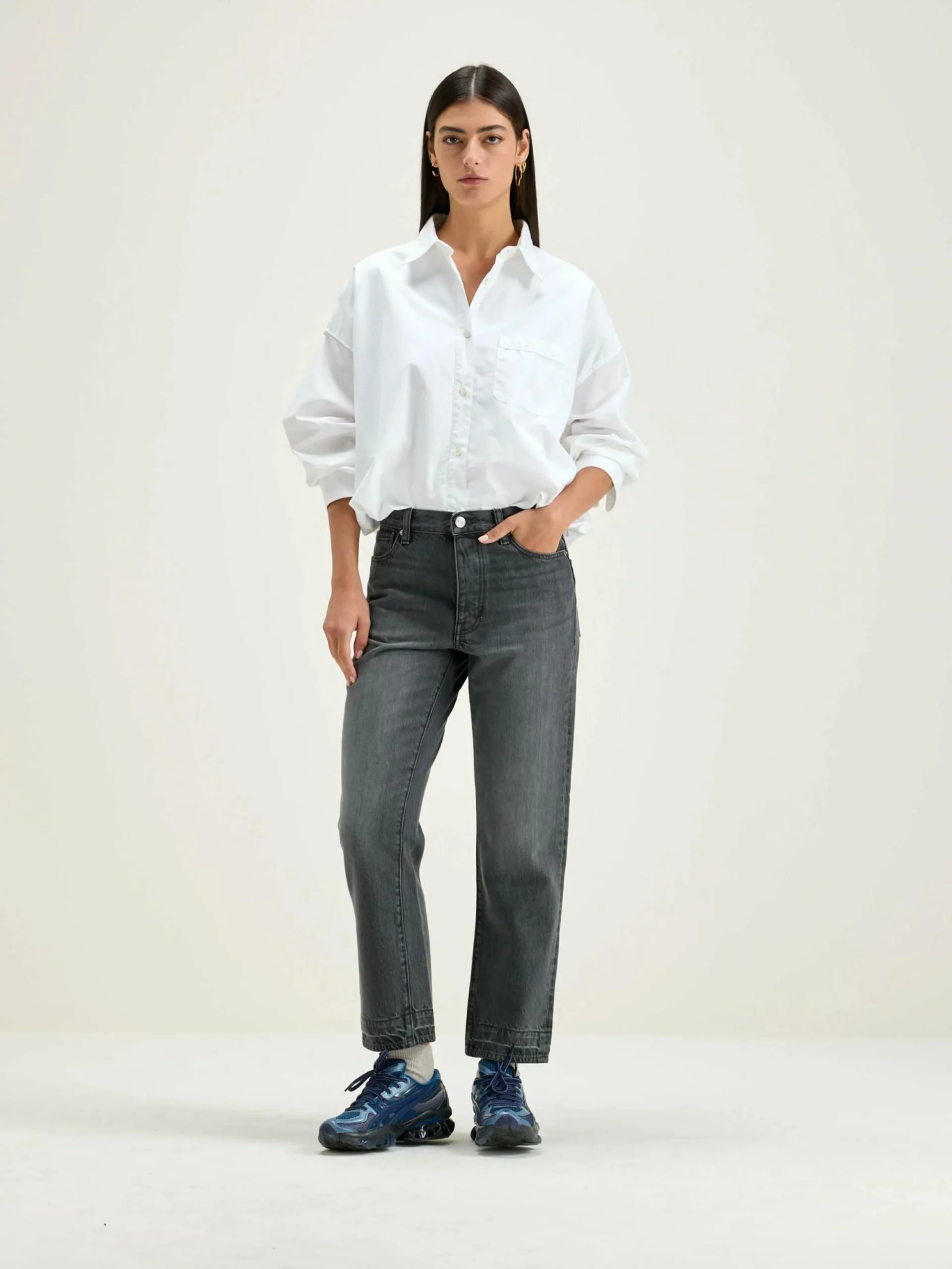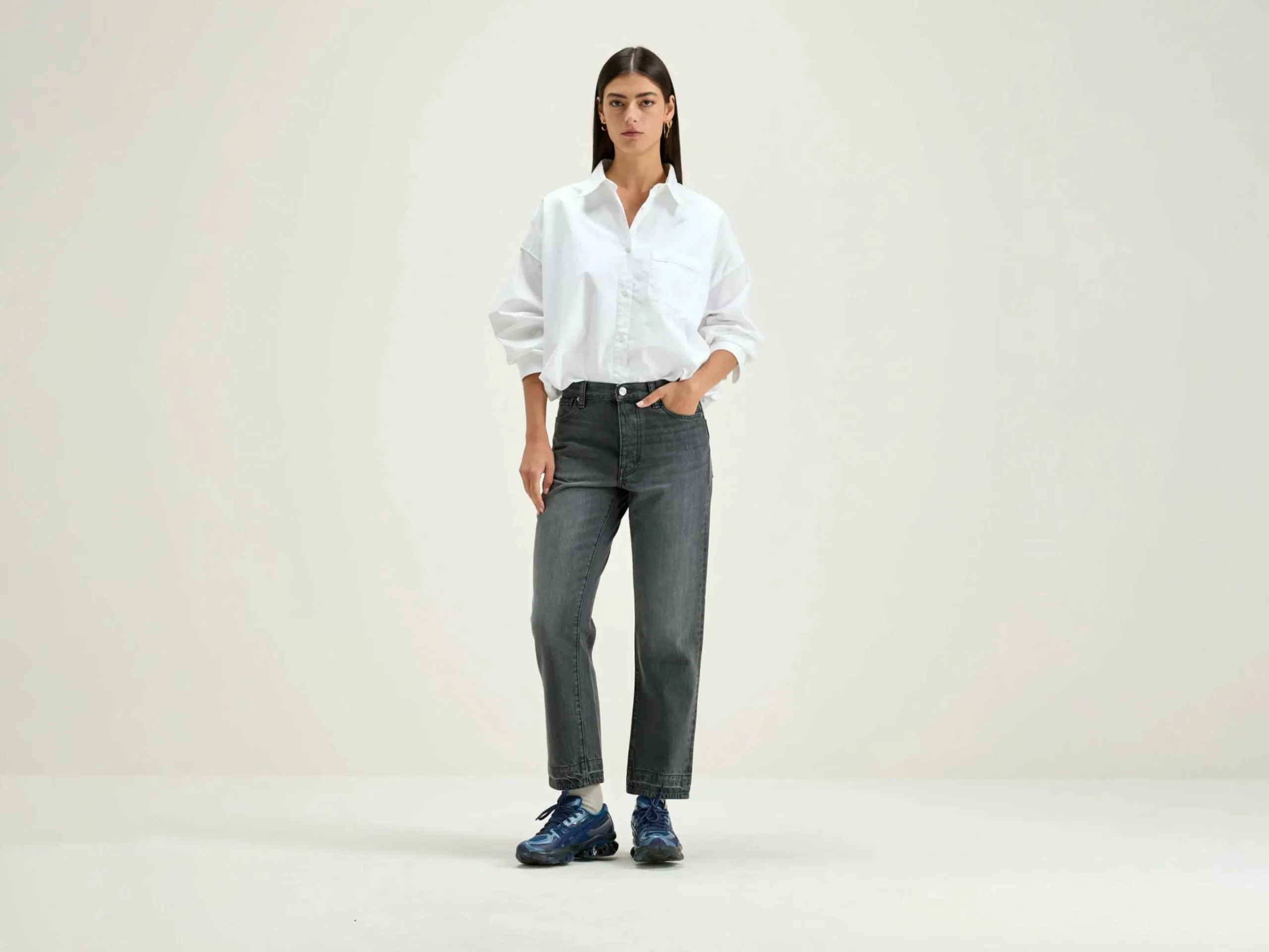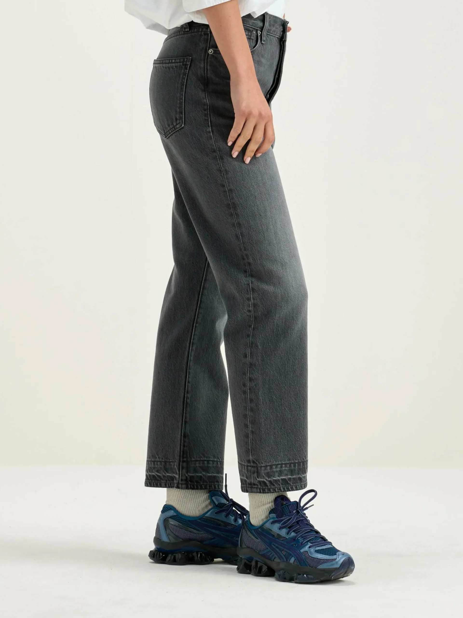 - Denim de poids moyen, sans élasticité