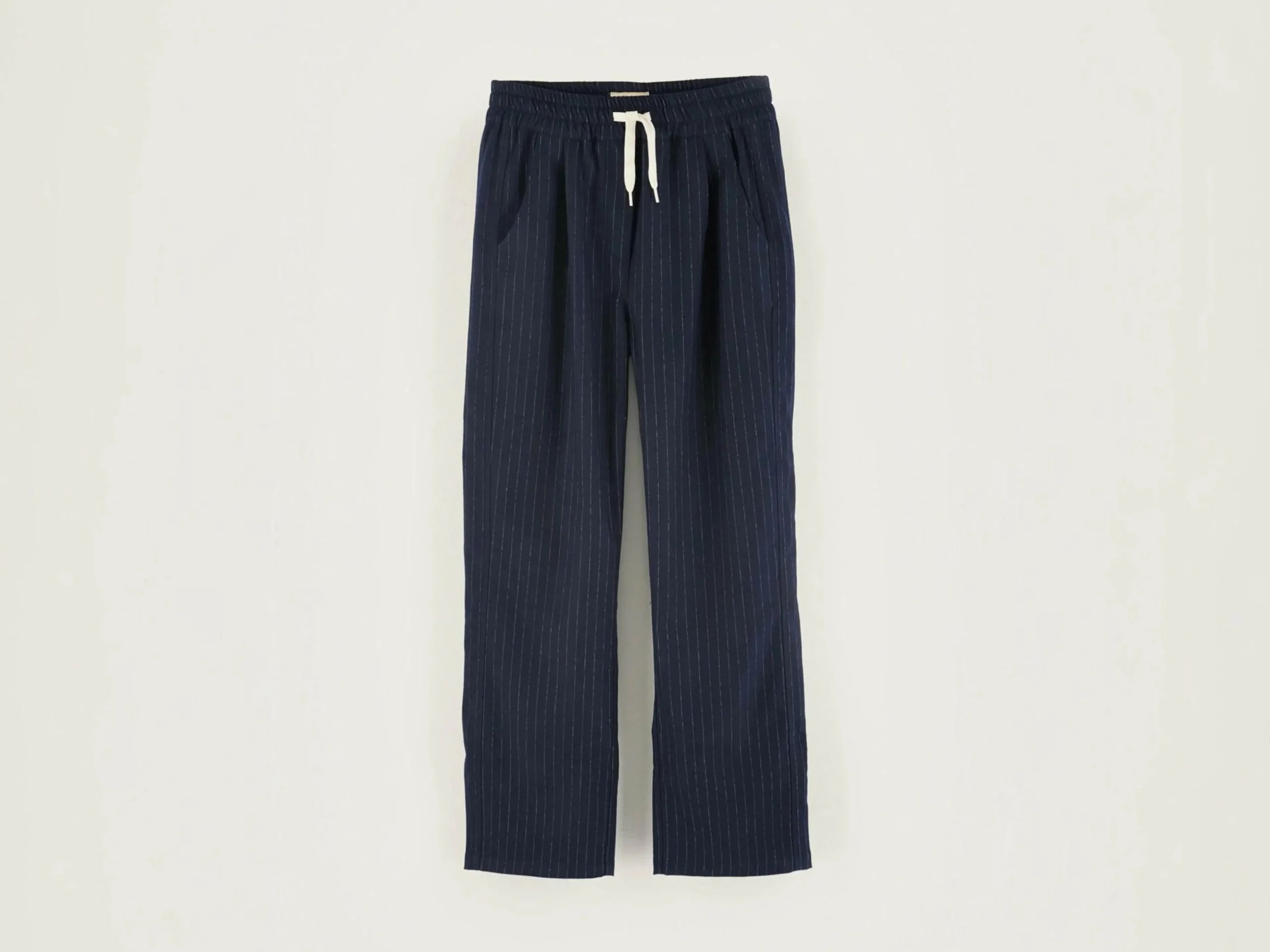 Pantalon de jogging taille haute et jambes larges en flanelle rayée.