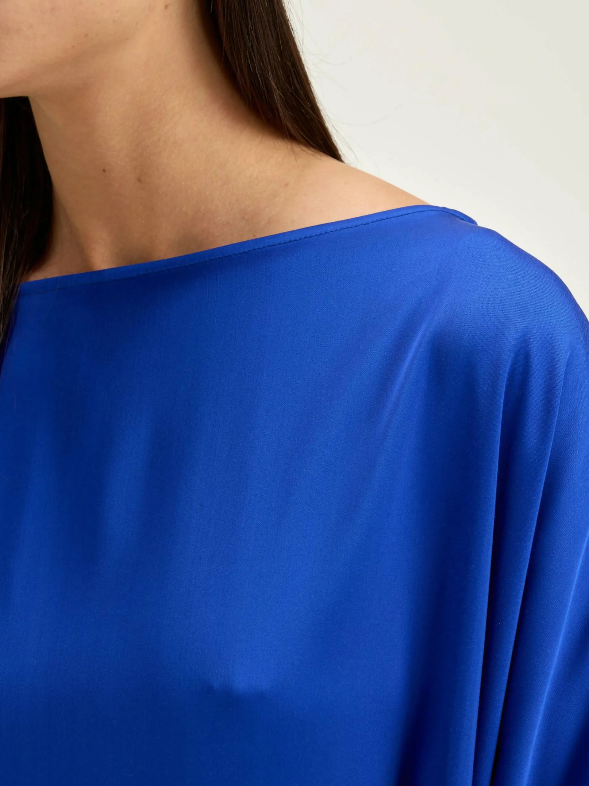 Robe oversize en viscose légêre couleur bleu klein, coupe droite minimaliste et manches larges.