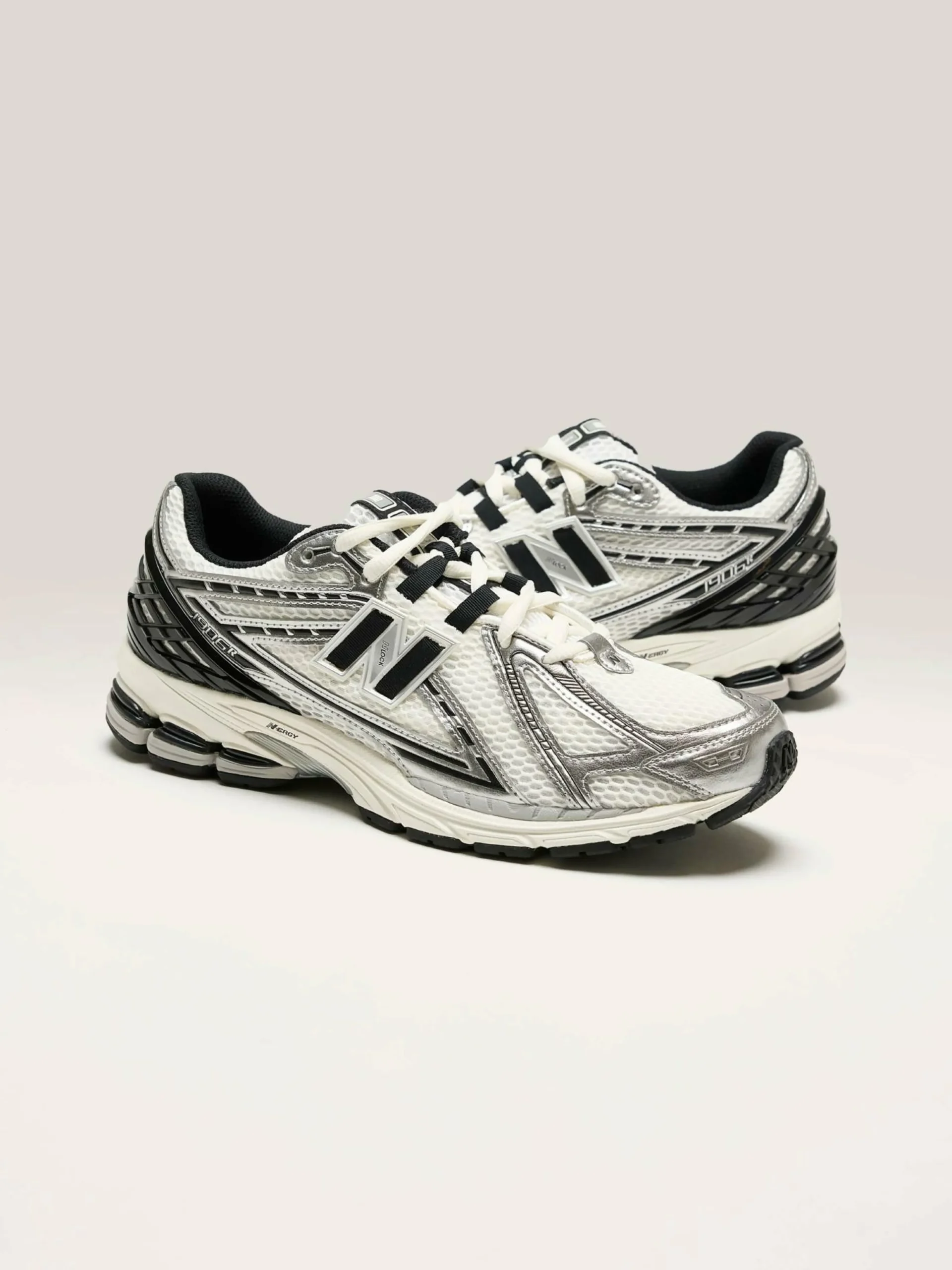 Les sneakers New Balance 1906R possèdent une tige en maille avec des finitions synthétiques et une semelle intermédiaire et un talon spécialisés et amortis.