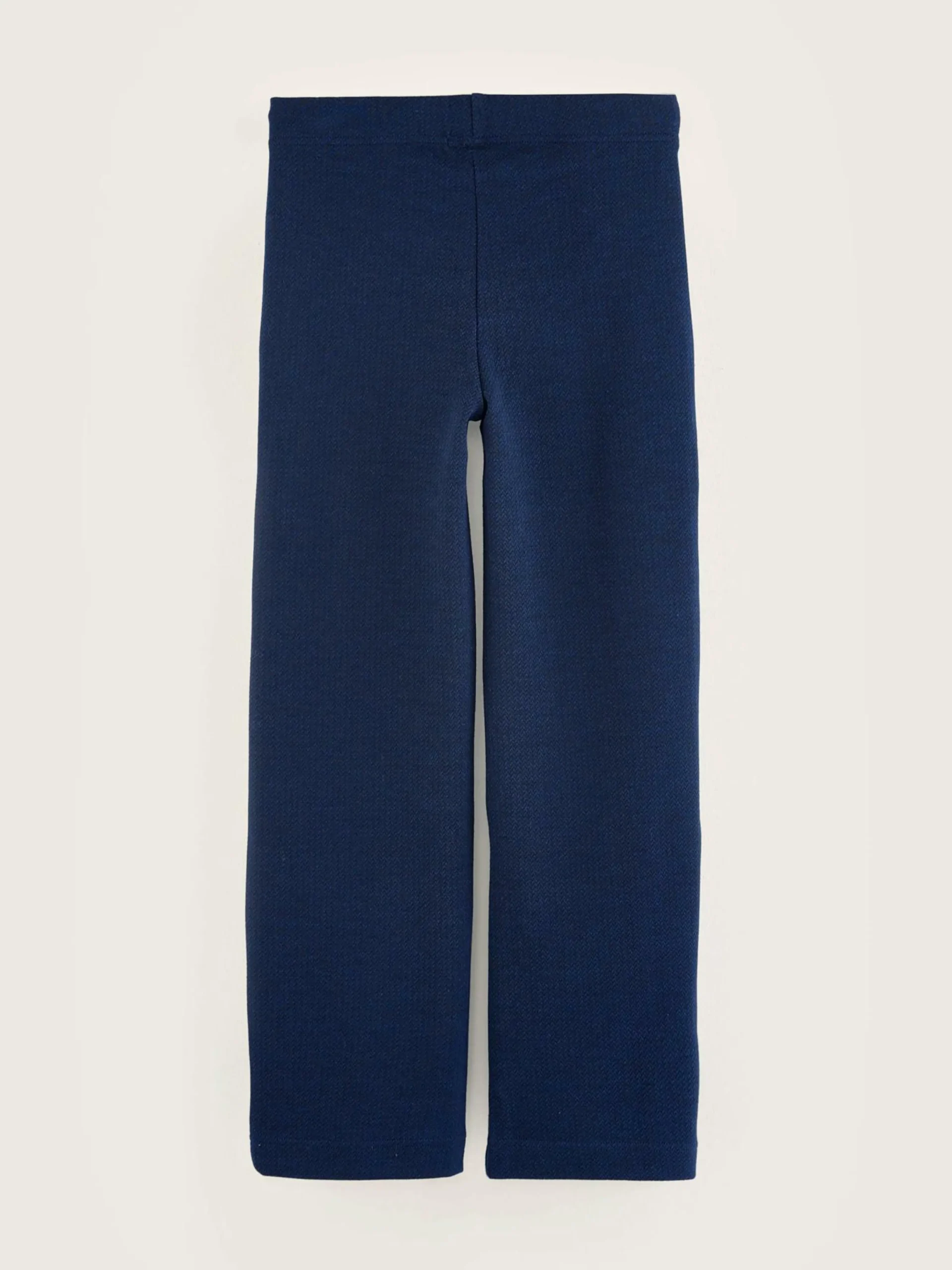 Pantalon bleu marine à taille élastique et jambes évasées.