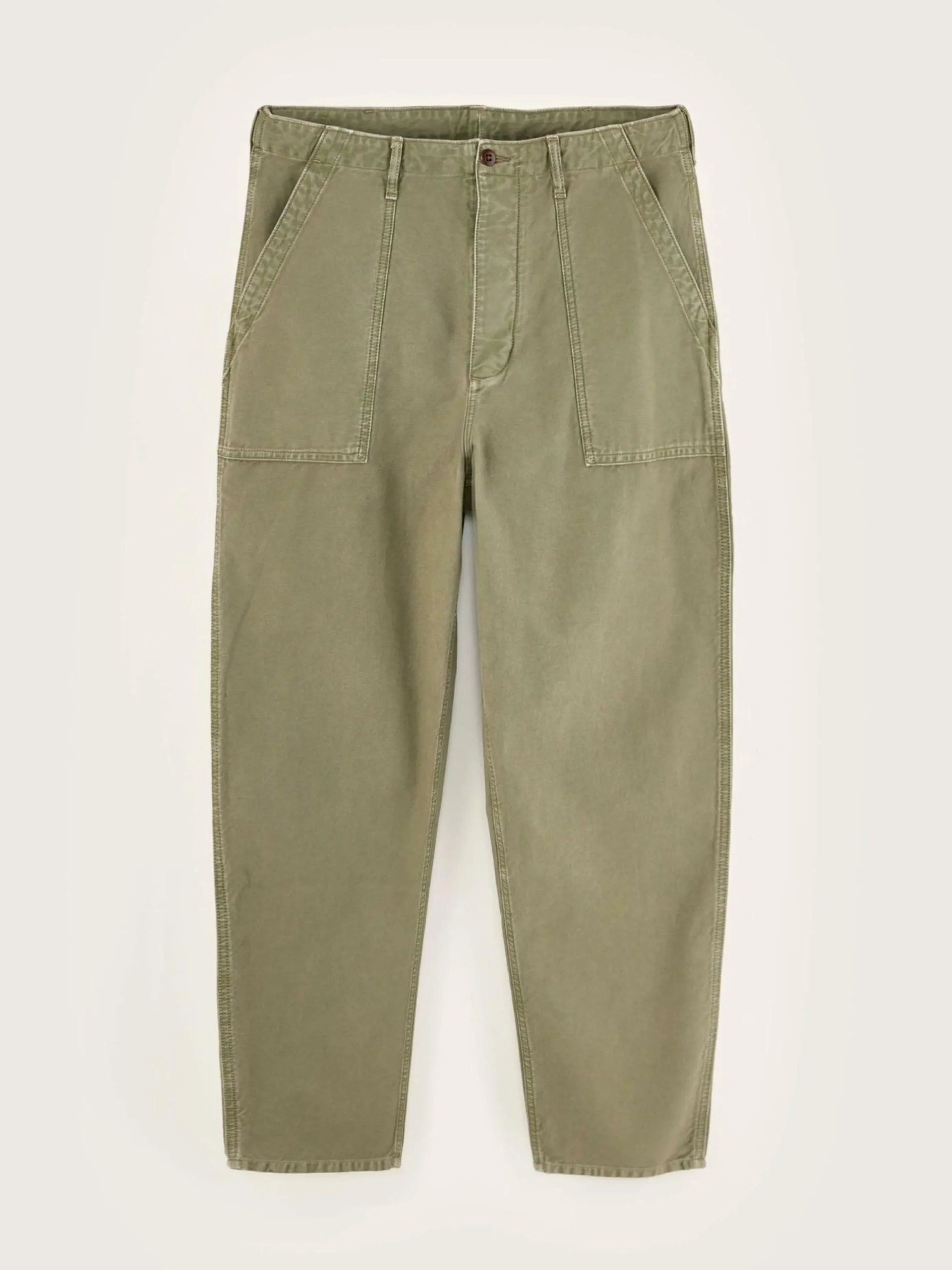 Pantalon cargo, coupe décontractée et jambes fuselées, en toile de coton verte.