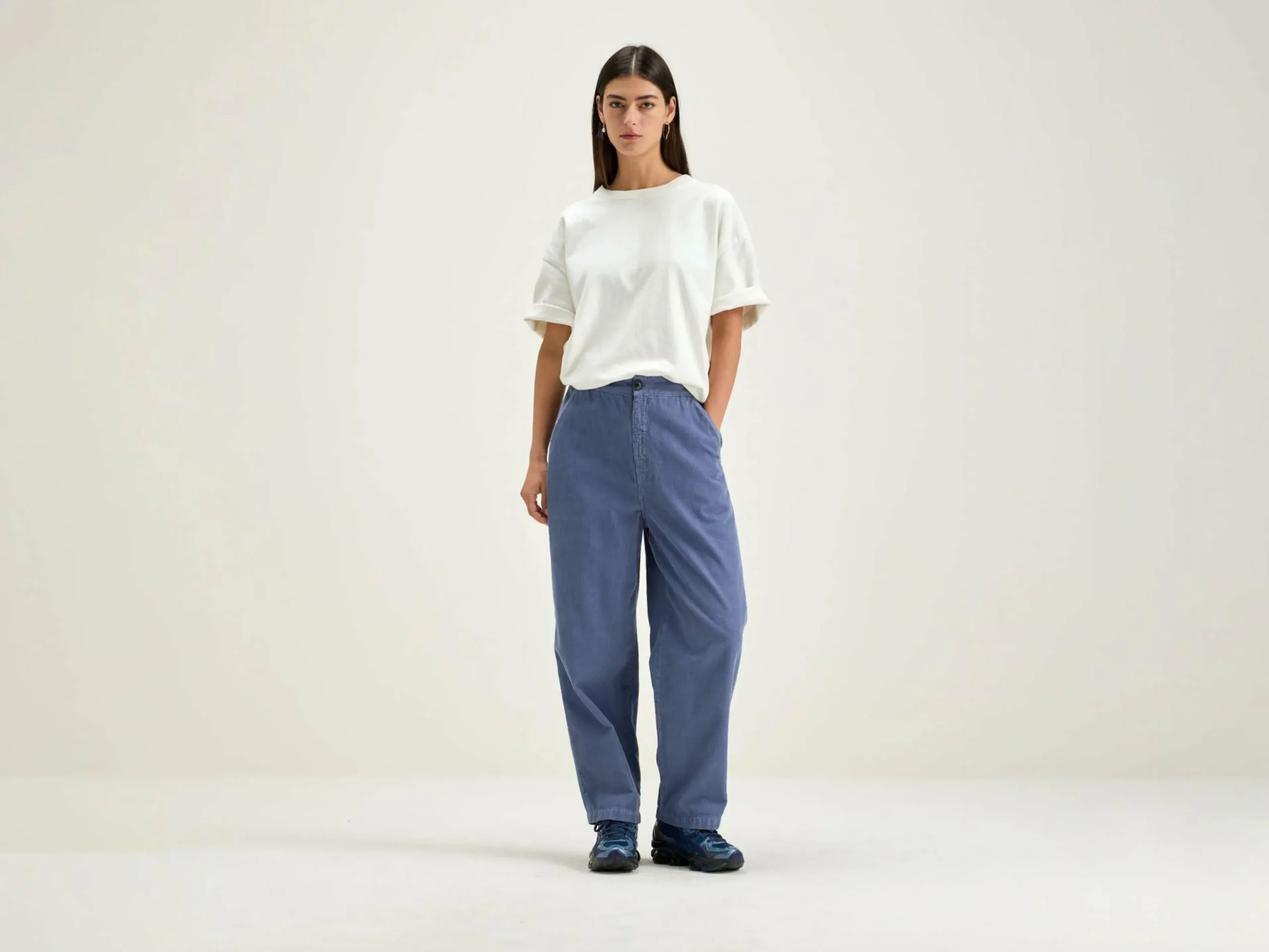 Pantalon décontracté, taille semi-élastique en velours coton milleraies violet.