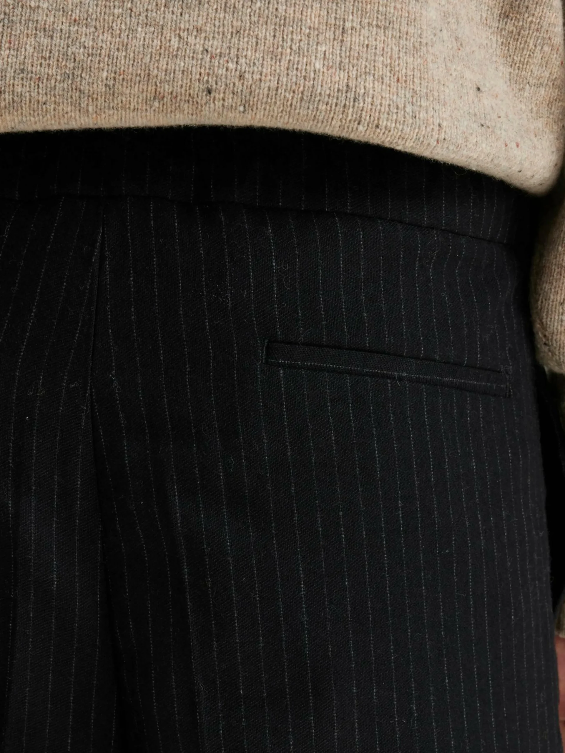 Pantalon décontracté, taille élastiquée et jambes larges et fuselées en tissu rayé.