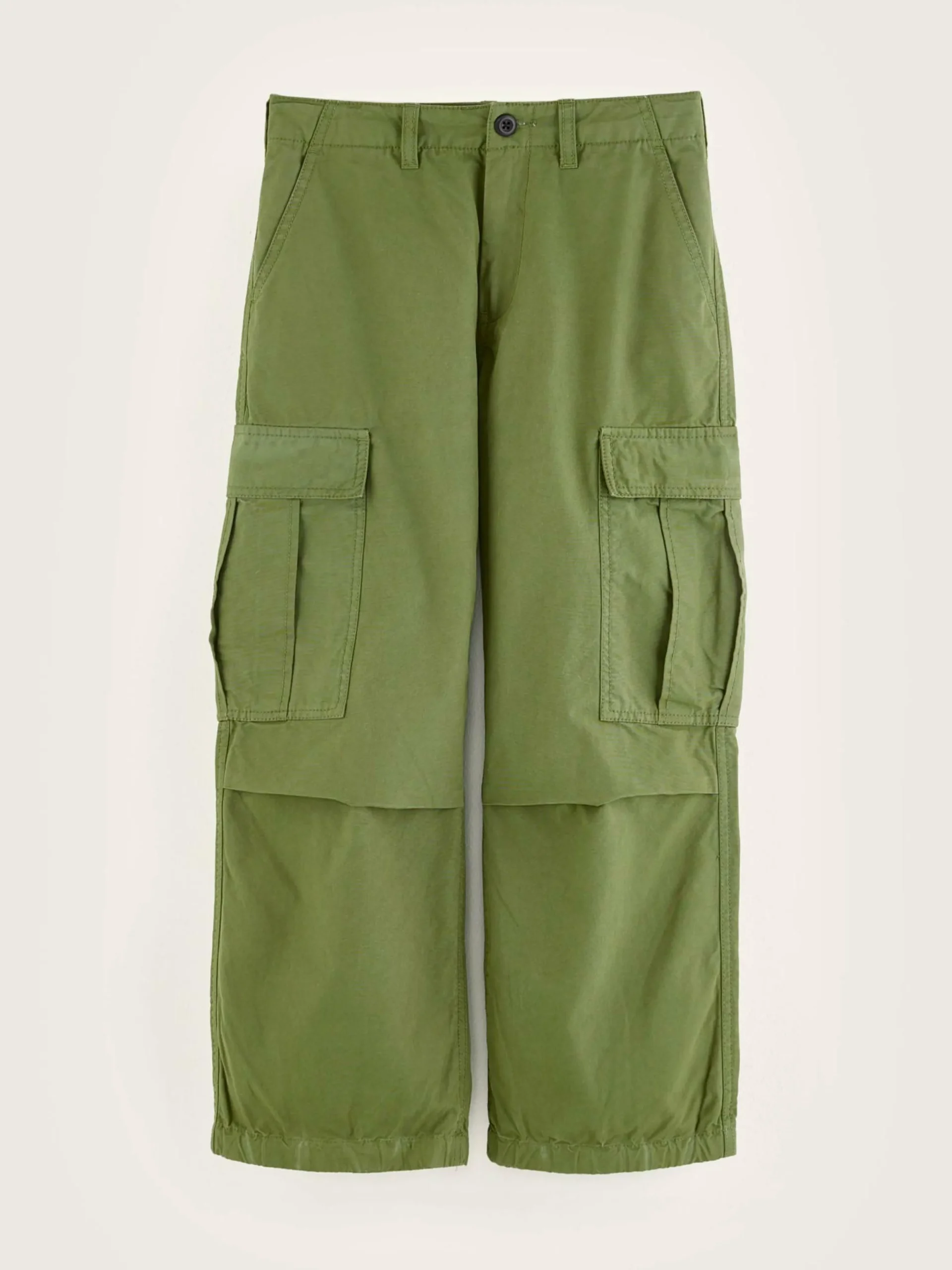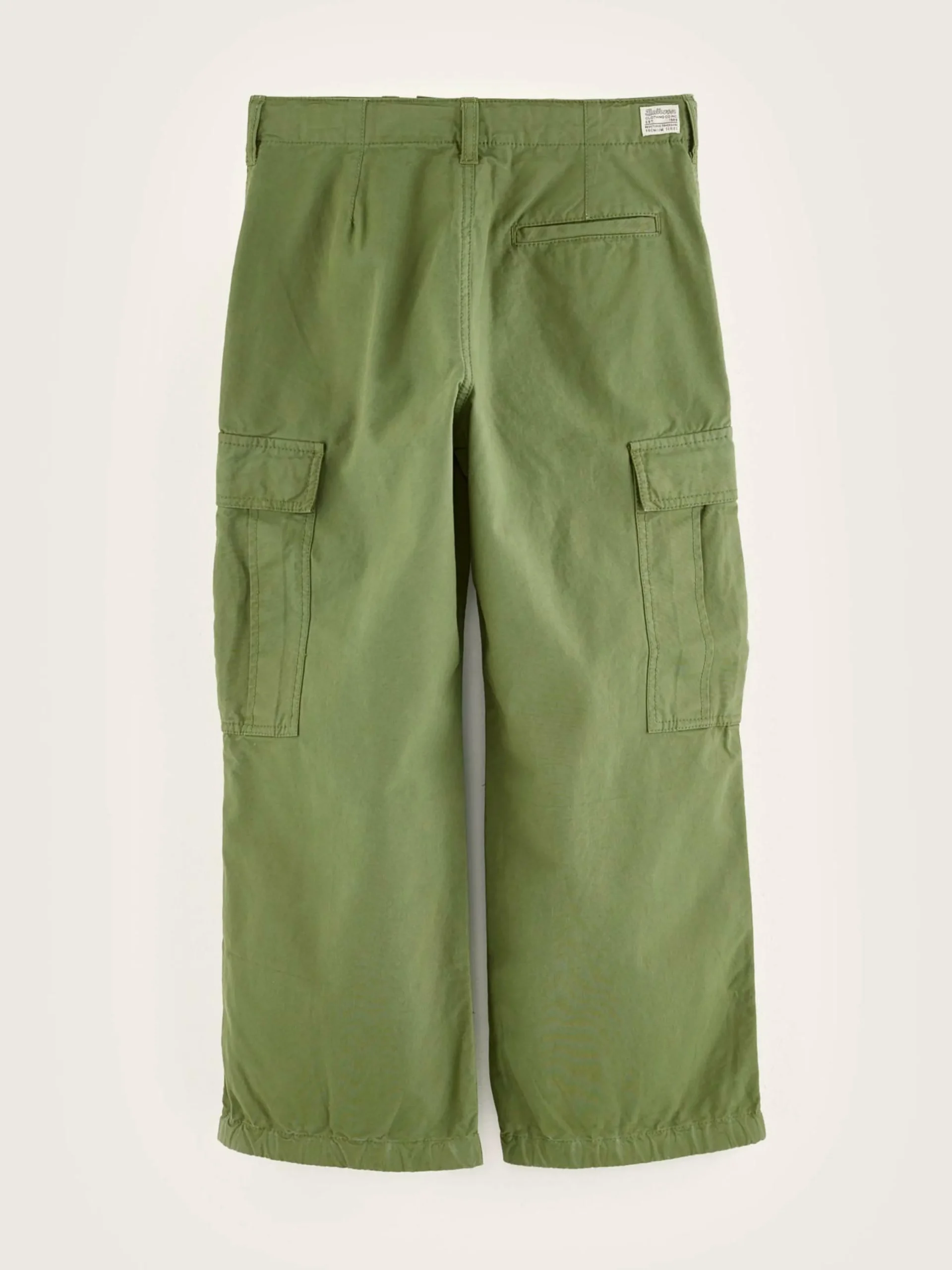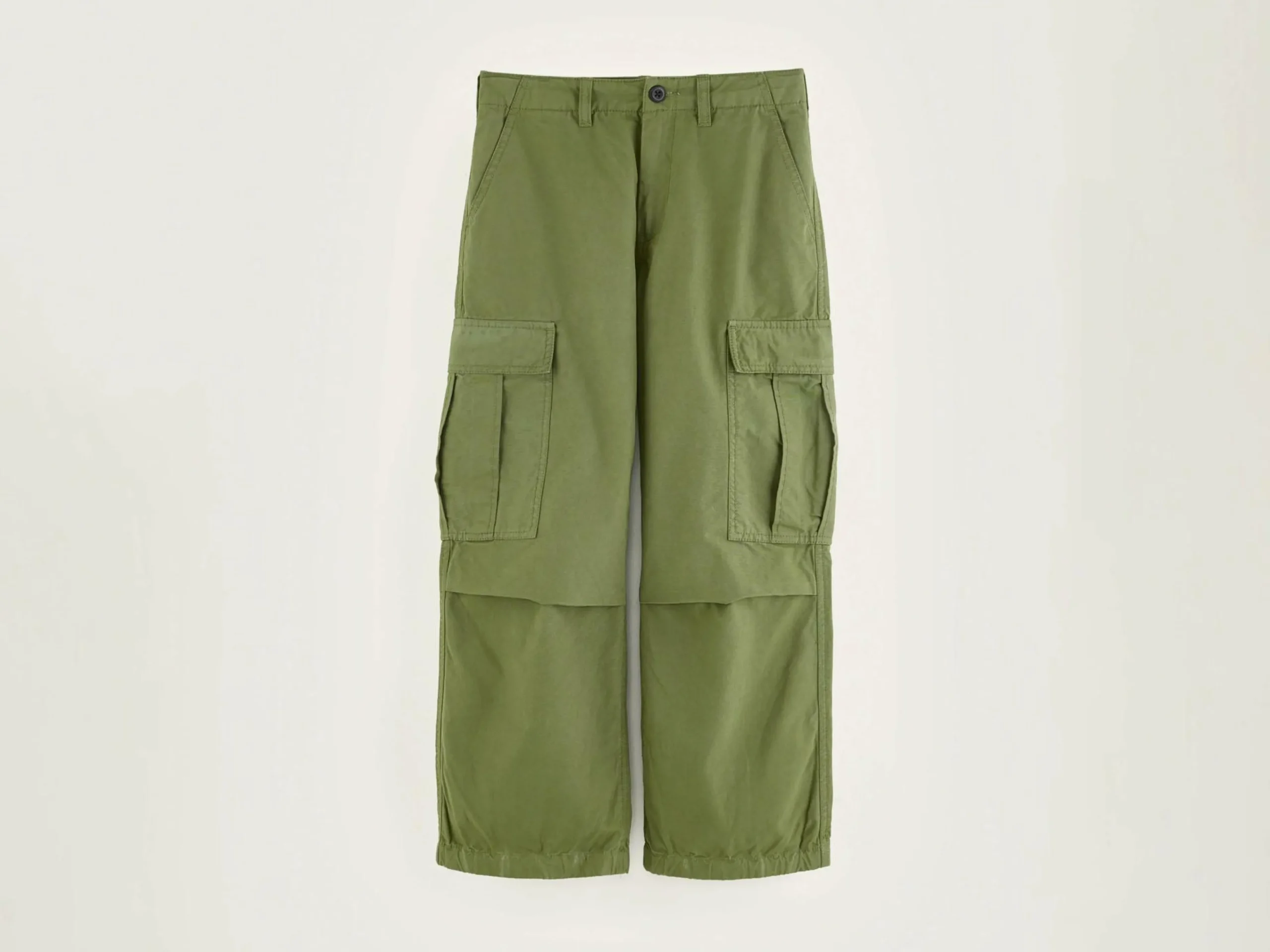 Pantalon à jambes larges style cargo couleur vert kaki.