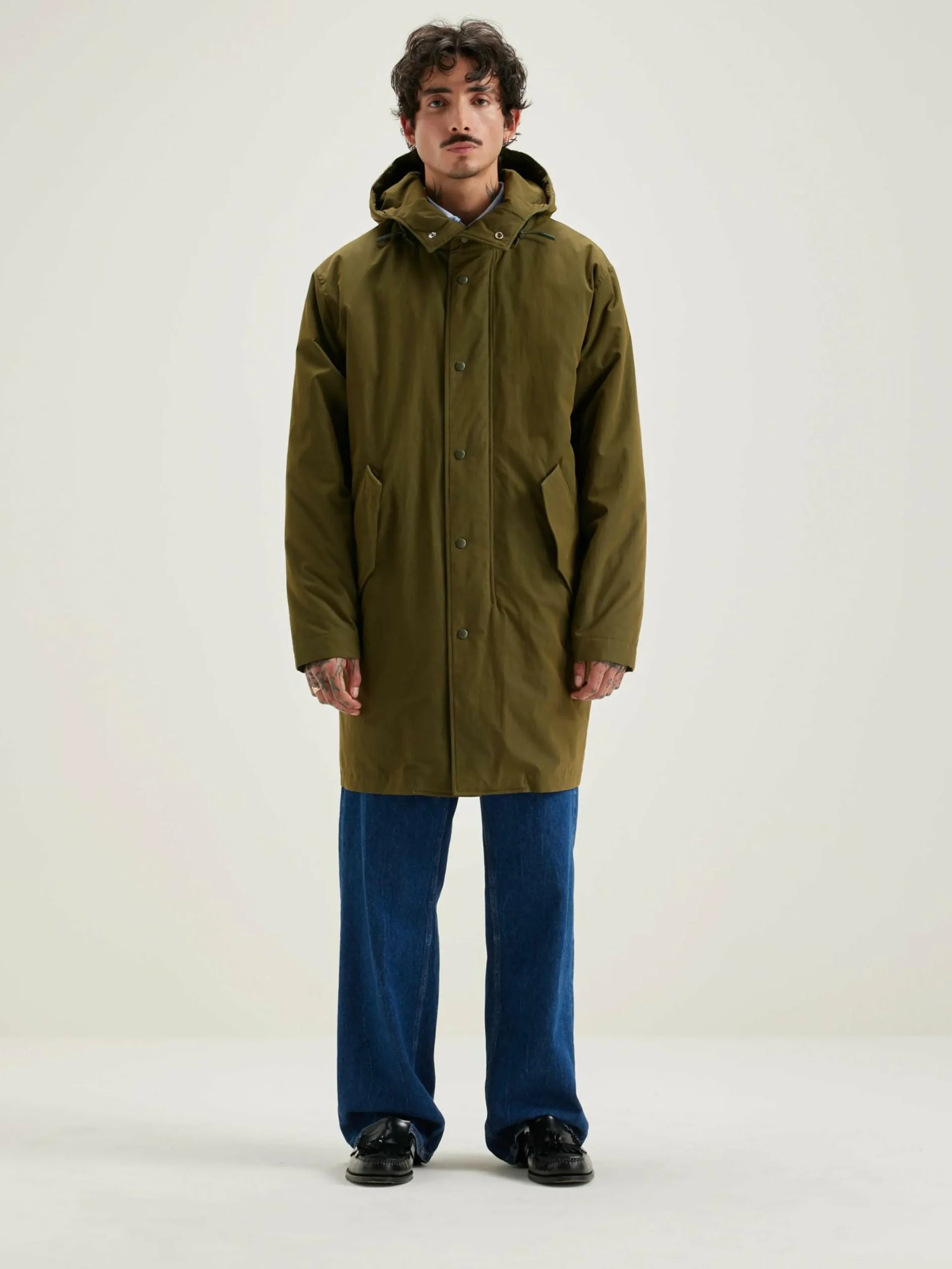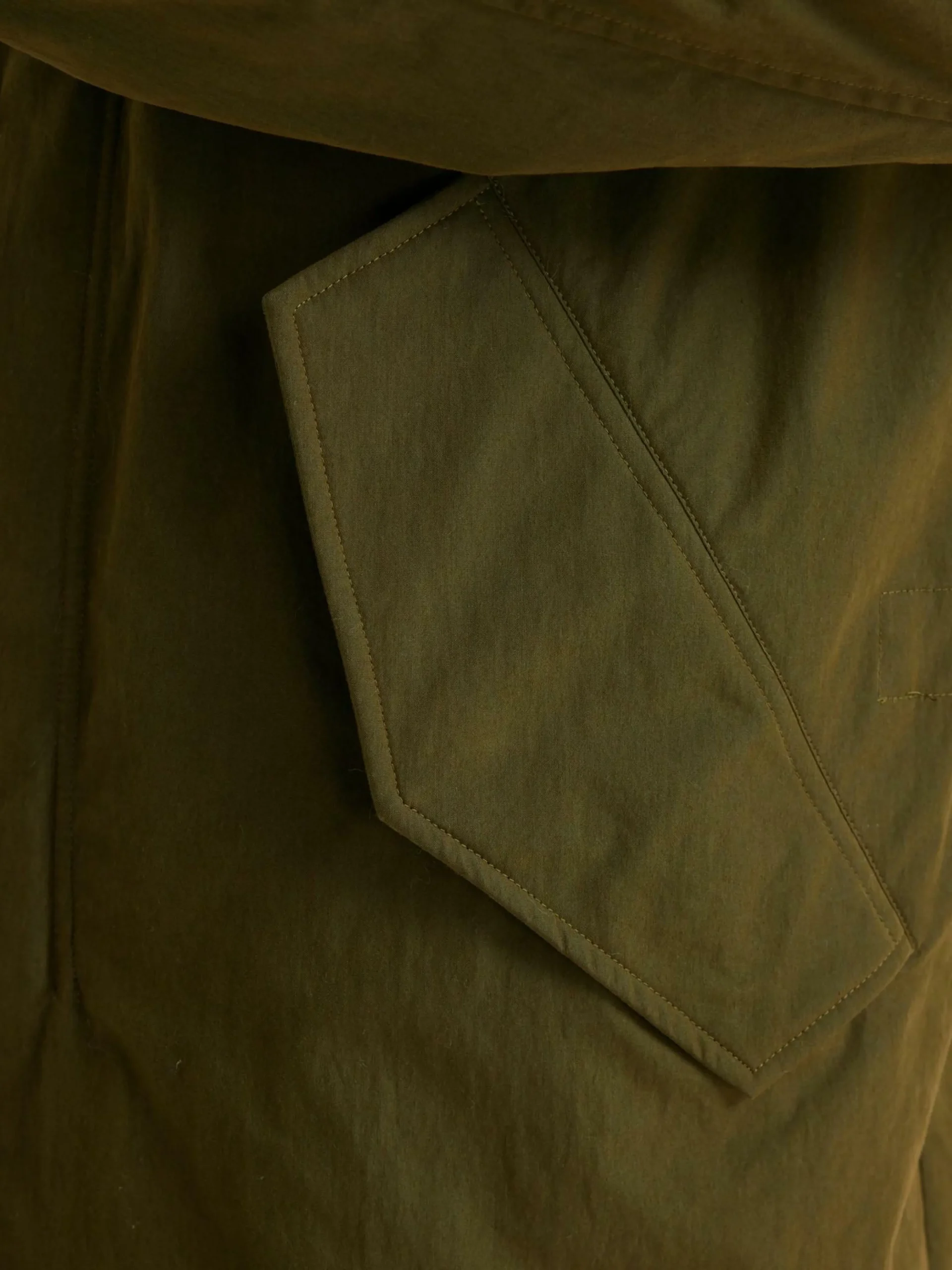 Parka à capuche coupe classique en toile vert olive avec doublure en teddy.