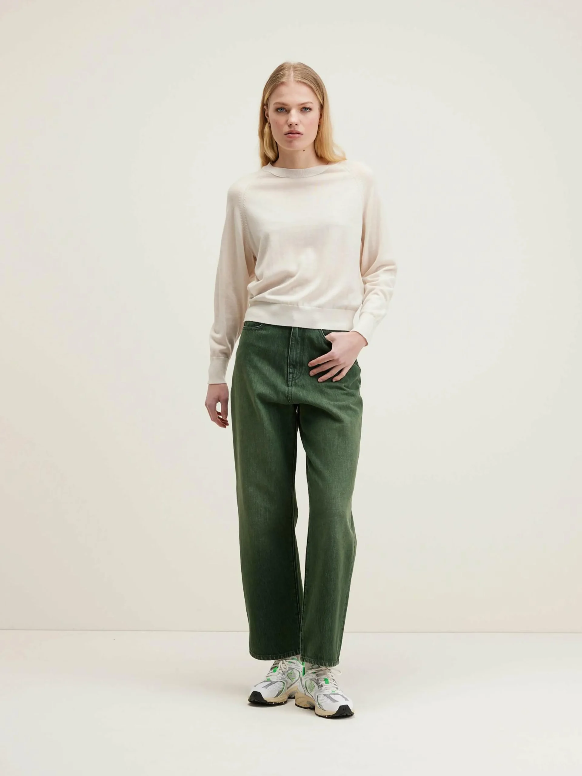 Pull classique en laine mérinos blanc ivoire.