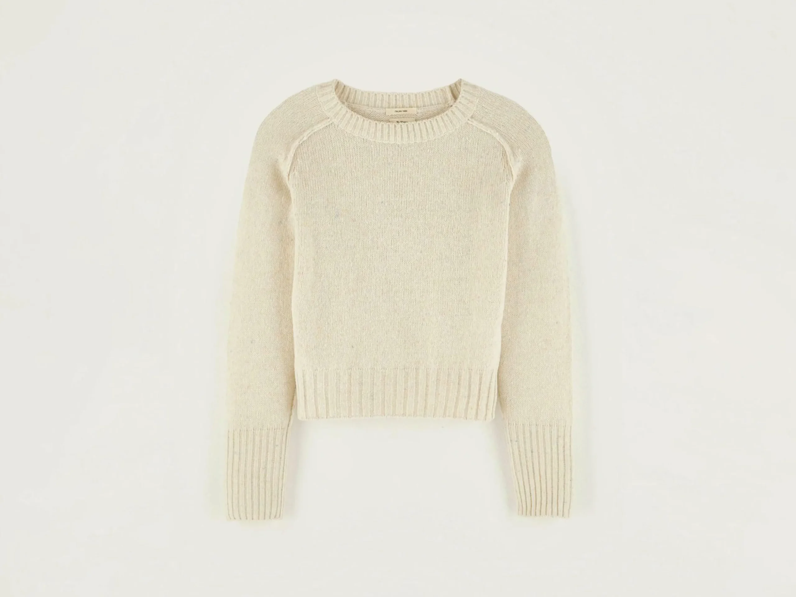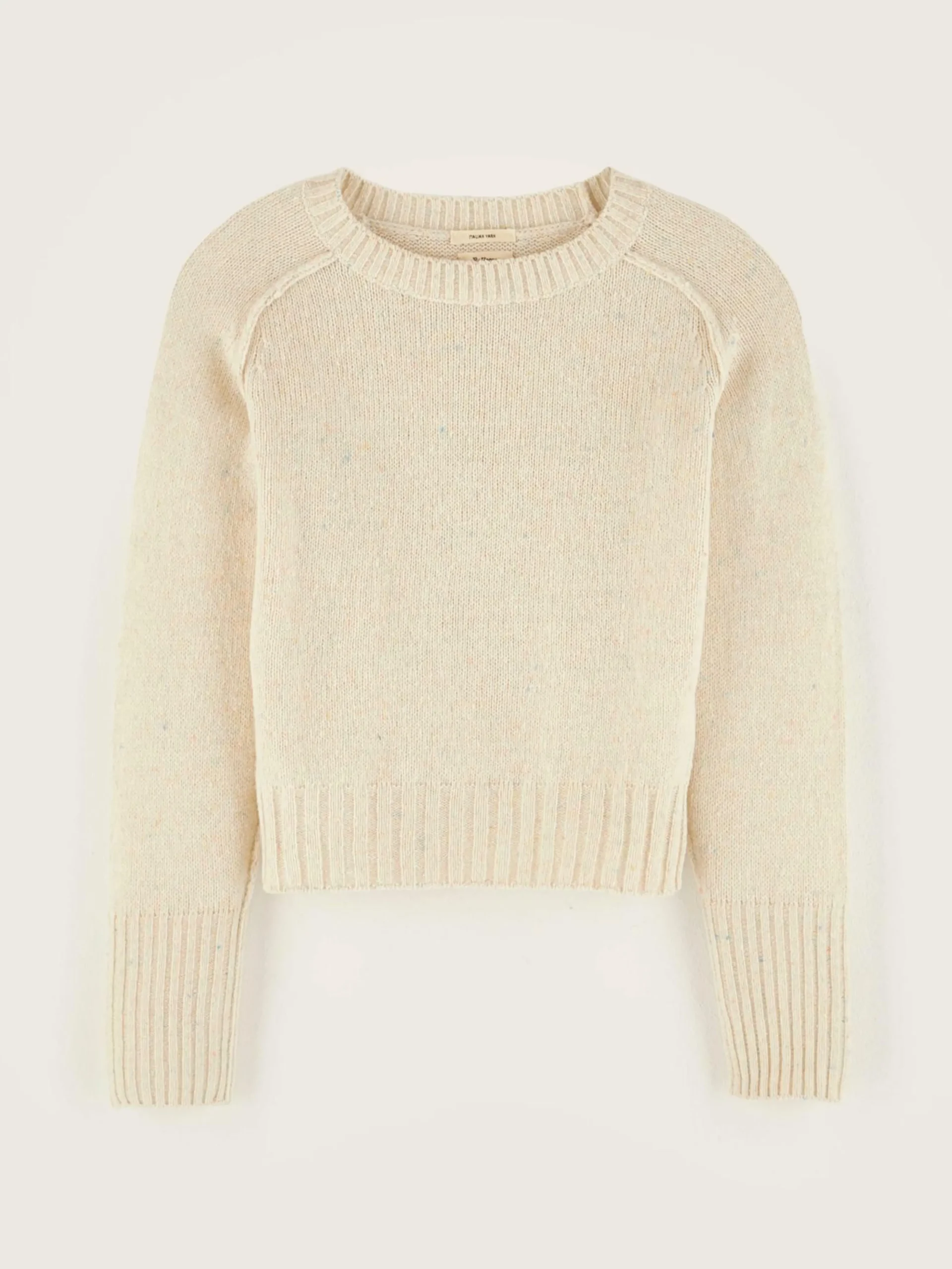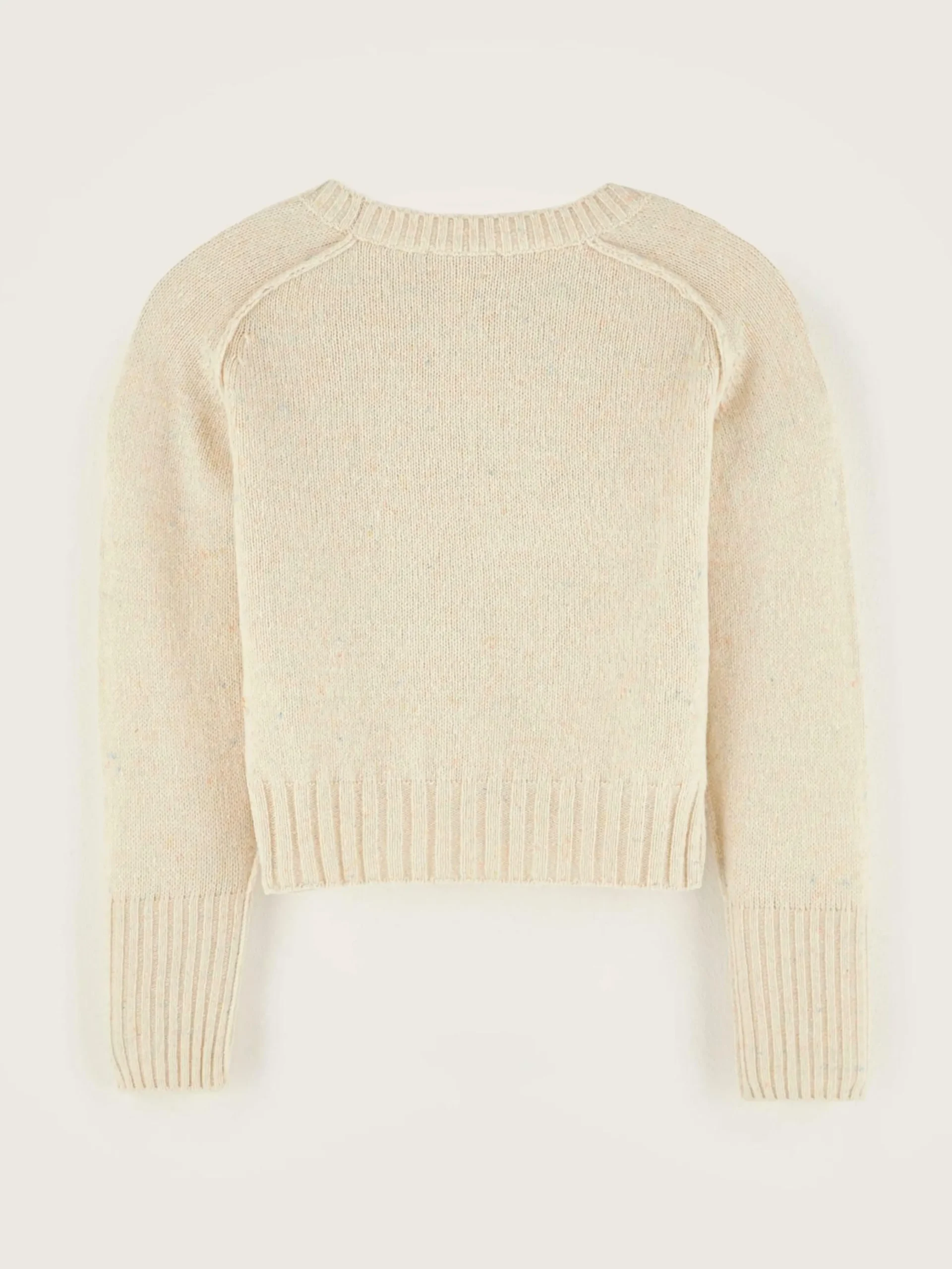 Pull classique à coupe ajustée de couleur beige.