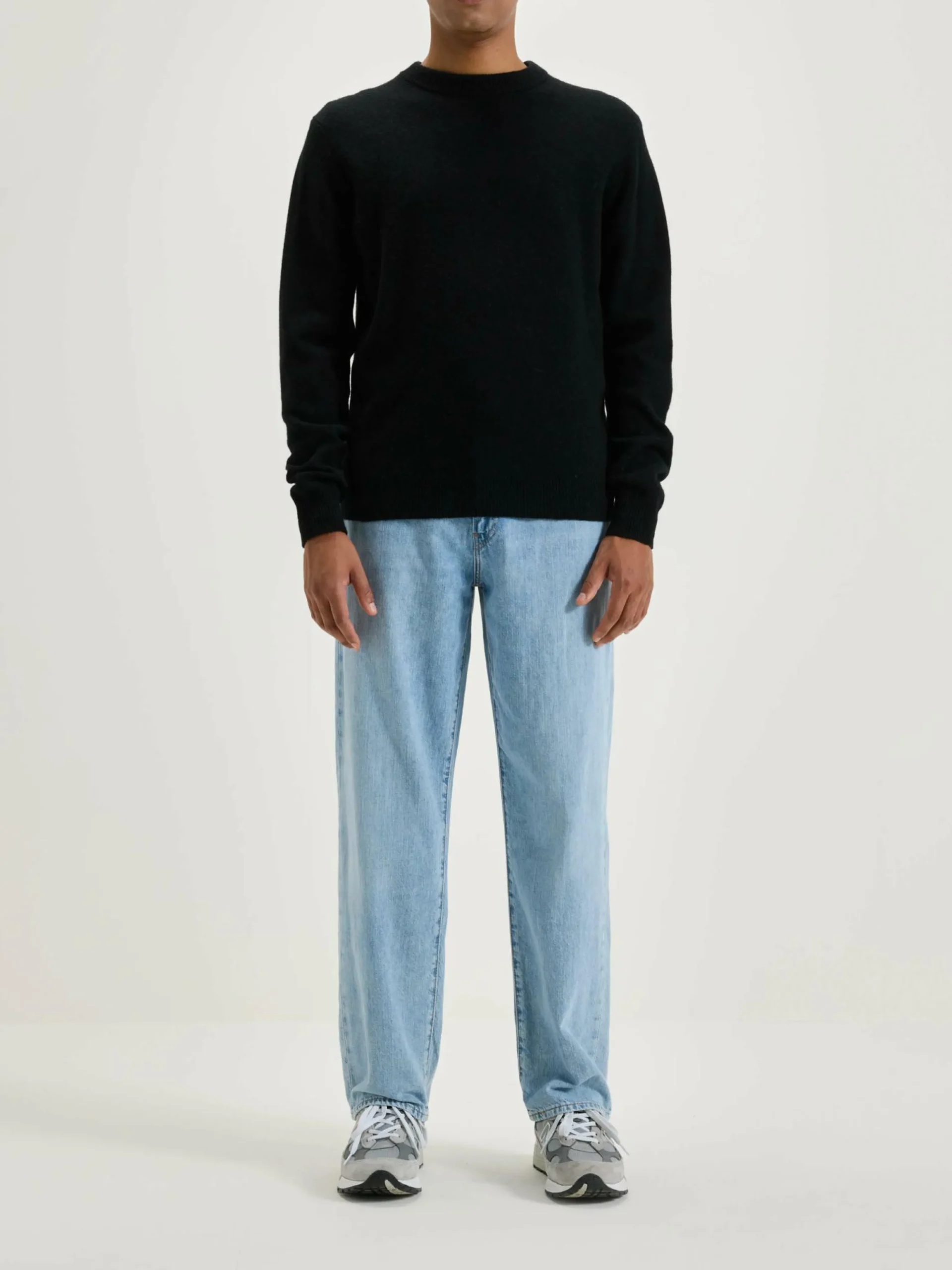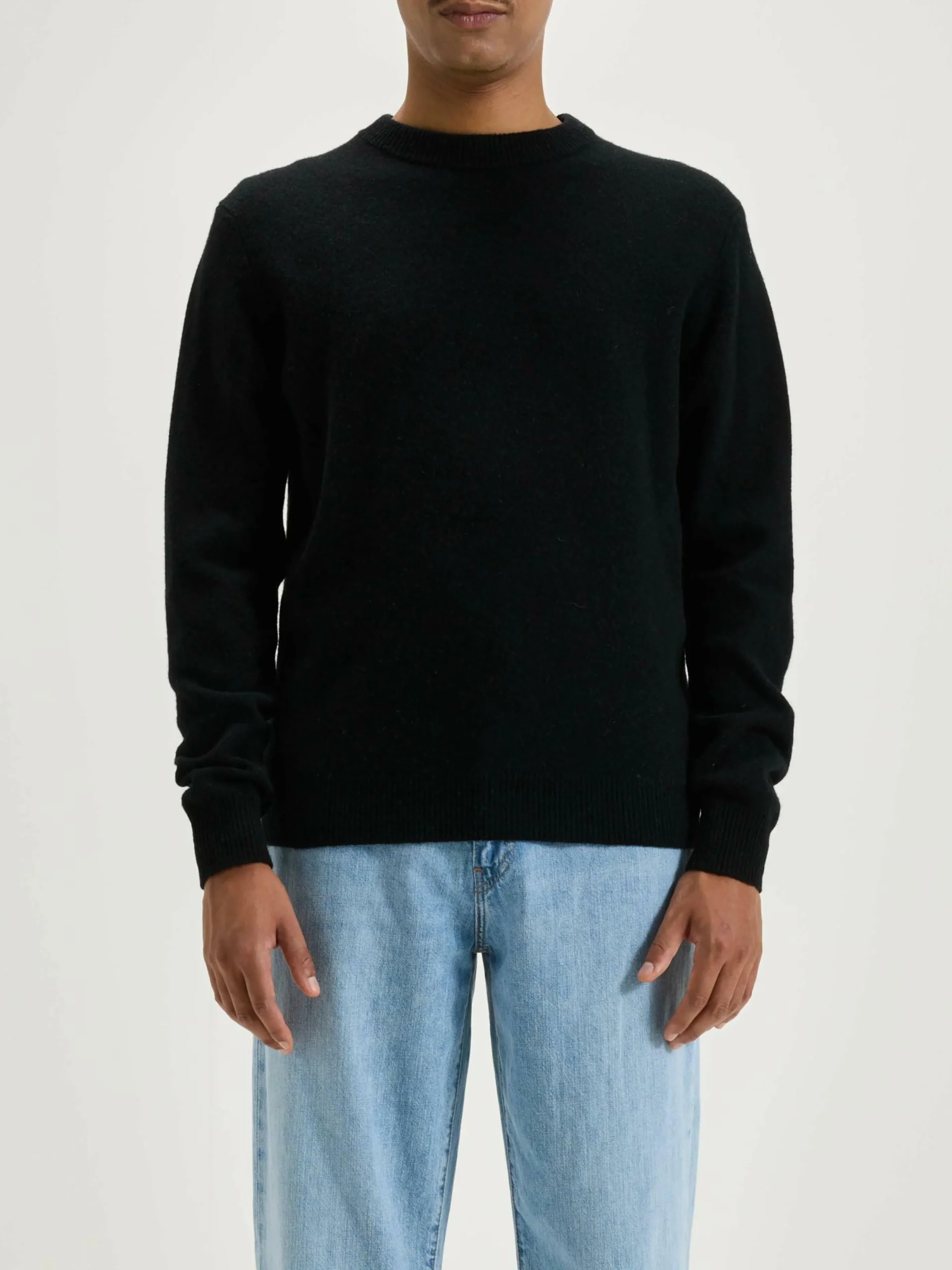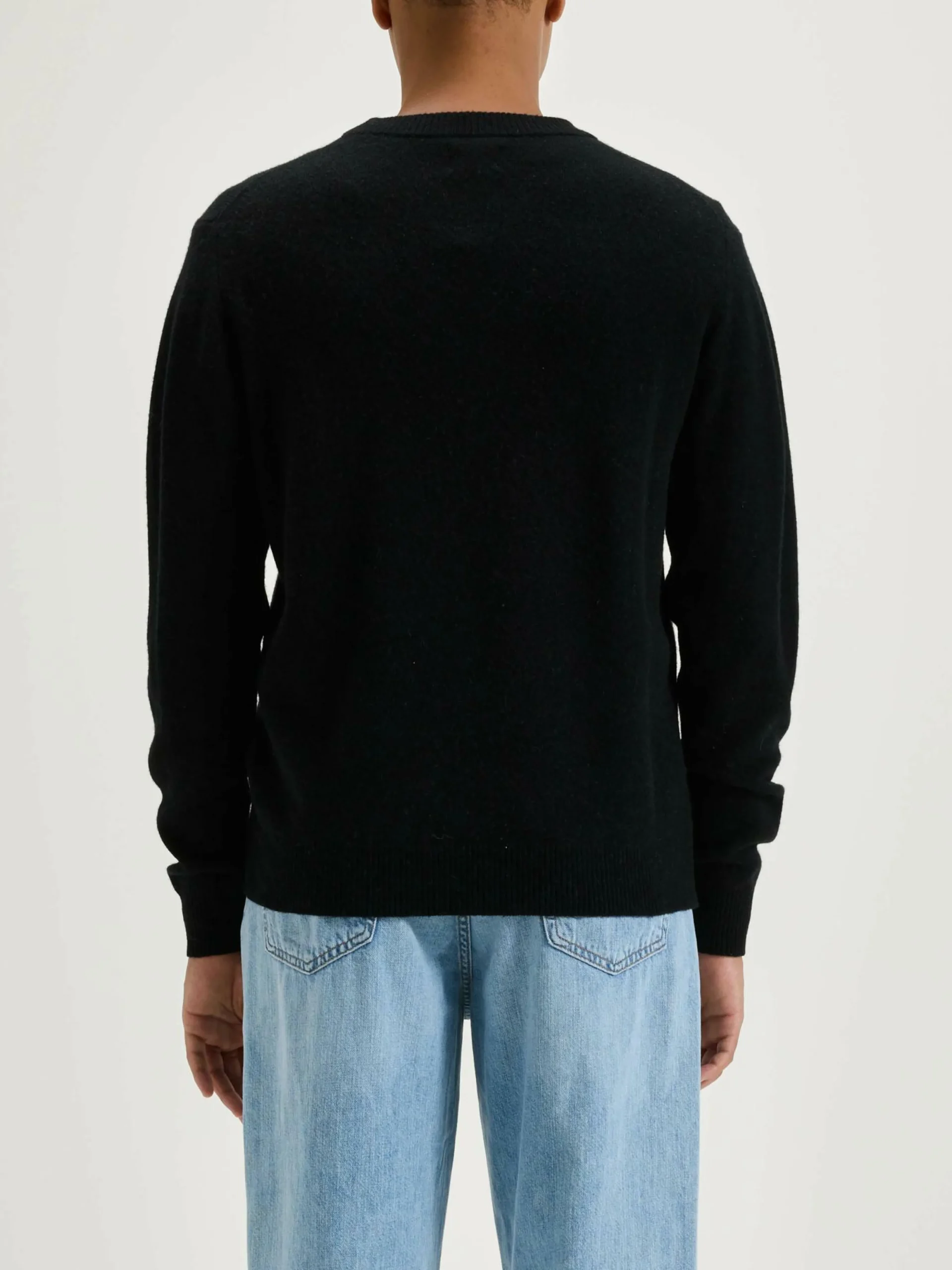 Pull classique en laine mérinos noire.