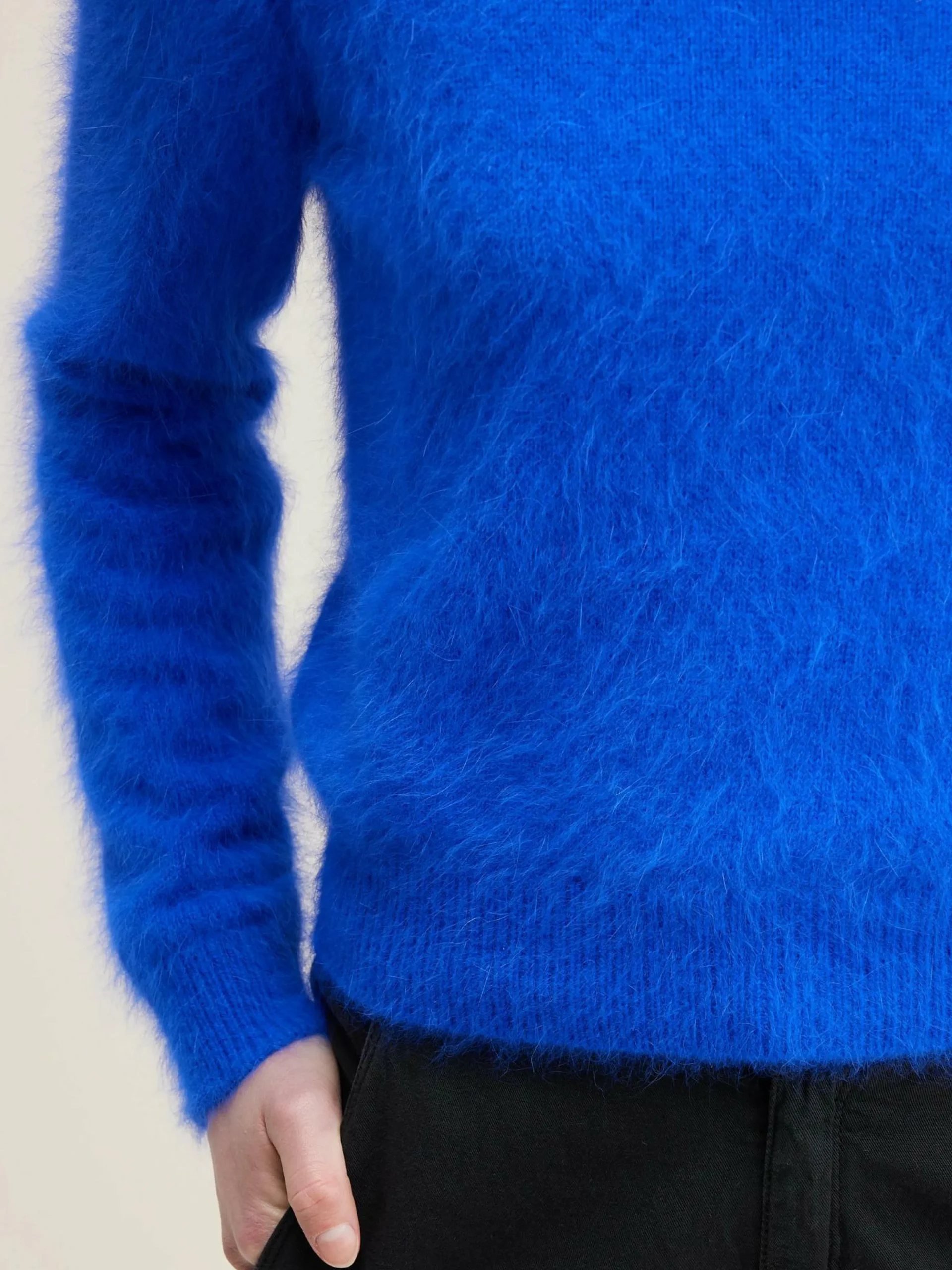 Pull classique bleu lazuli à col rond en mélange d’angora.