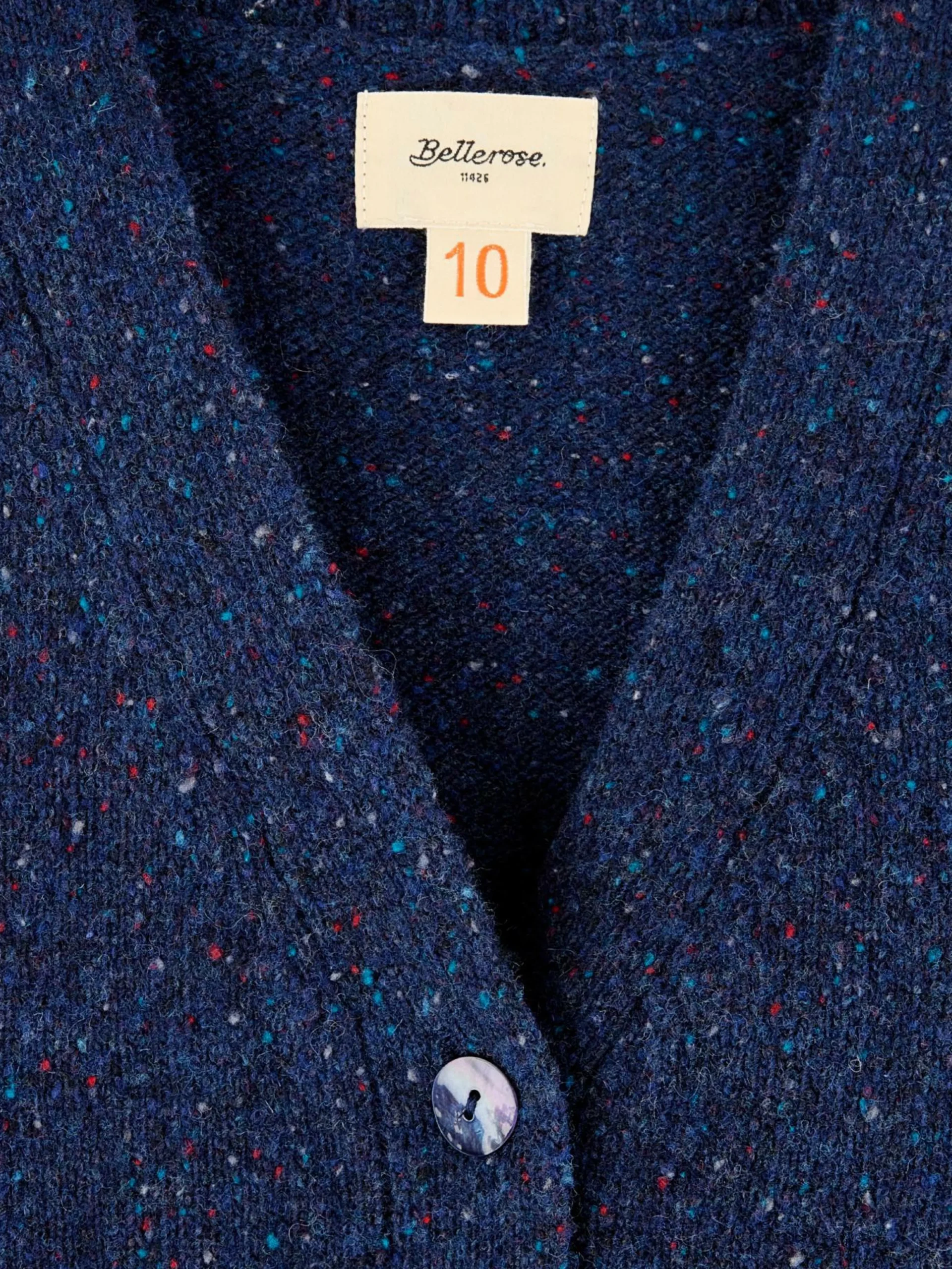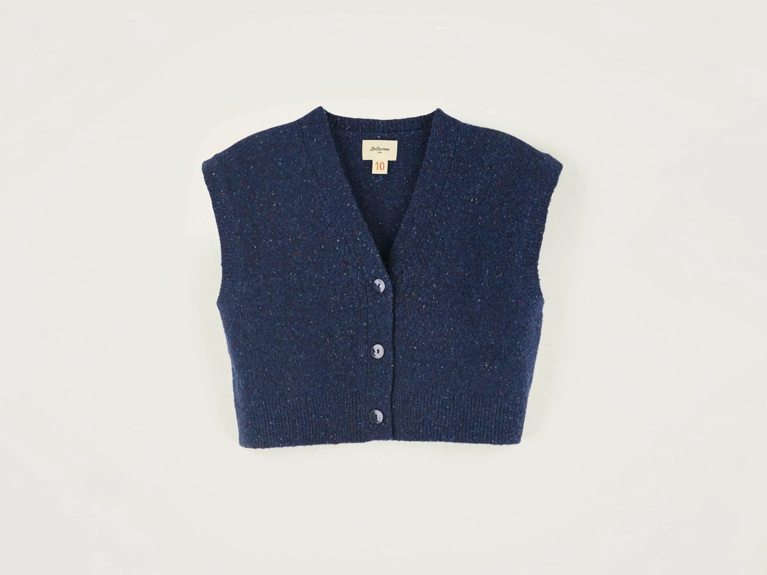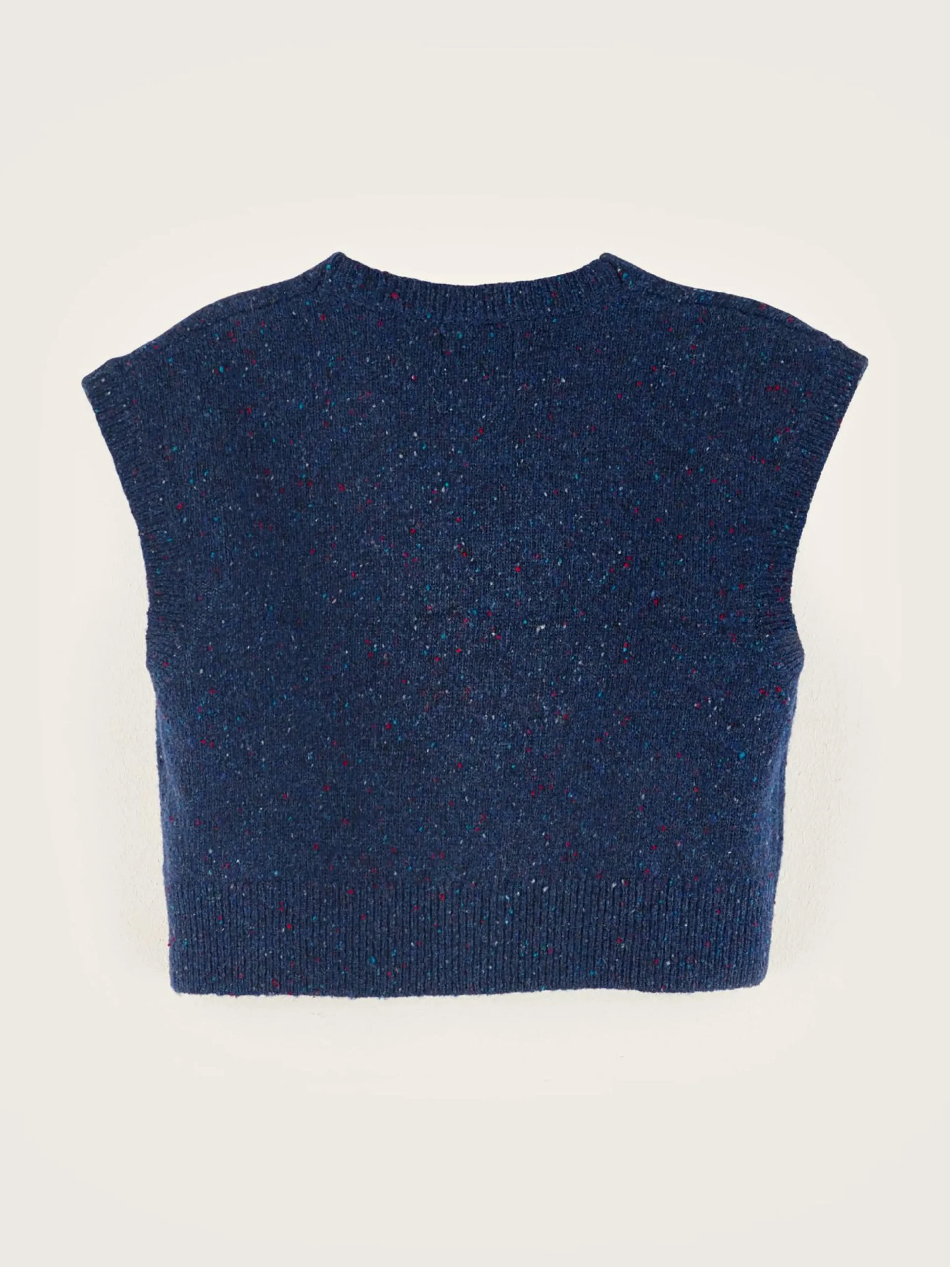 Cardigan court sans manches en maille bleu foncé.