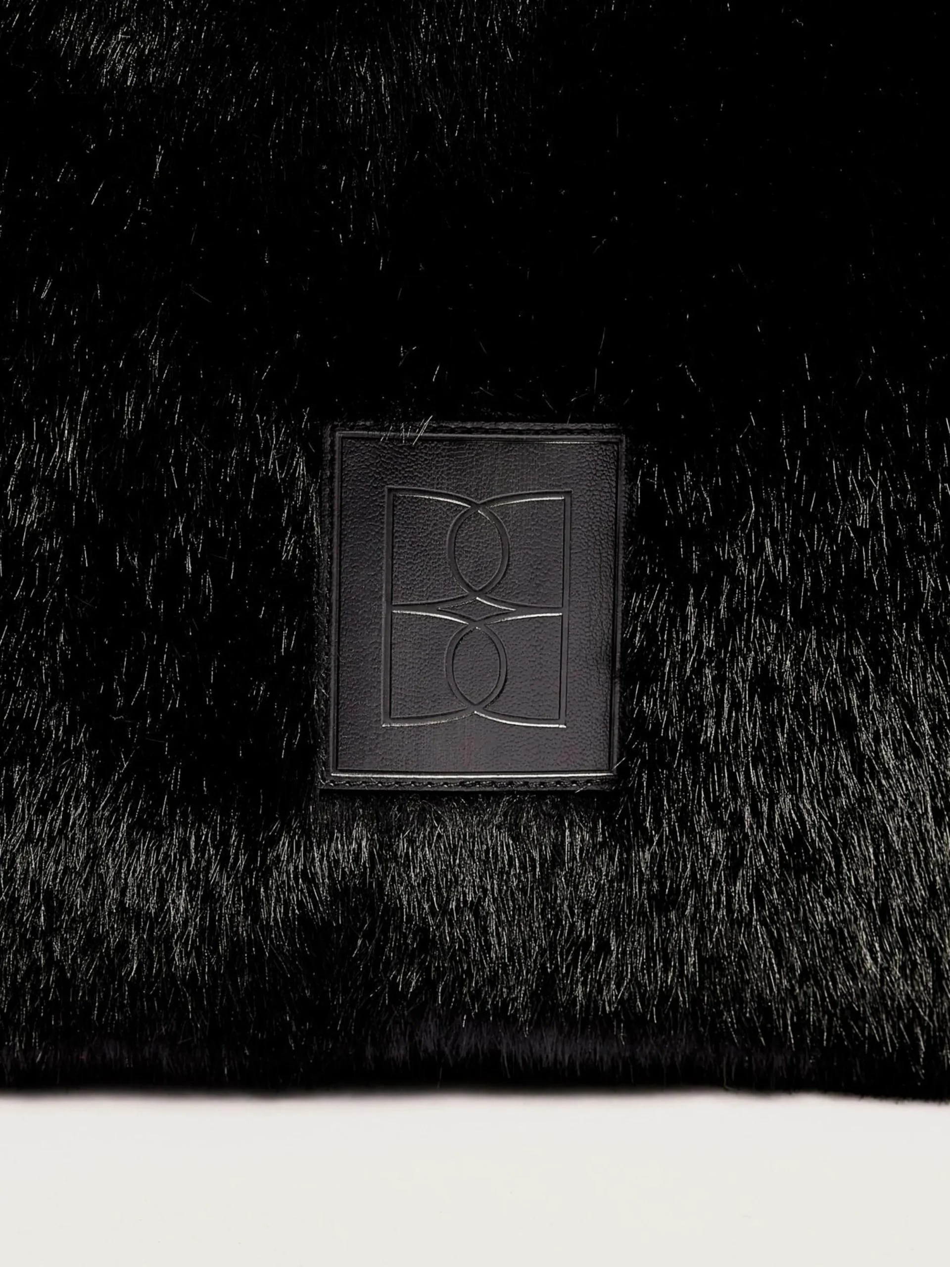 Sac à main à double fermeture en fausse fourrure noire.