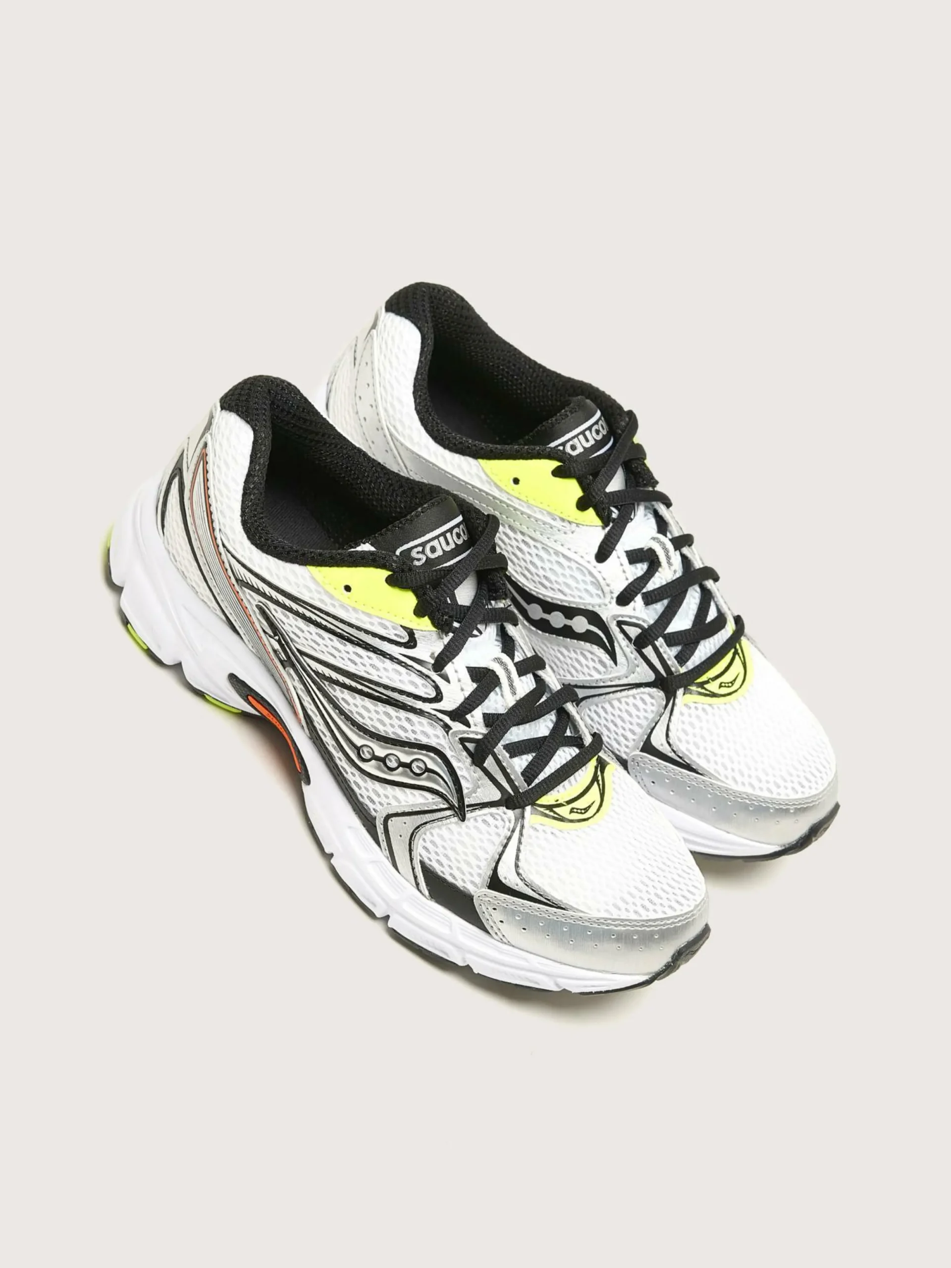 Les sneakers Saucony Grid Ride Millennium sont dotées d’un amorti en grille, de mailles et de détails métalliques.