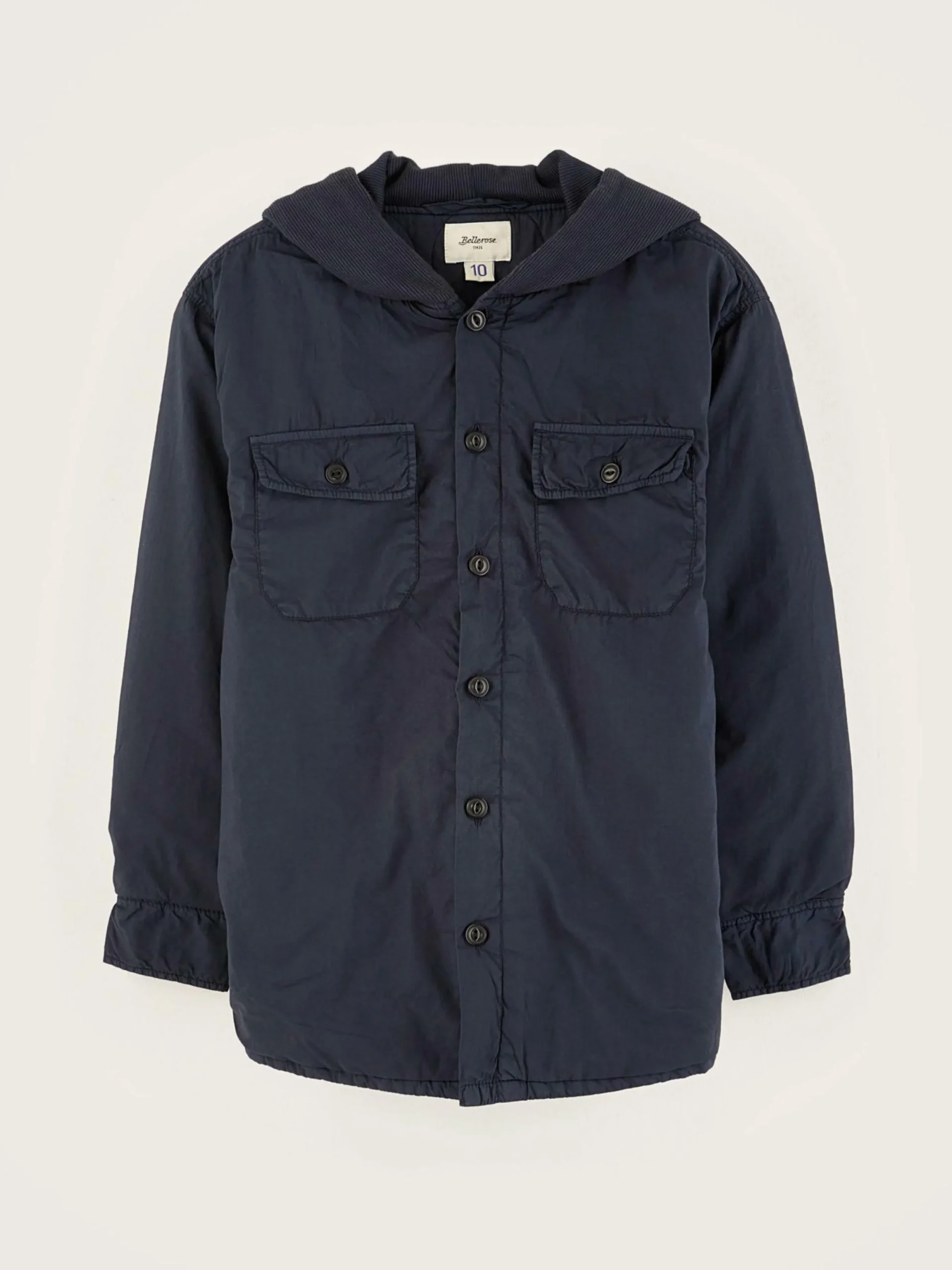 Surchemise en popeline de coton bleu marine avec capuche en jersey.