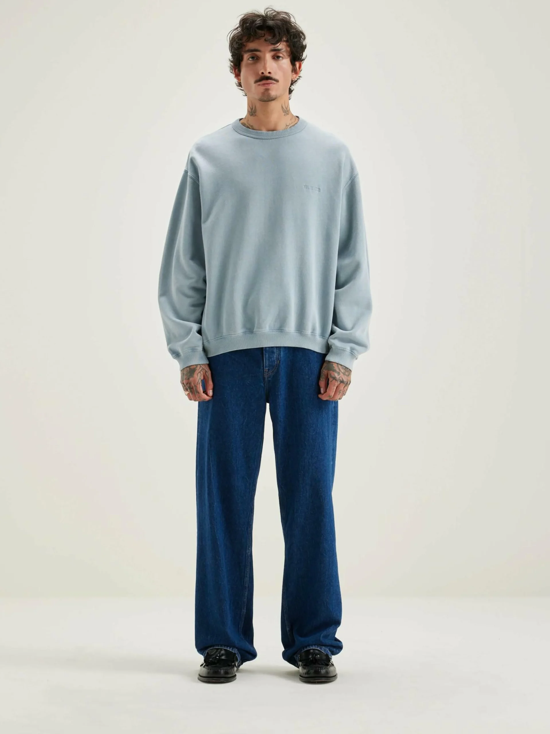 Sweatshirt décontracté en jersey de coton bleu chambray.