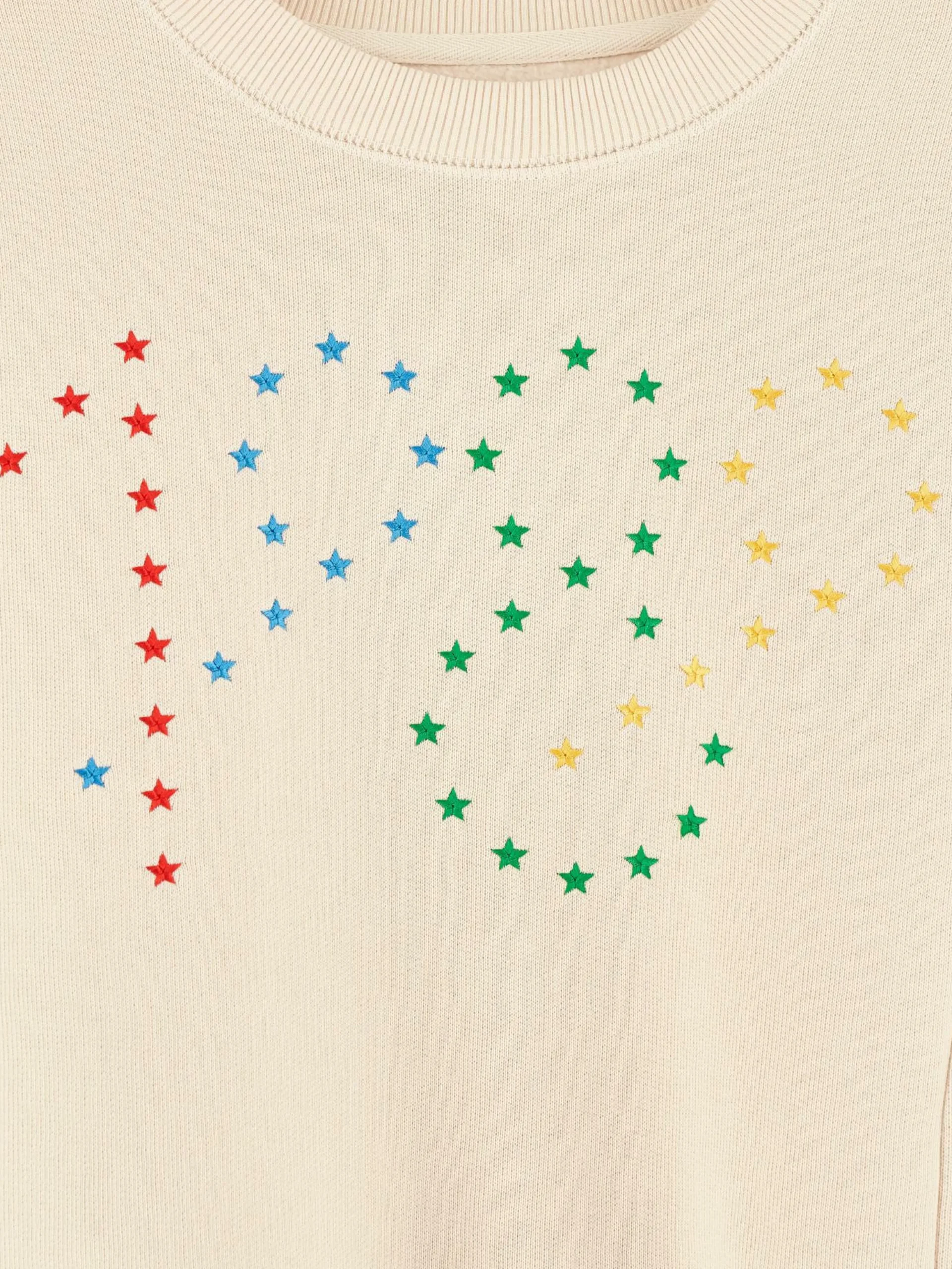 Sweatshirt décontracté à manches longues en jersey beige avec imprimé « JOY » en lettres feutrées sur l’avant.