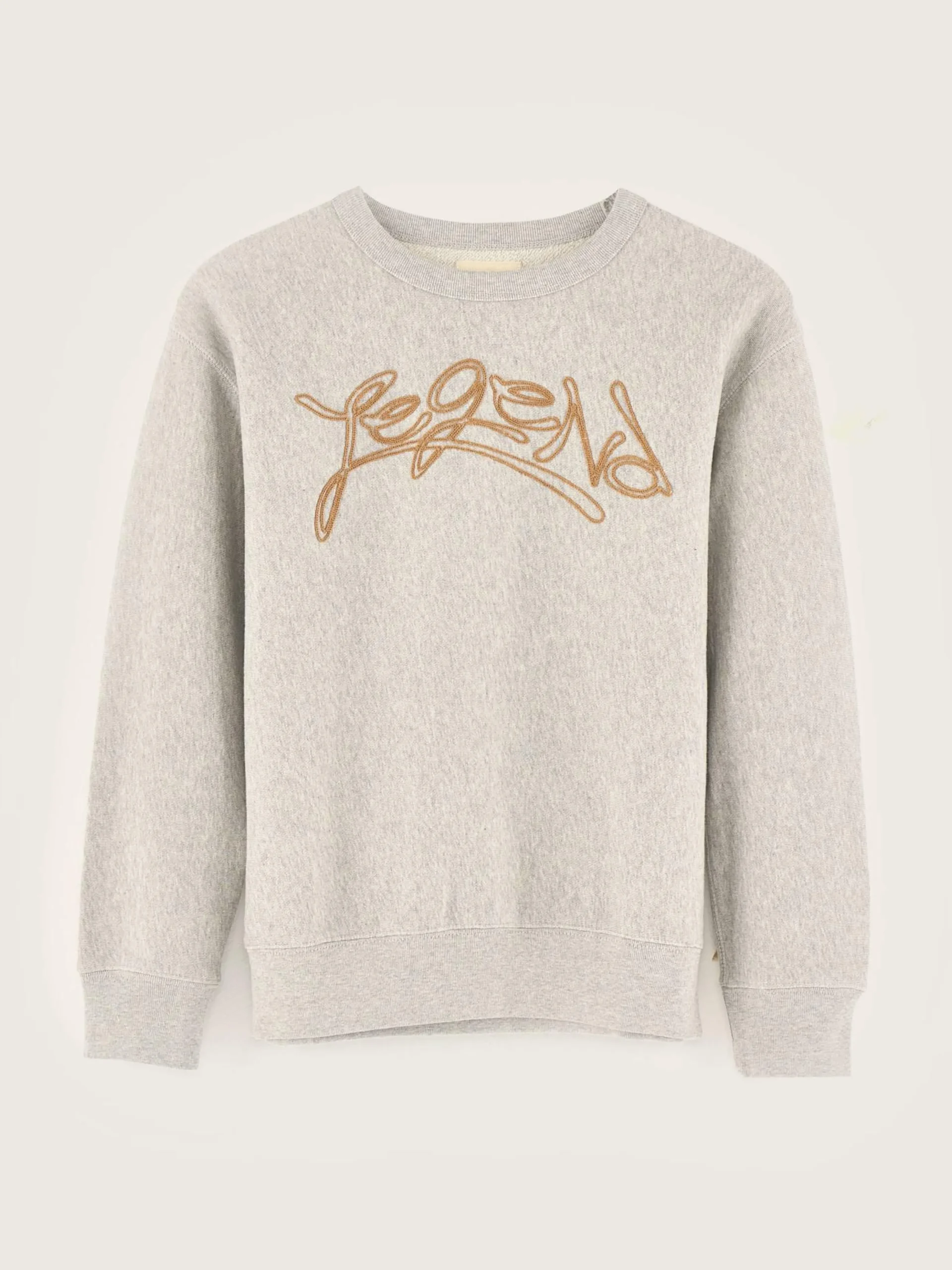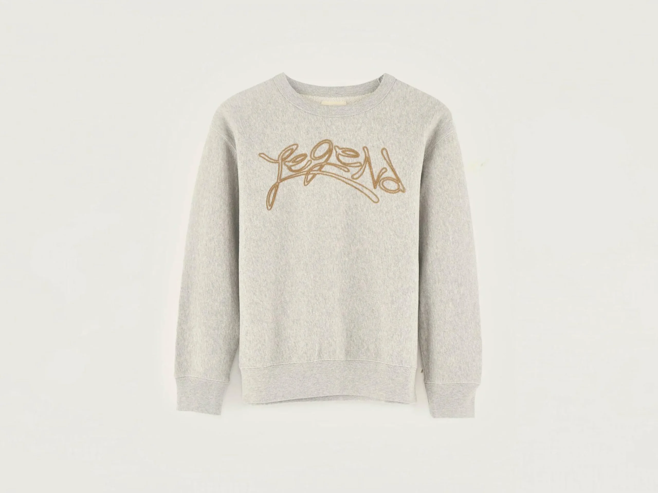 Sweatshirt à col rond, coupe classique en jersey éponge gris chiné avec broderie « legend » sur l’avant.