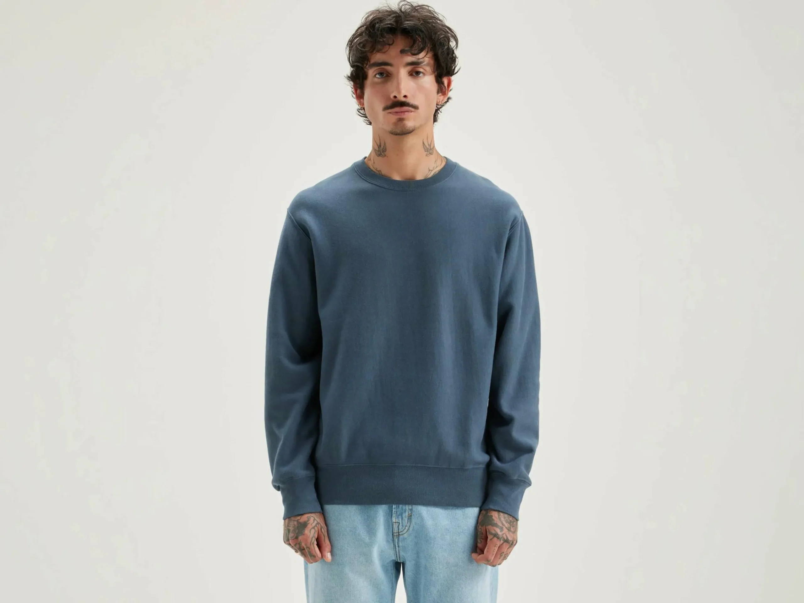 Sweatshirt col rond en jersey de coton bleu-gris.