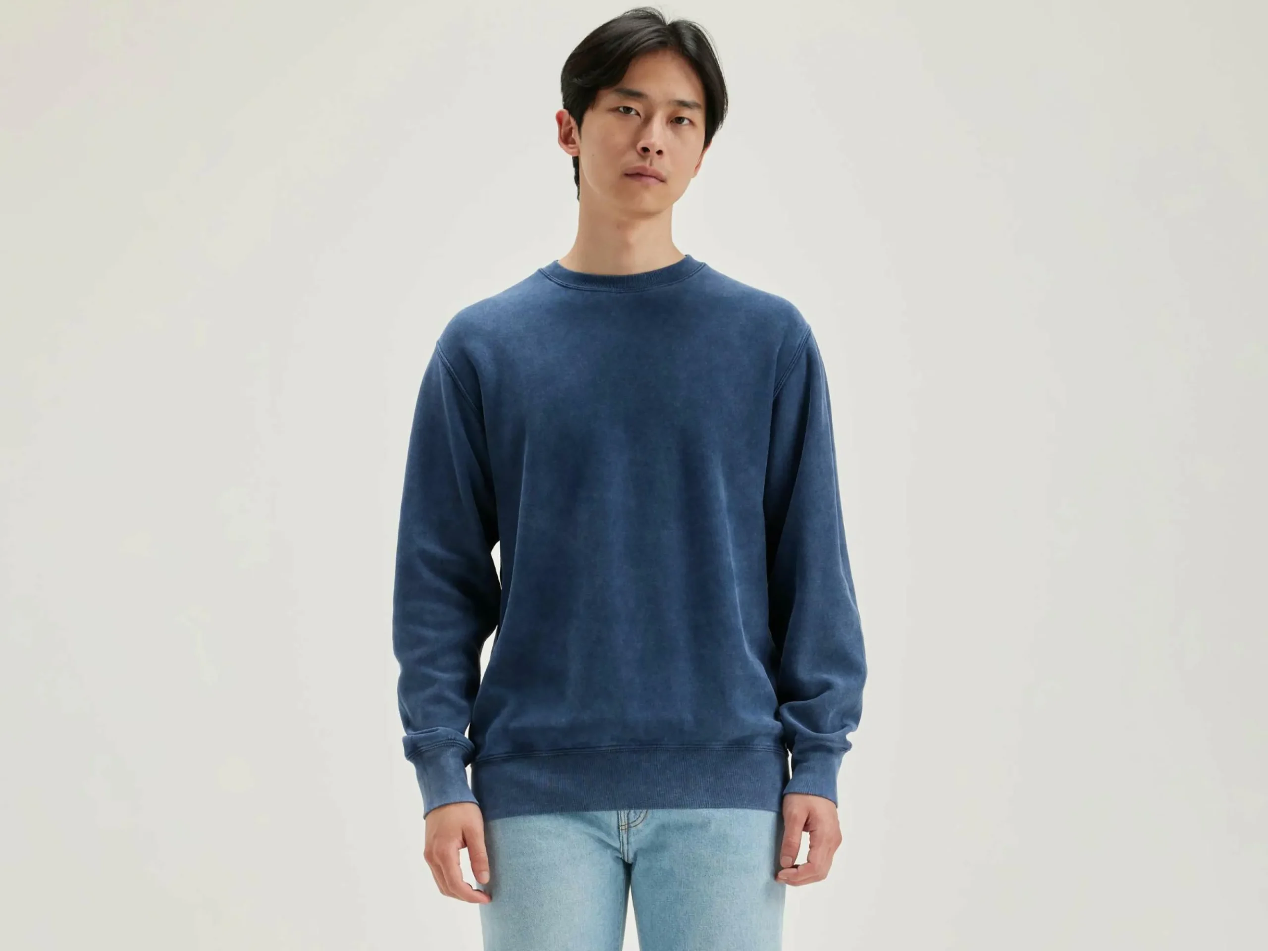Sweatshirt classique en jersey de coton bleu foncé.