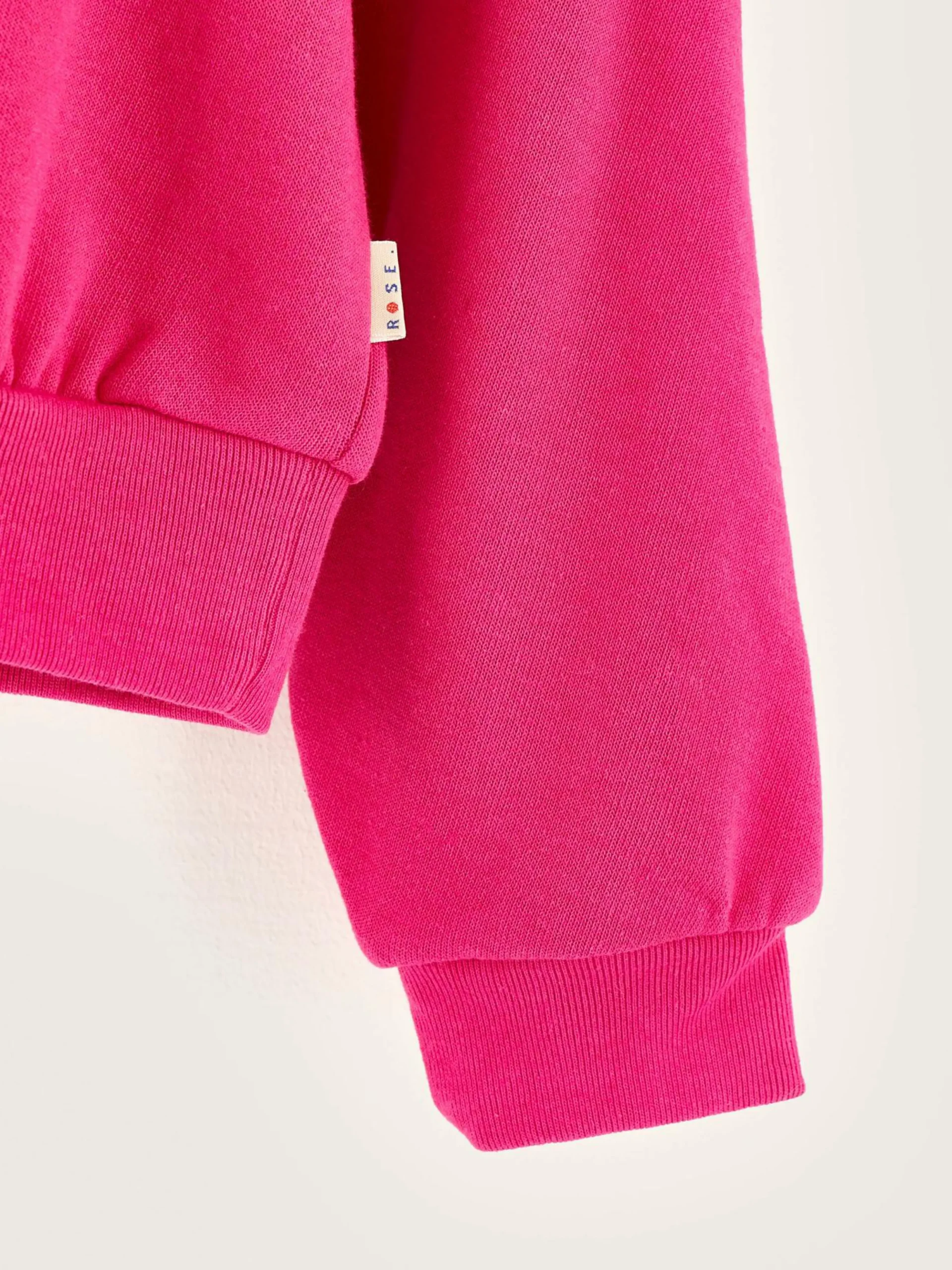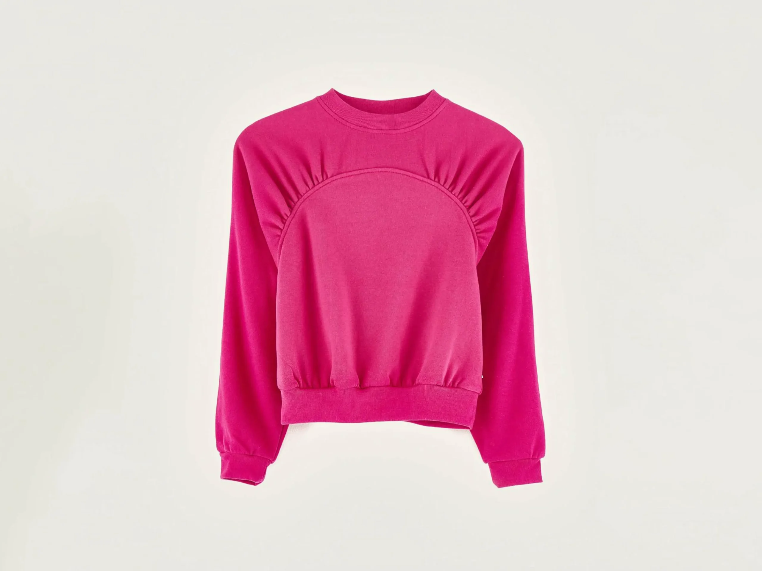 Sweatshirt décontracté en jersey éponge brossé couleur fuchsia avec détails de fronces sur l’avant.