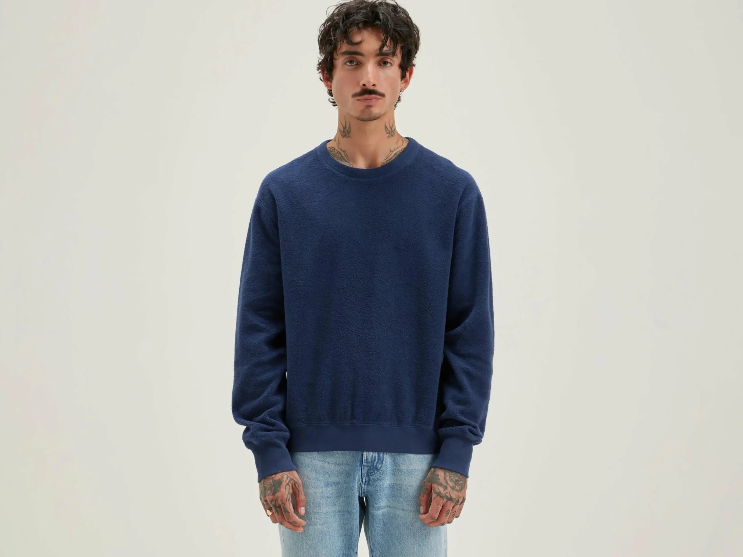 Sweatshirt en jersey de coton brossé bleu foncé.