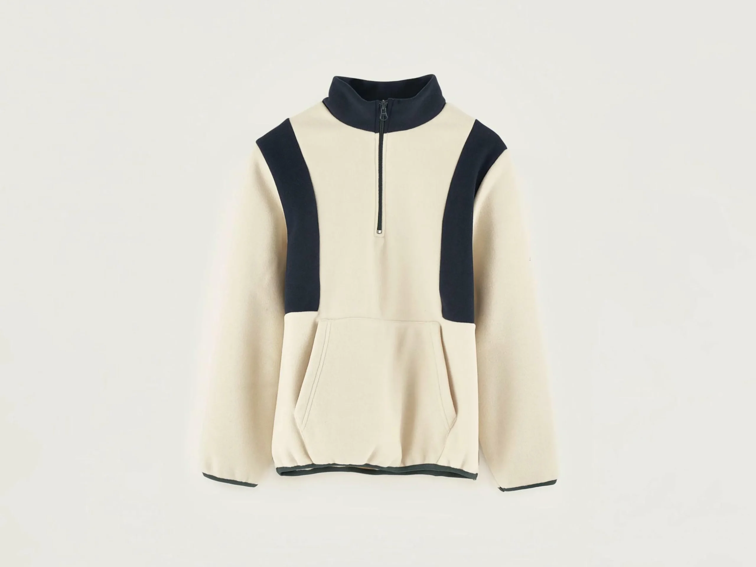 Sweatshirt coupe classique, style color-block et col montant zippé.