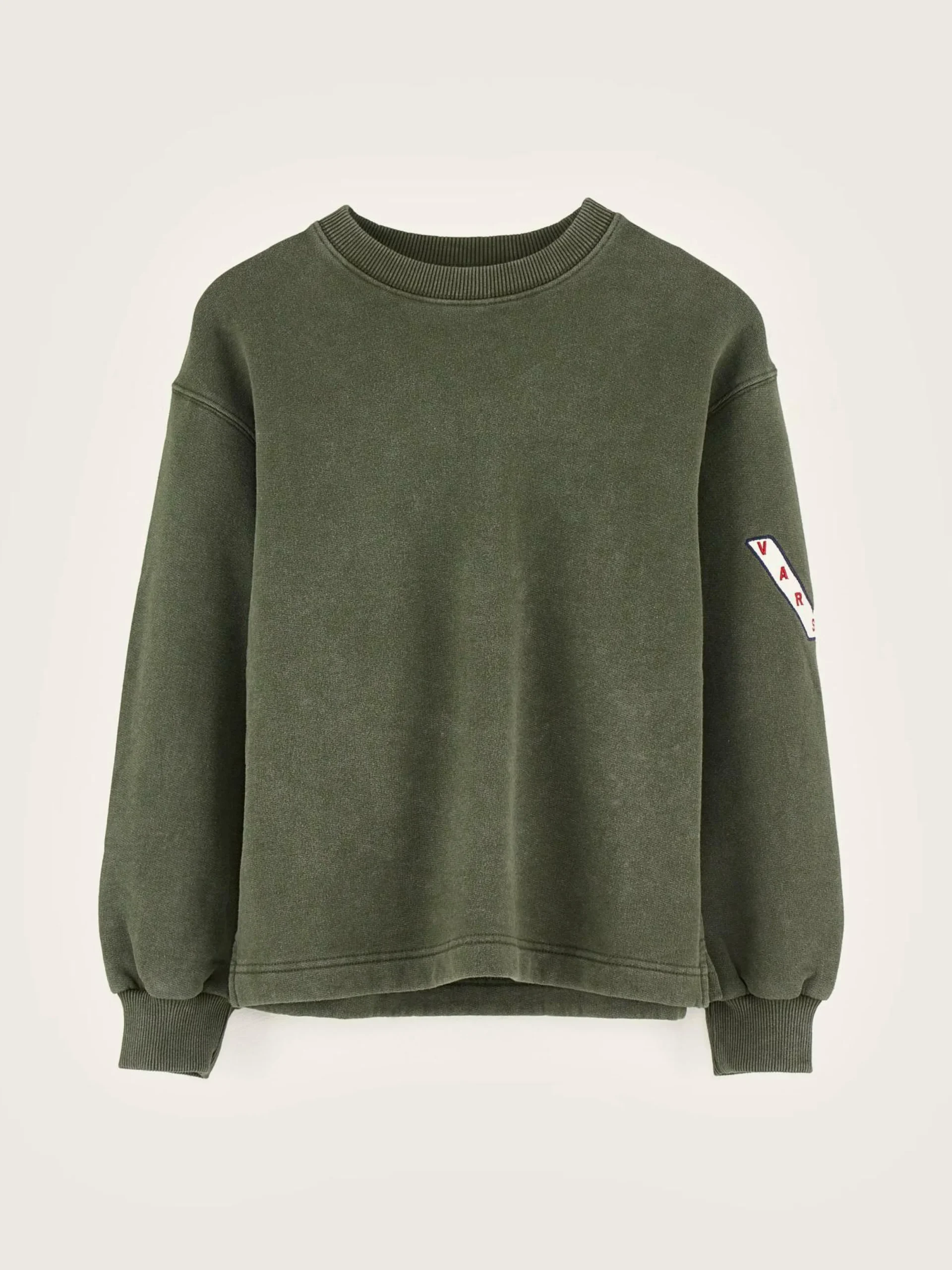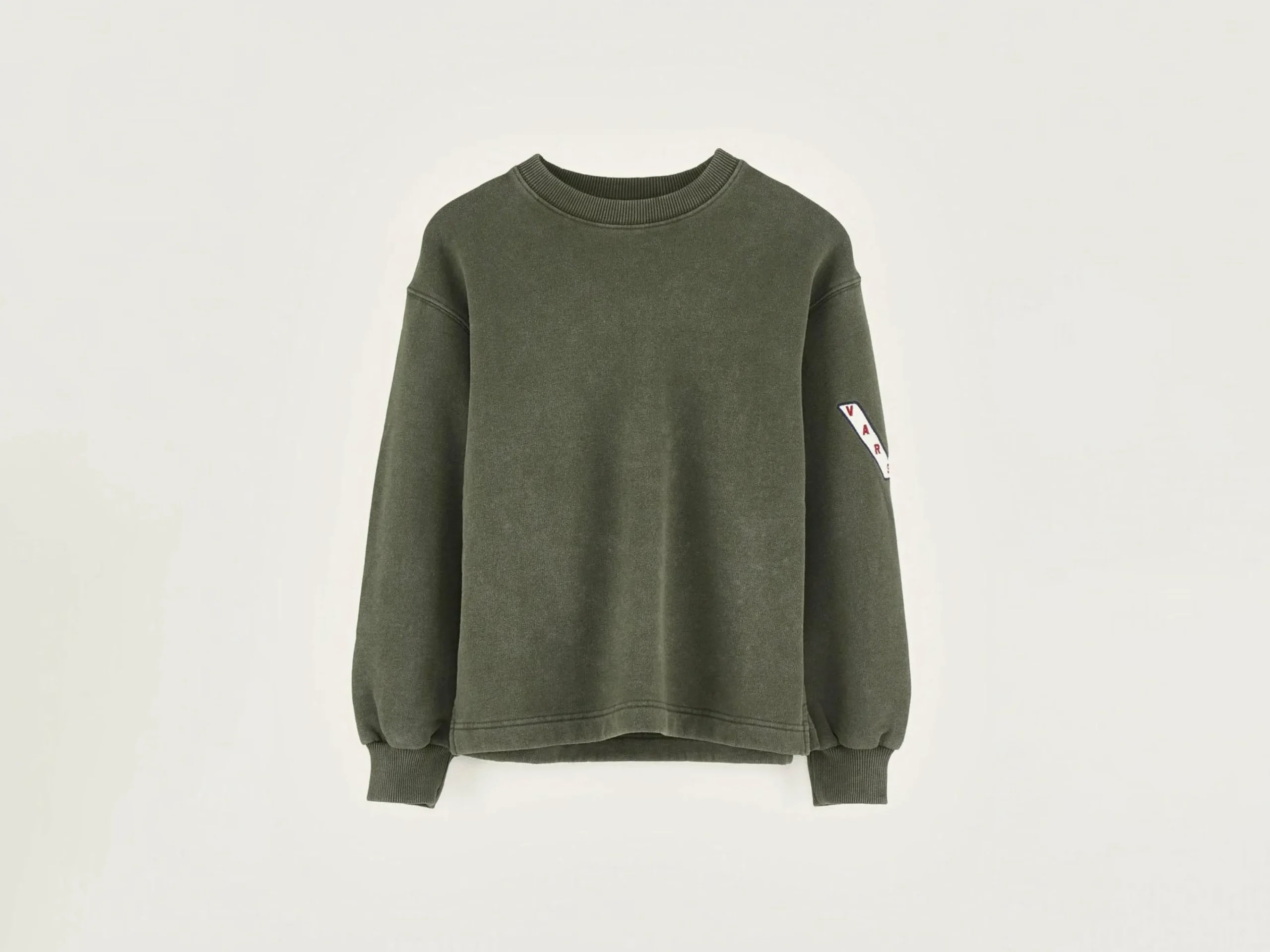 Sweatshirt décontracté, coupe droite en jersey brossé vert mousse.