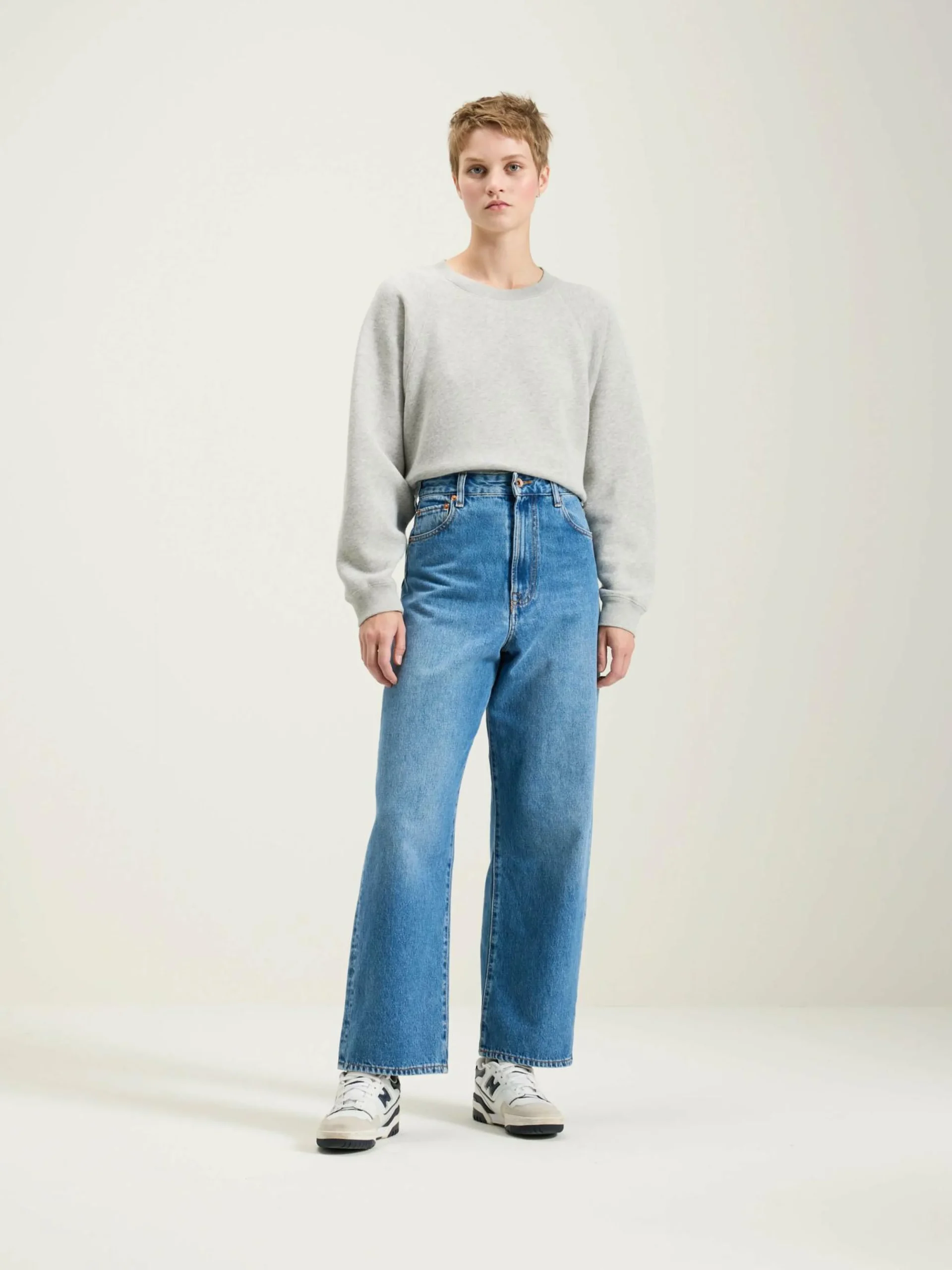Sweatshirt décontracté gris chiné à manches raglan en molleton léger.
