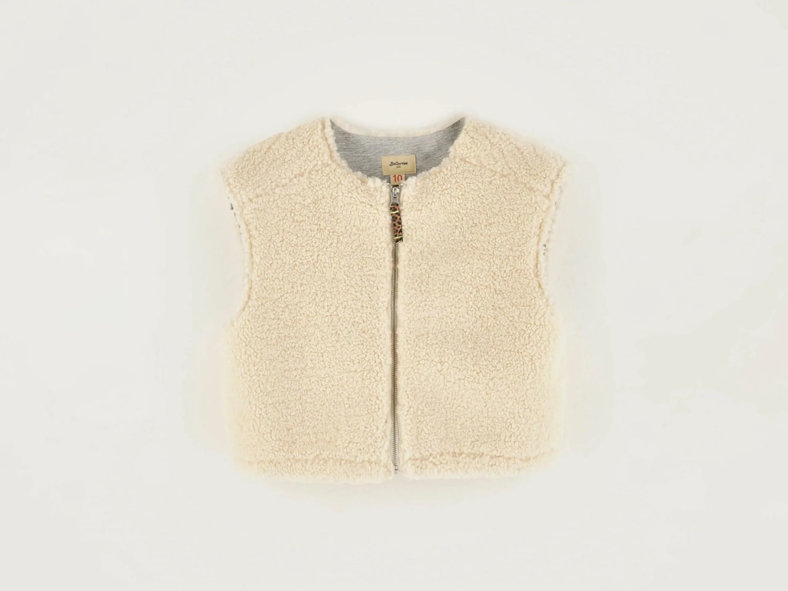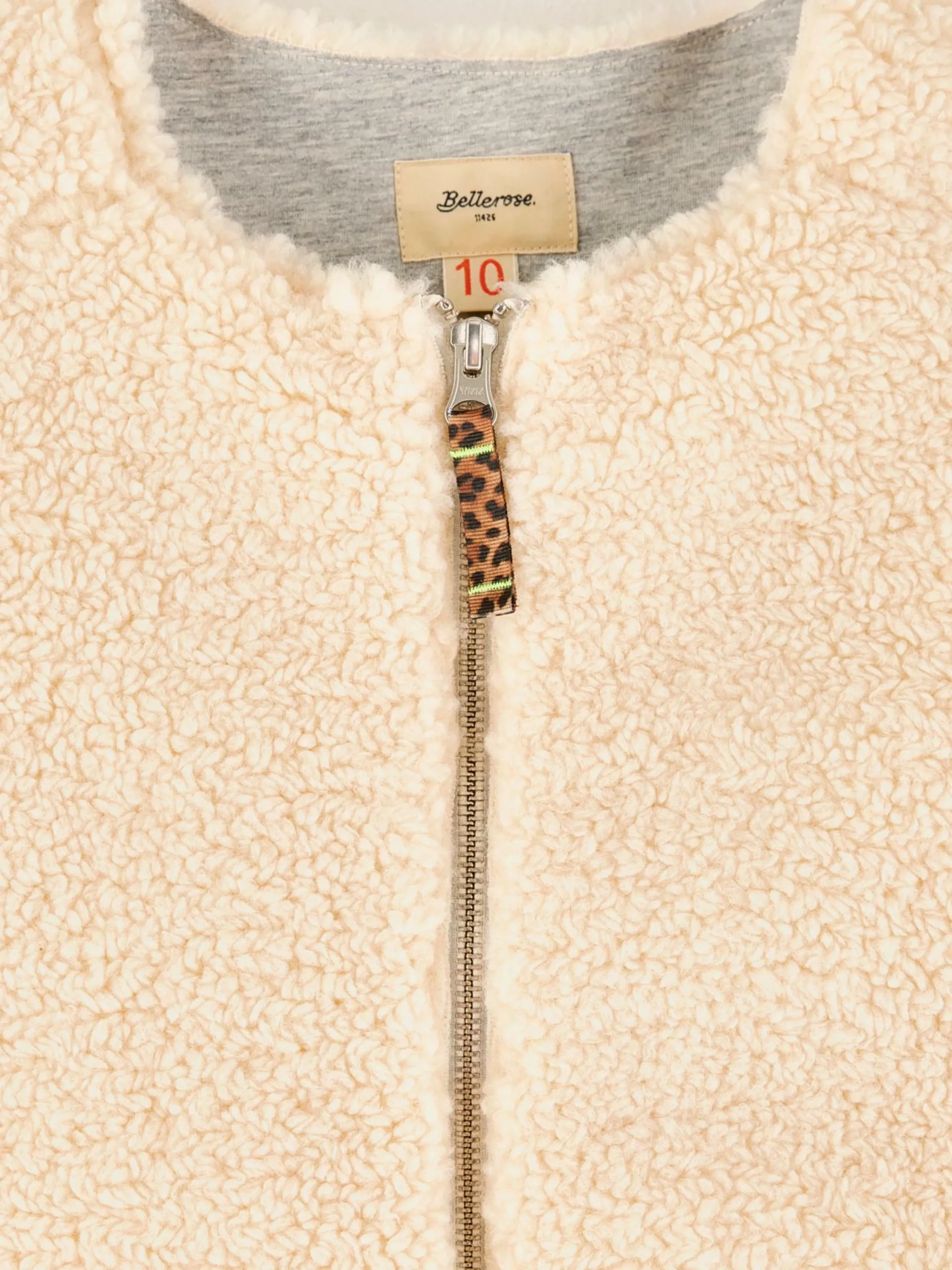 Sweatshirt zippé sans manches en teddy écru.
