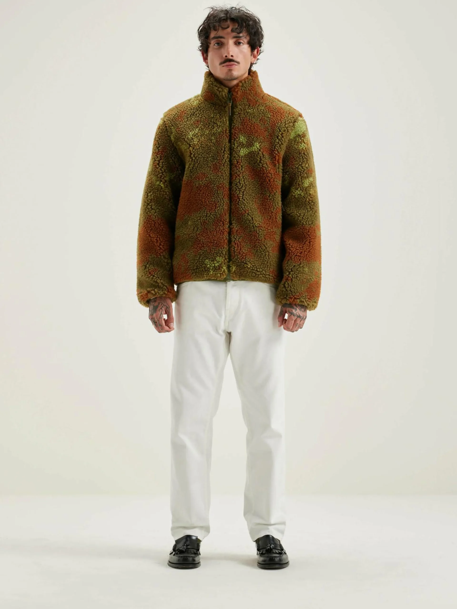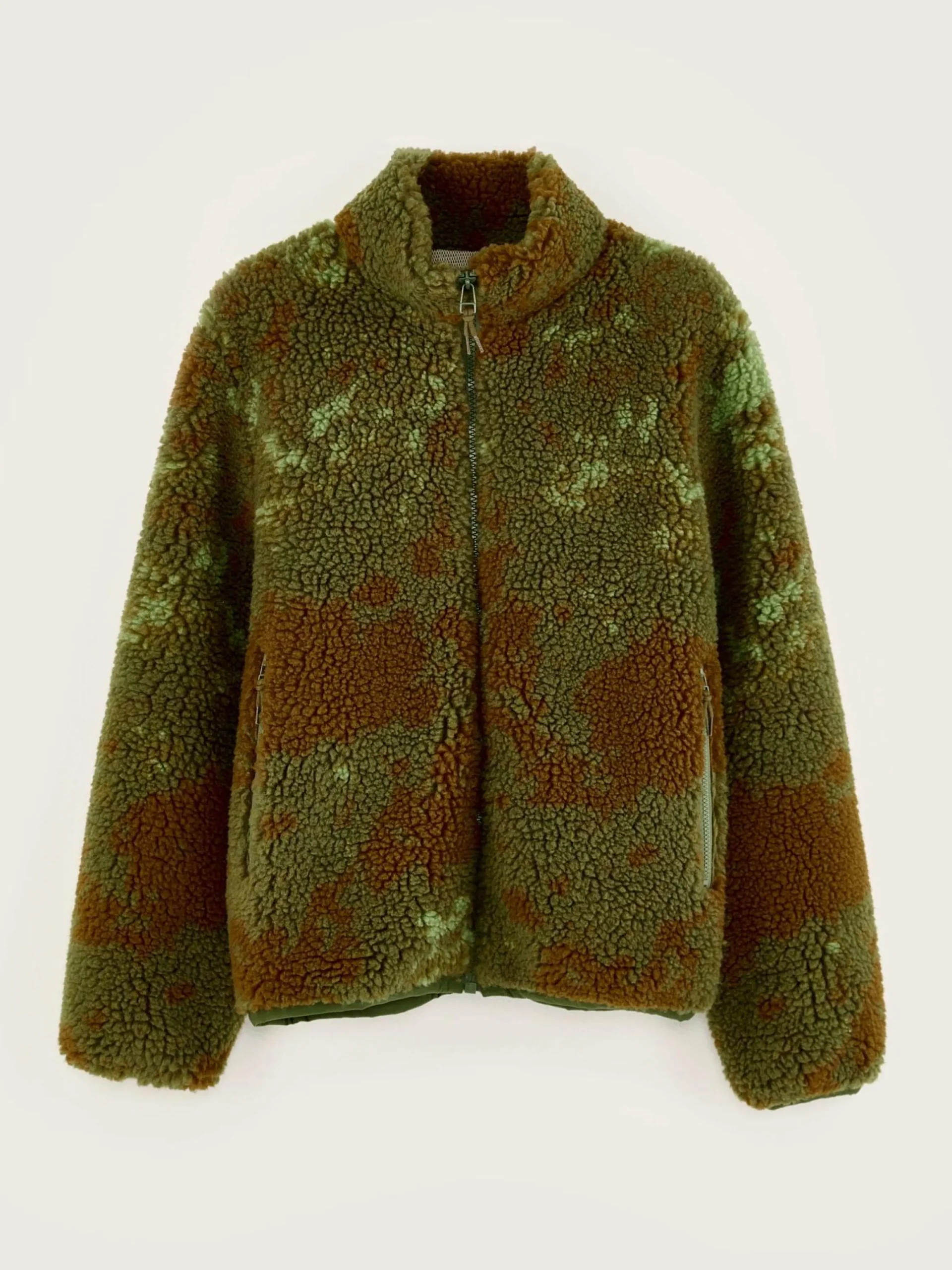 Sweatshirt décontracté à col zippé en polaire imprimée camouflage.