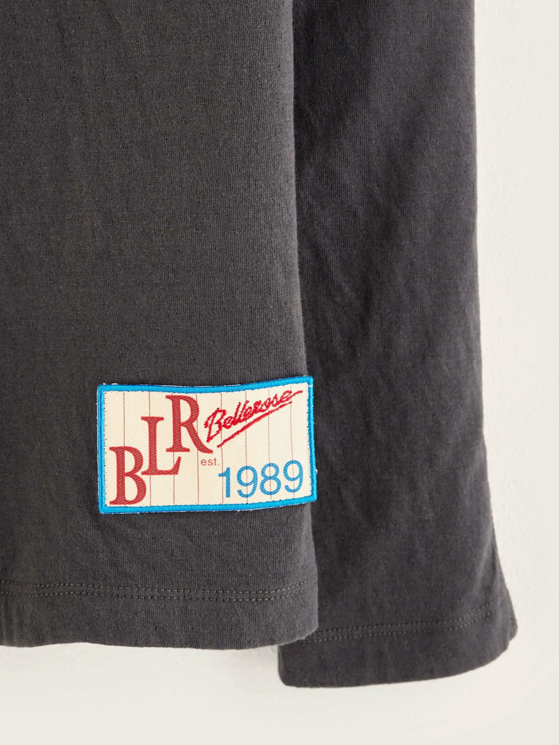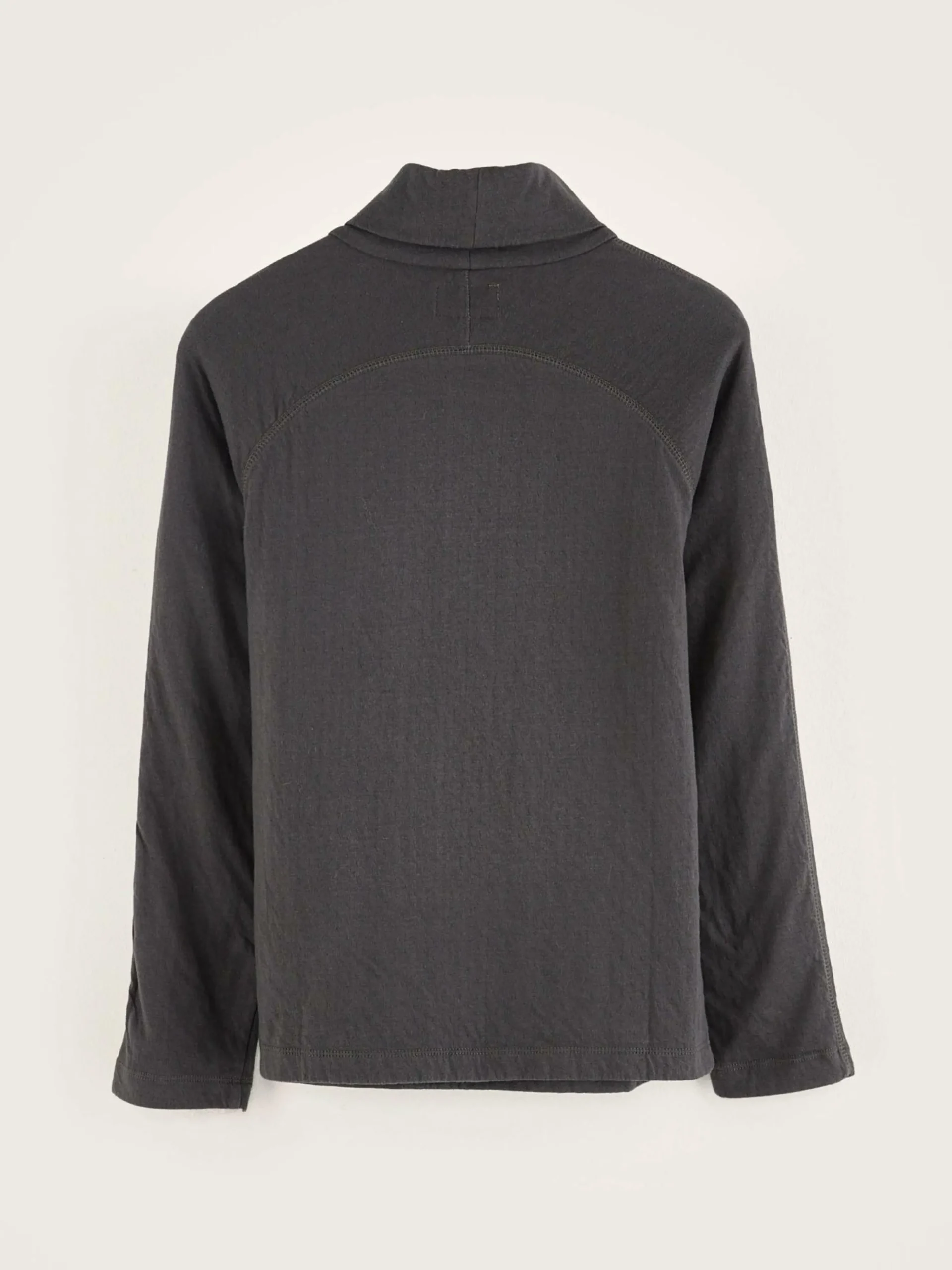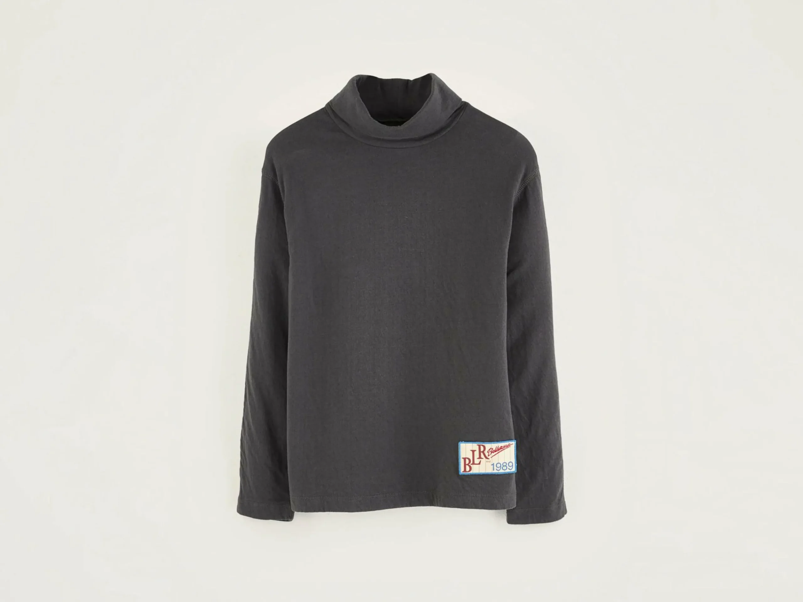 T-shirt droit à col roulé en jersey de coton bleu foncé.