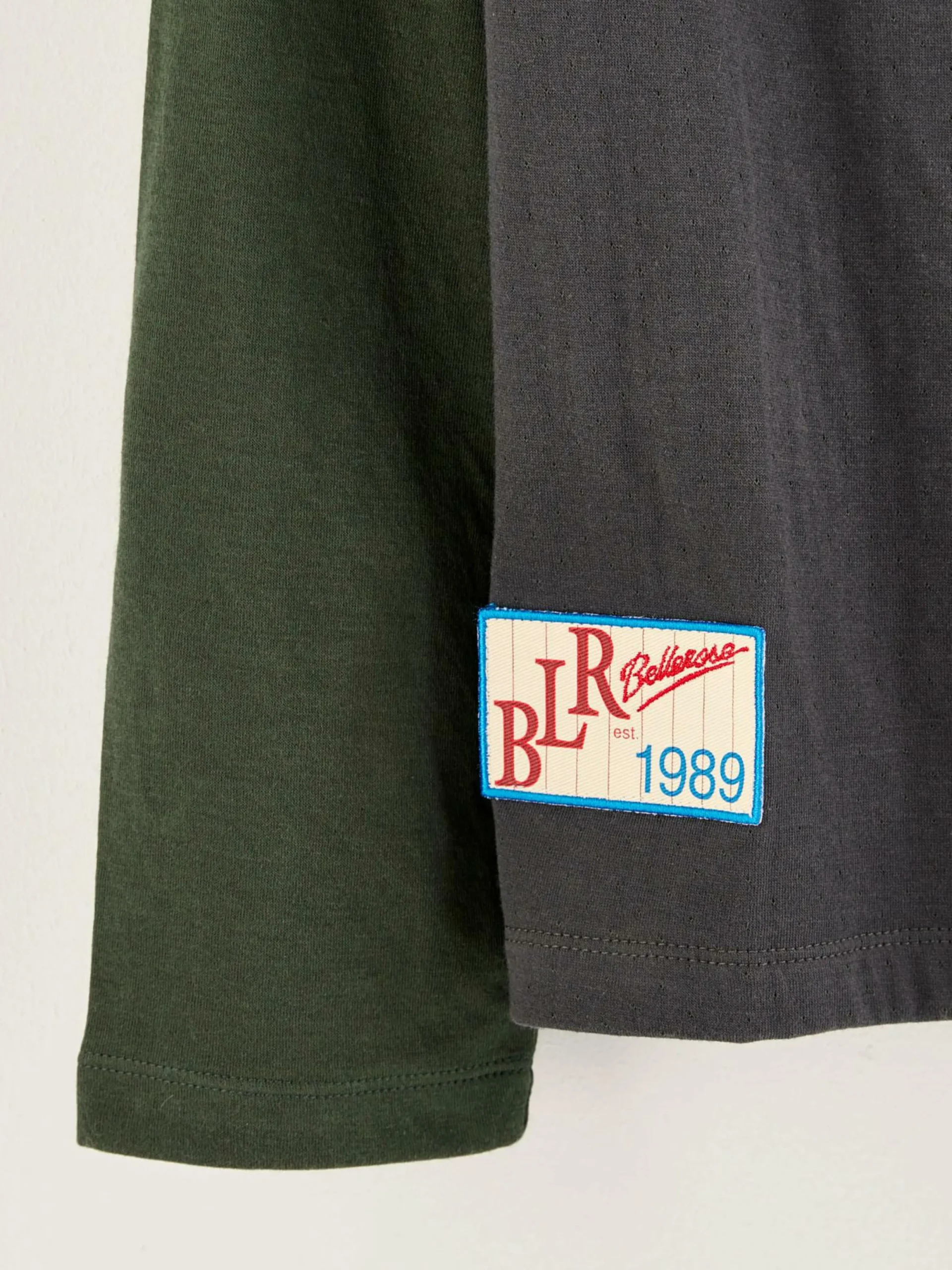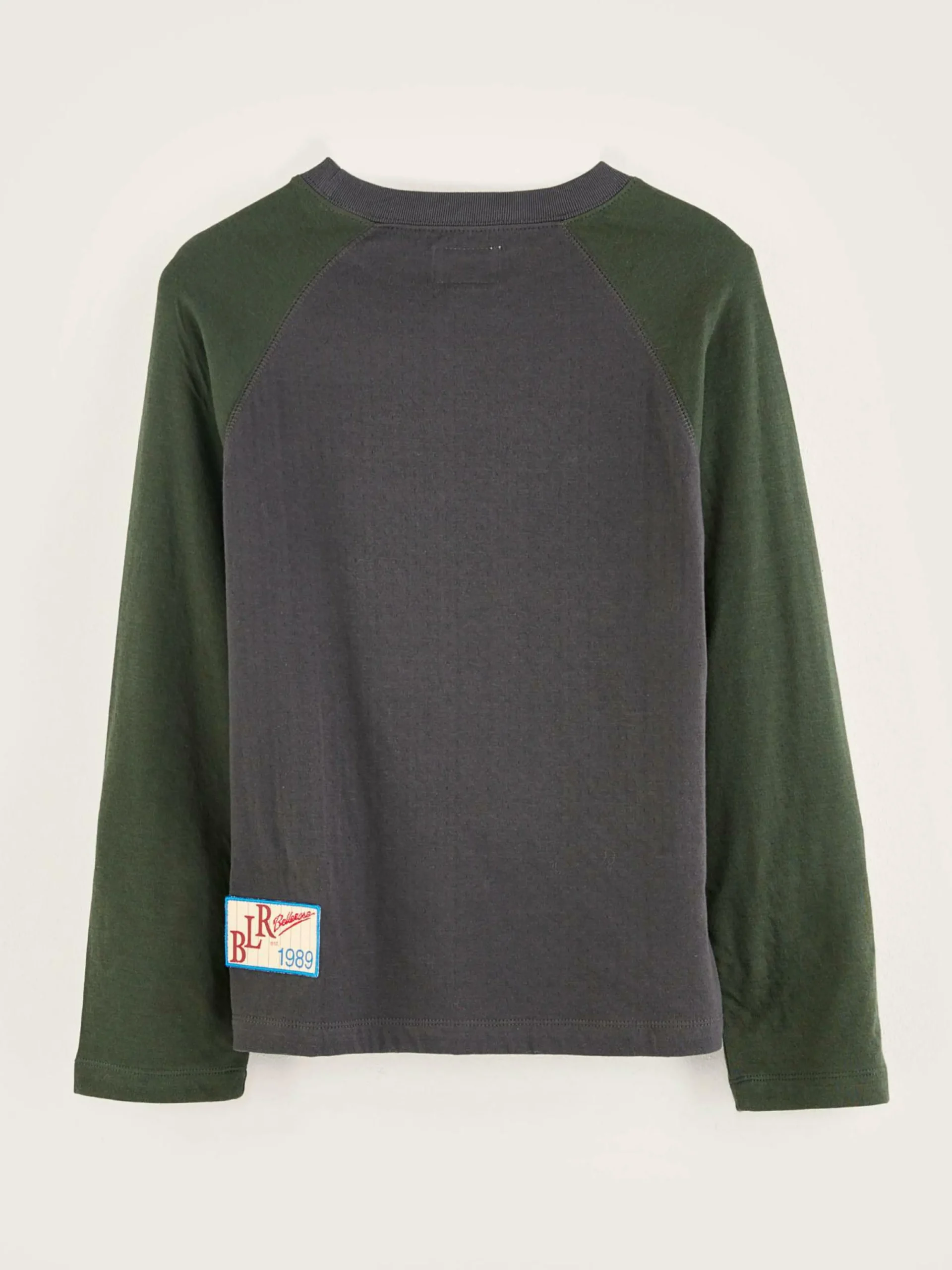 T-shirt classique en jersey de coton double-face bleu foncé avec impression sur l’avant.