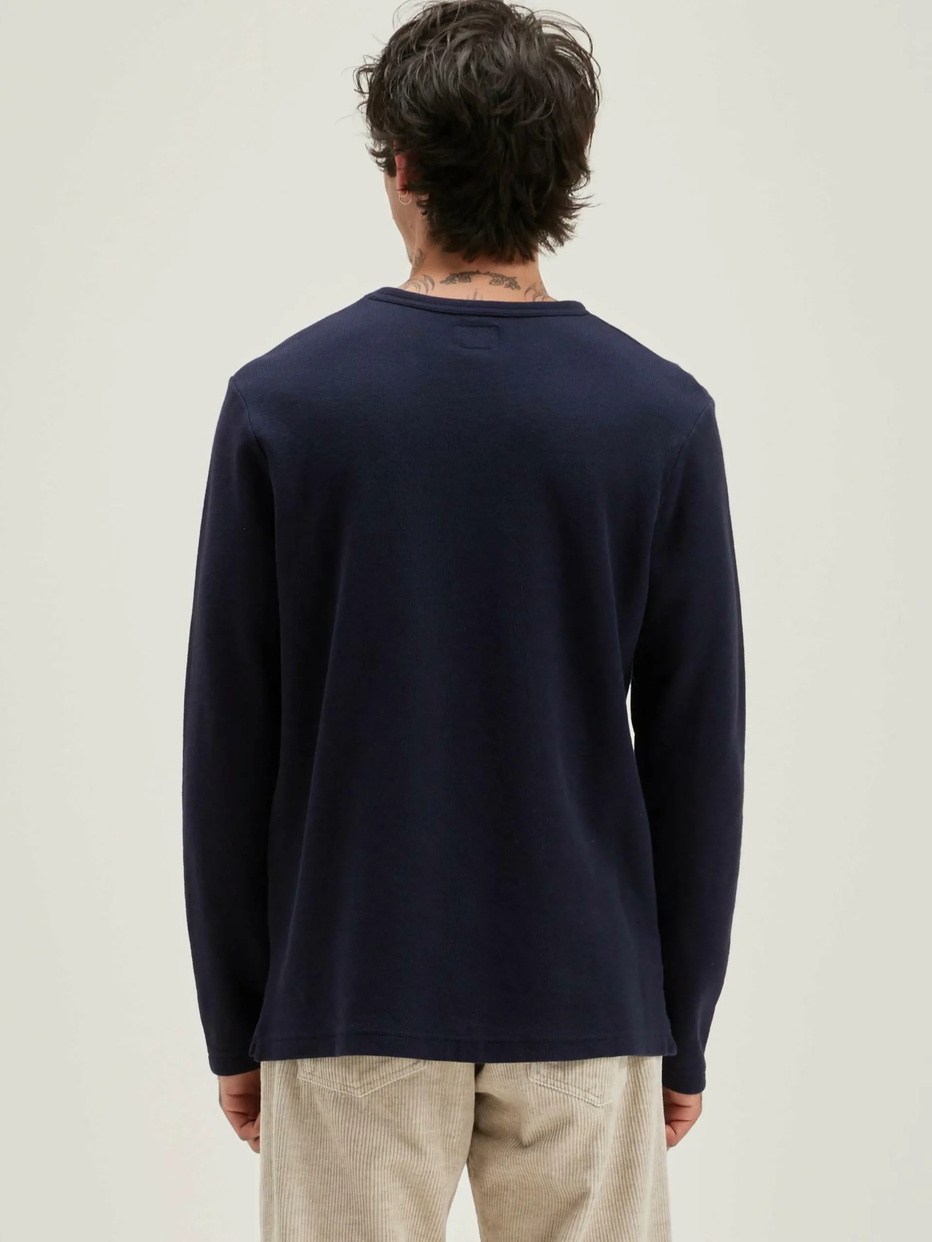 T-shirt à manches longues et col rond en jersey de coton double face bleu marine.