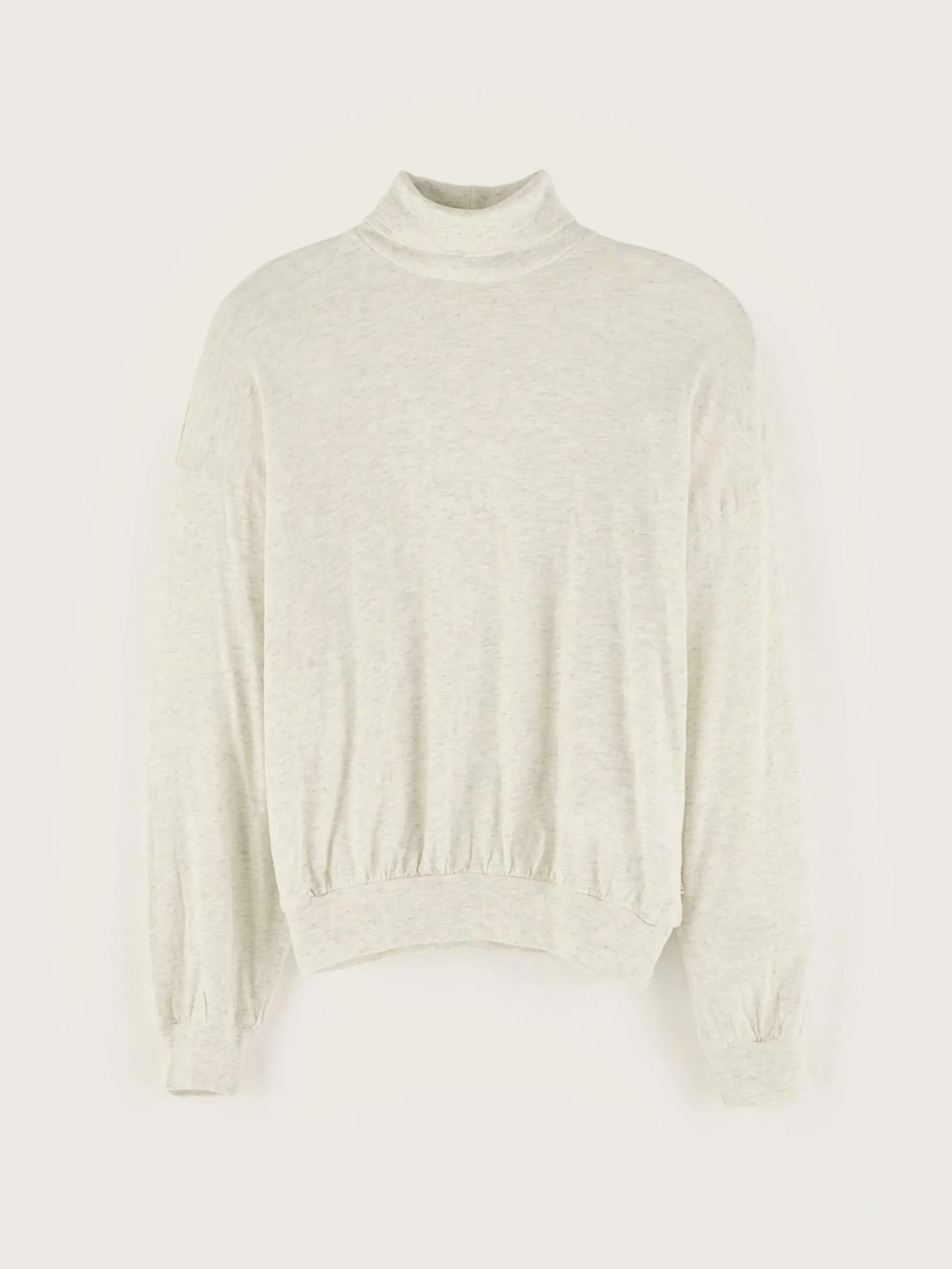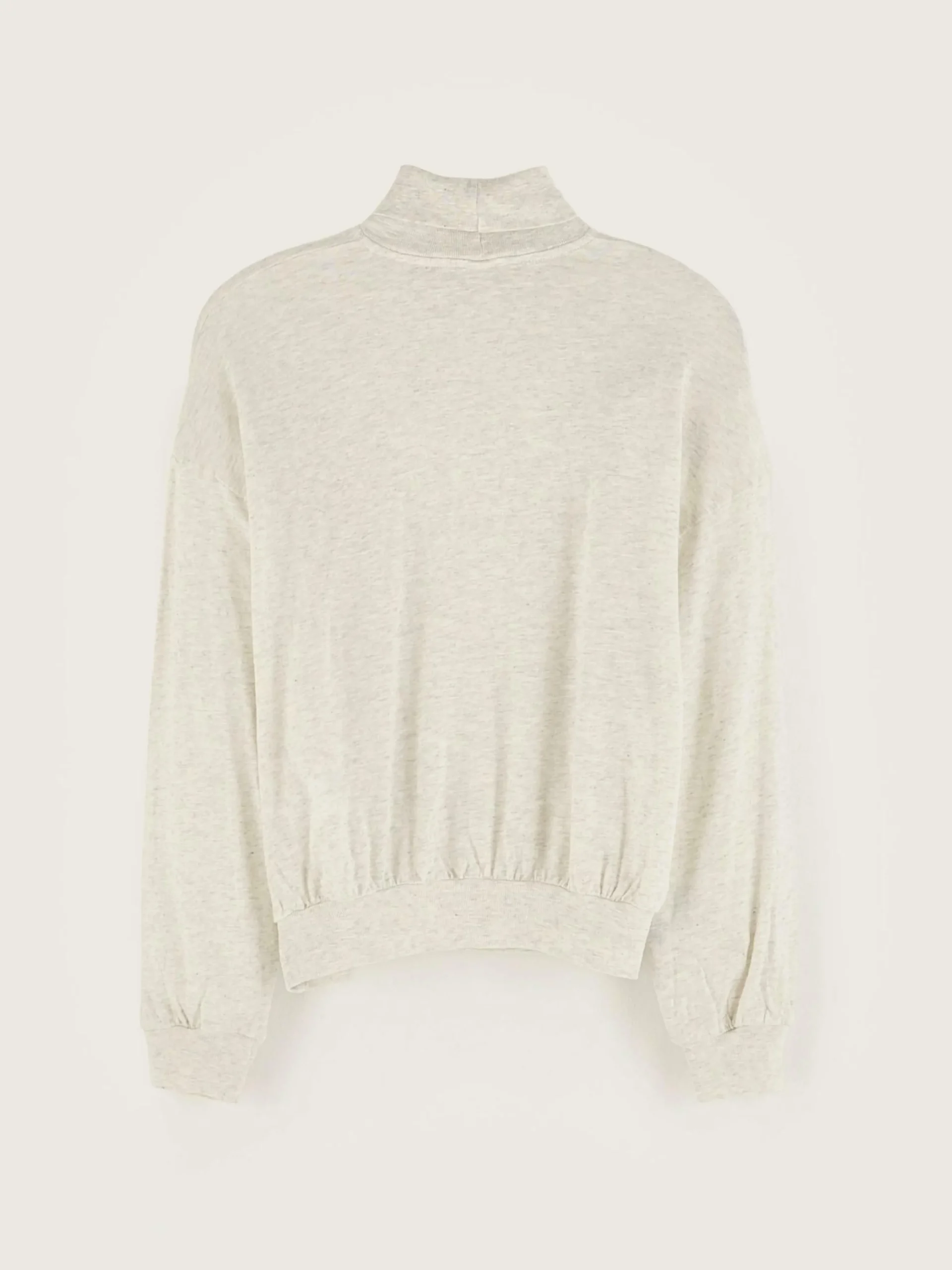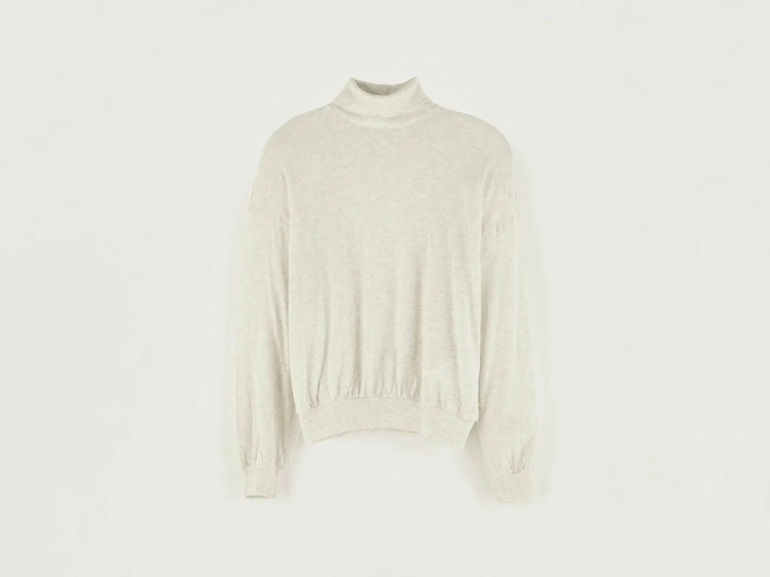 T-shirt décontracté à col roulé, couleur gris chiné.