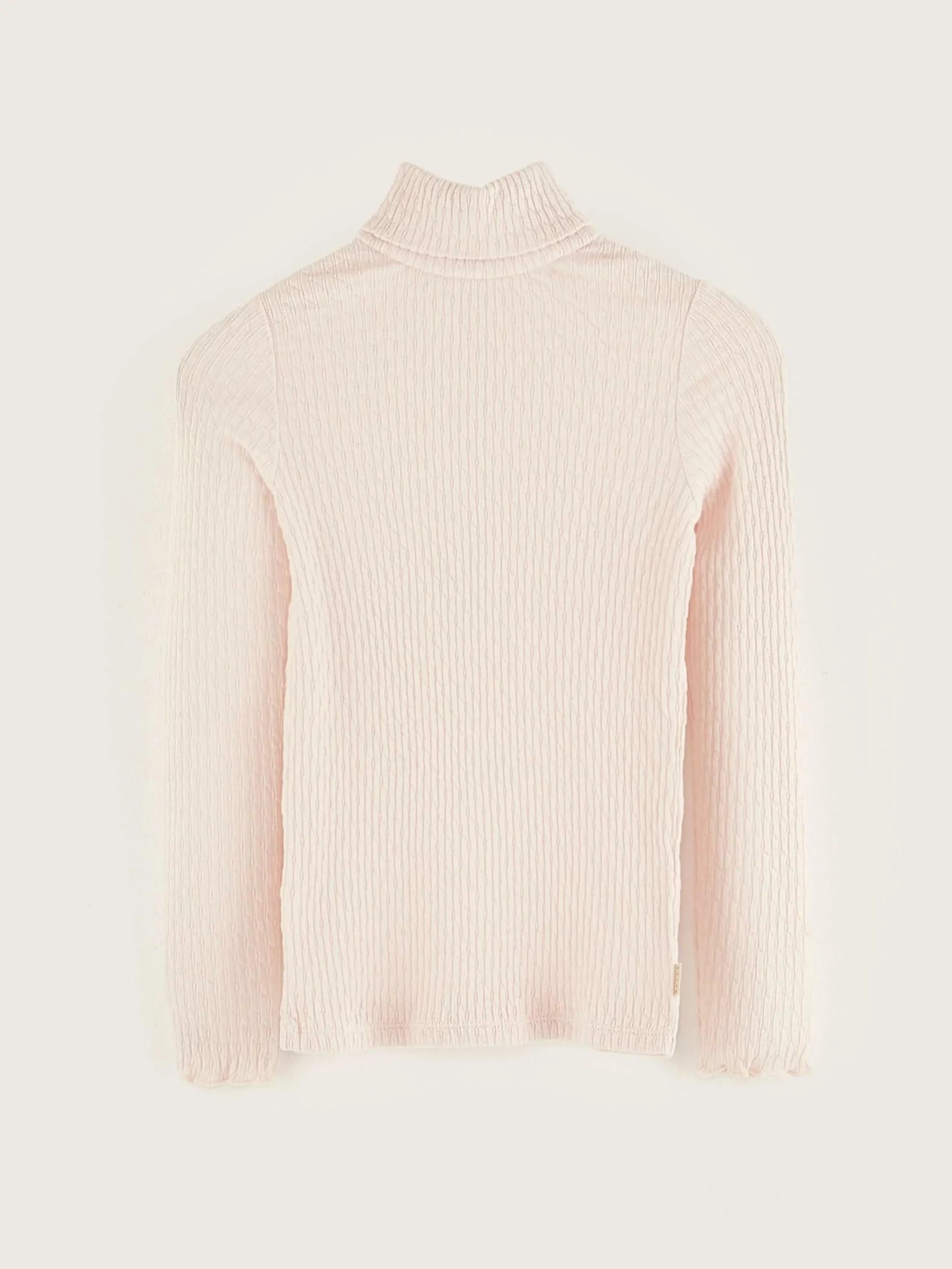 T-shirt à col roulé ajusté en jersey rose poudré.